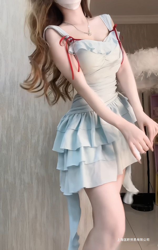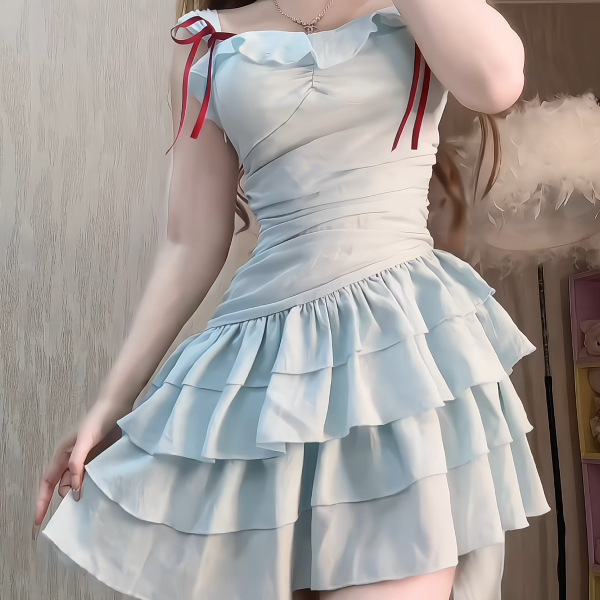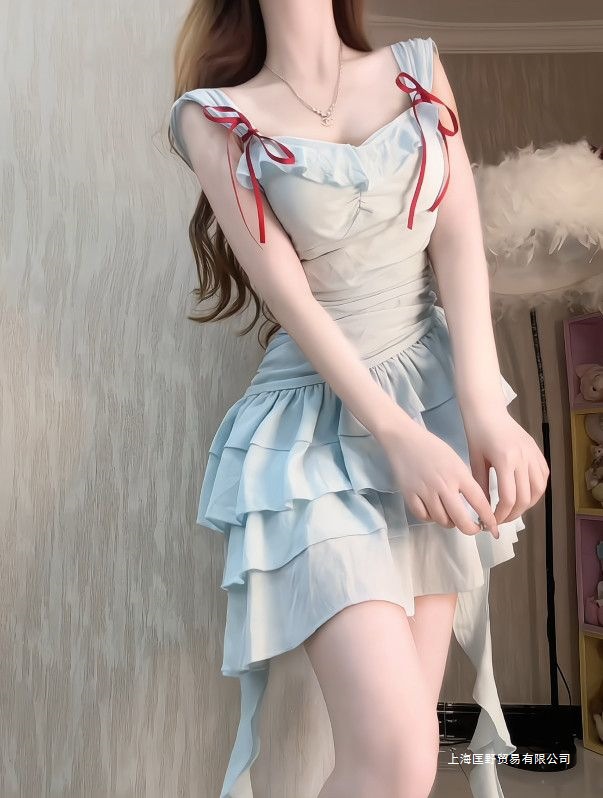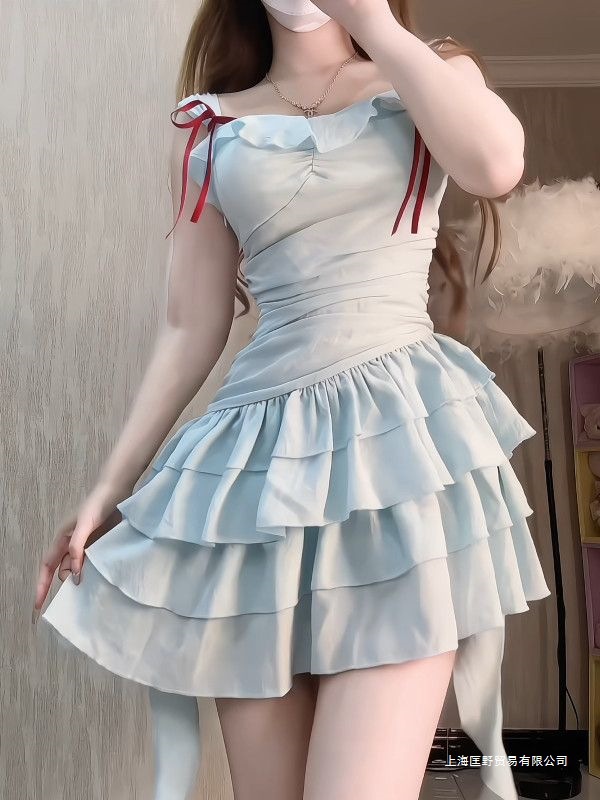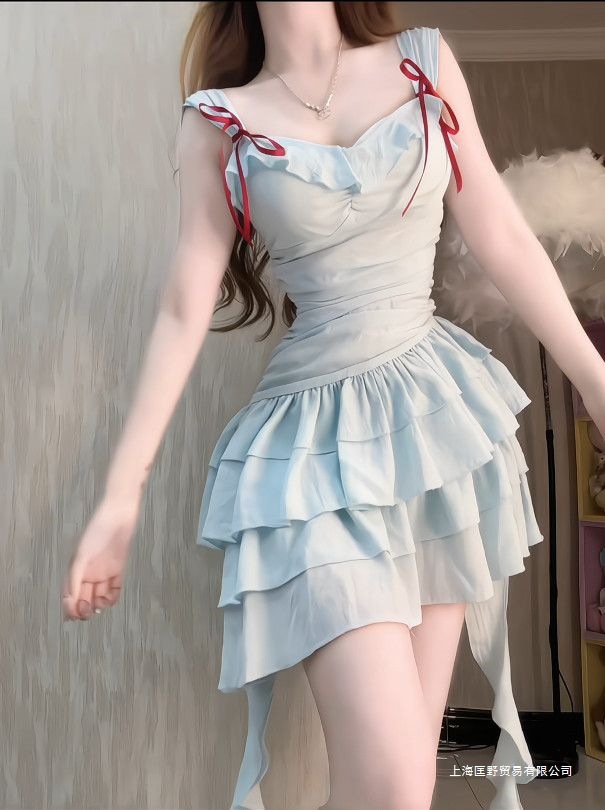 2025 새로운 달콤한 프렌치 프릴 서스펜더 드레스 여름 휴가 틈새 시장