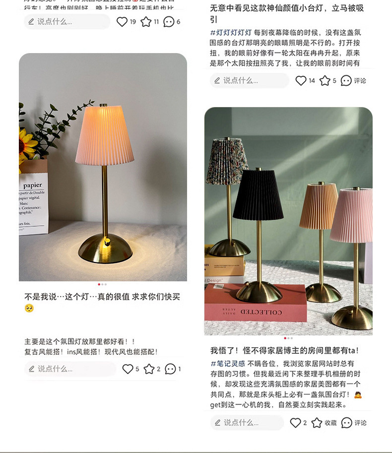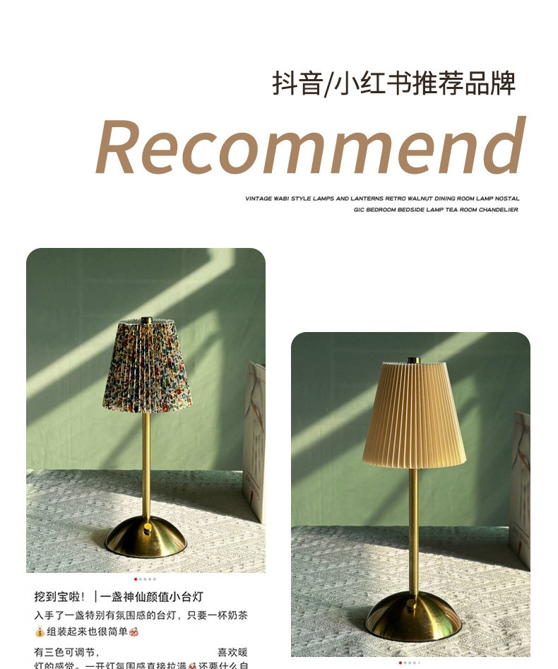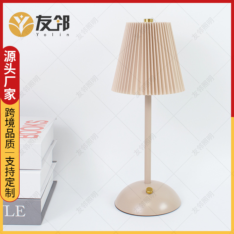 국경 새로운 주름 직물 우산 테이블 램프 LED 충전식 금속 터치 침실 침실 분위기 따뜻한 야간 조명스토어 가기