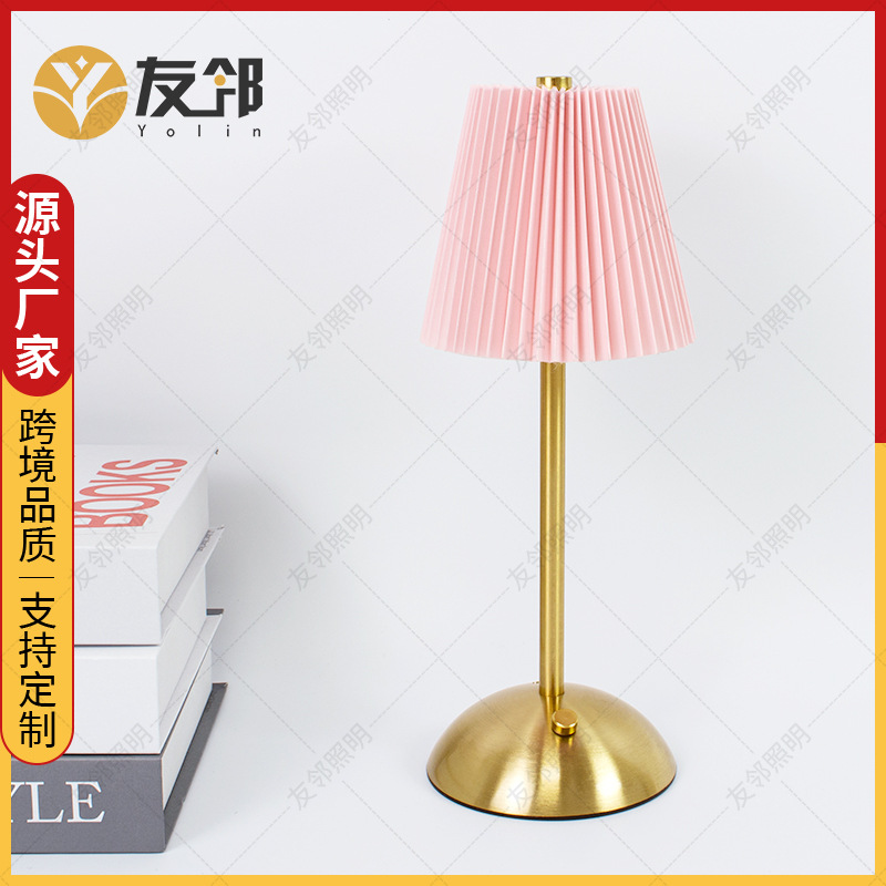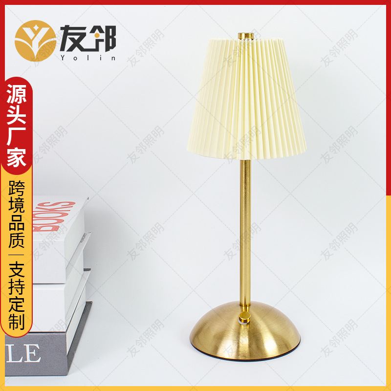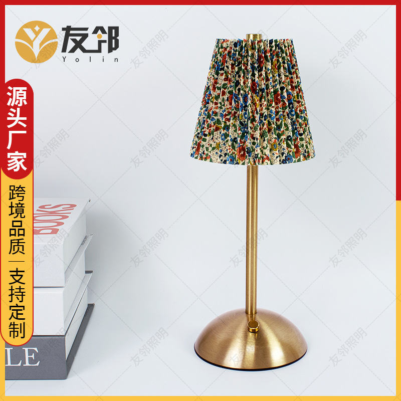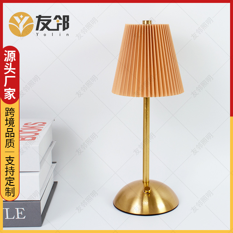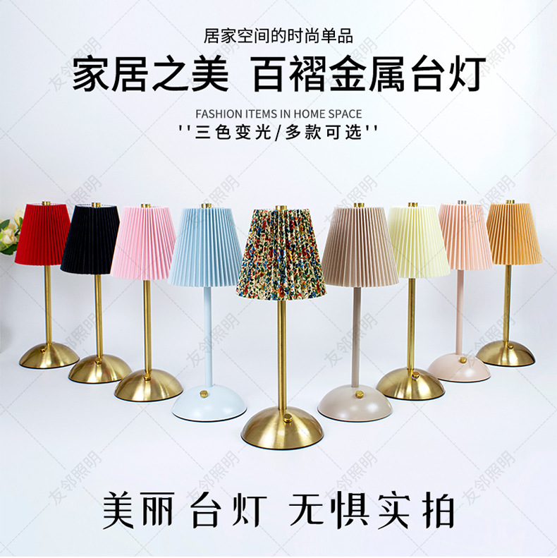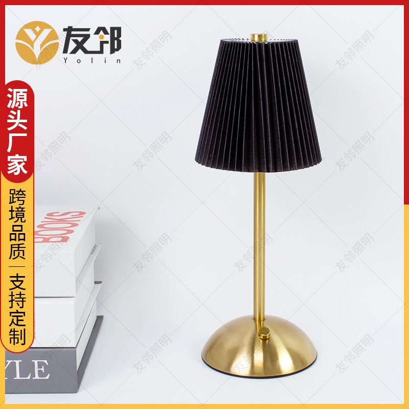 국경 새로운 주름 직물 우산 테이블 램프 LED 충전식 금속 터치 침실 침실 분위기 따뜻한 야간 조명