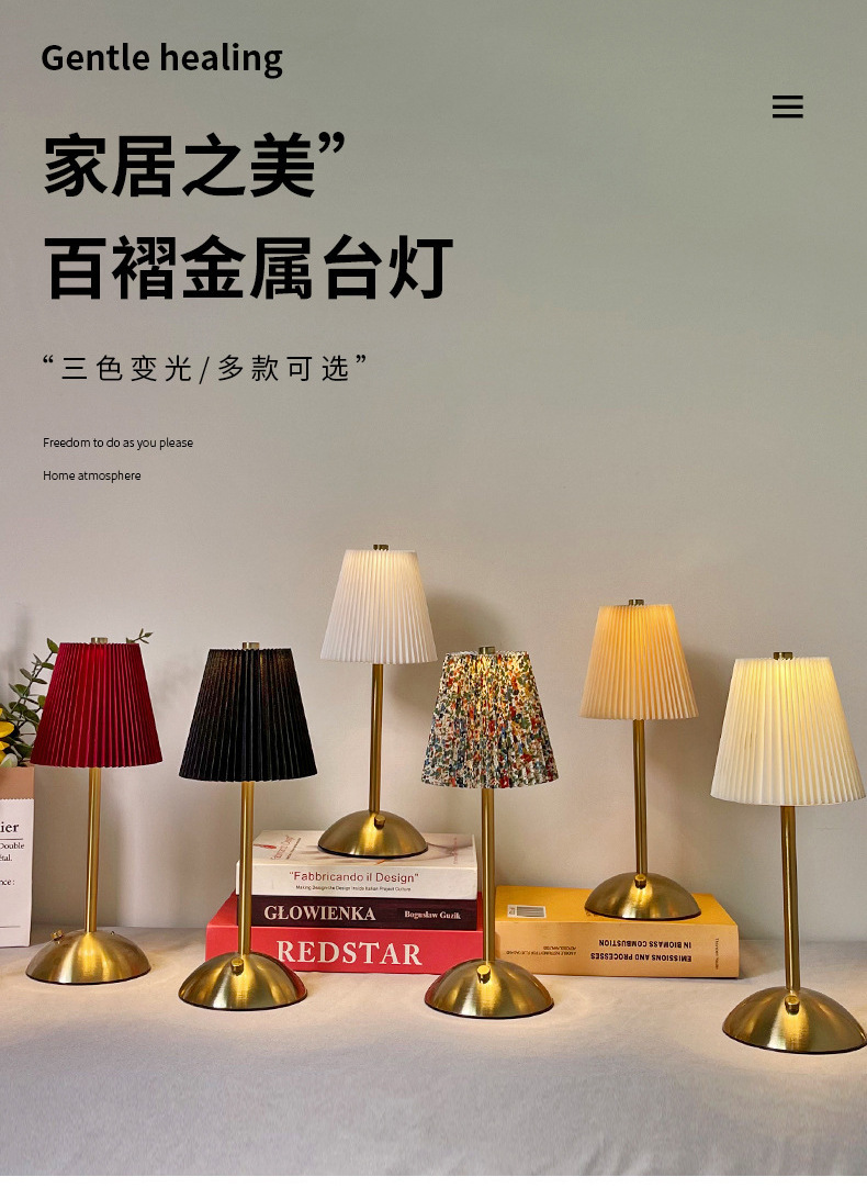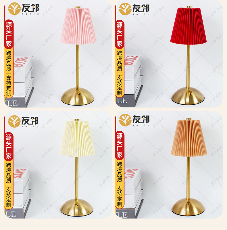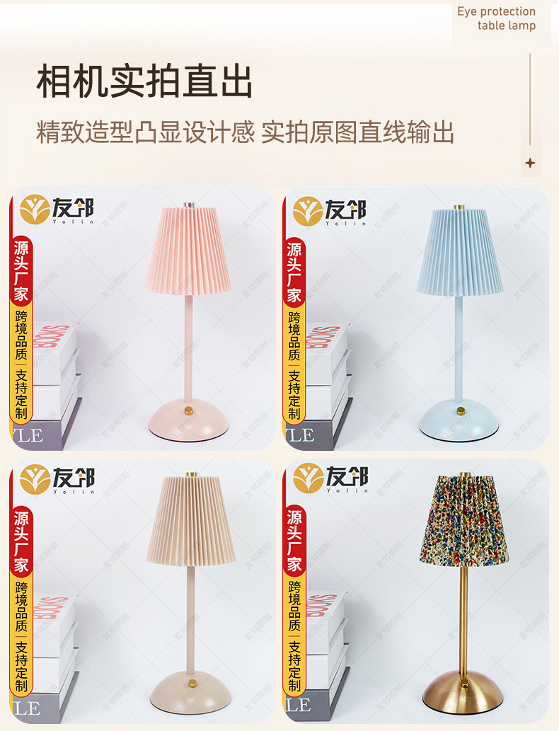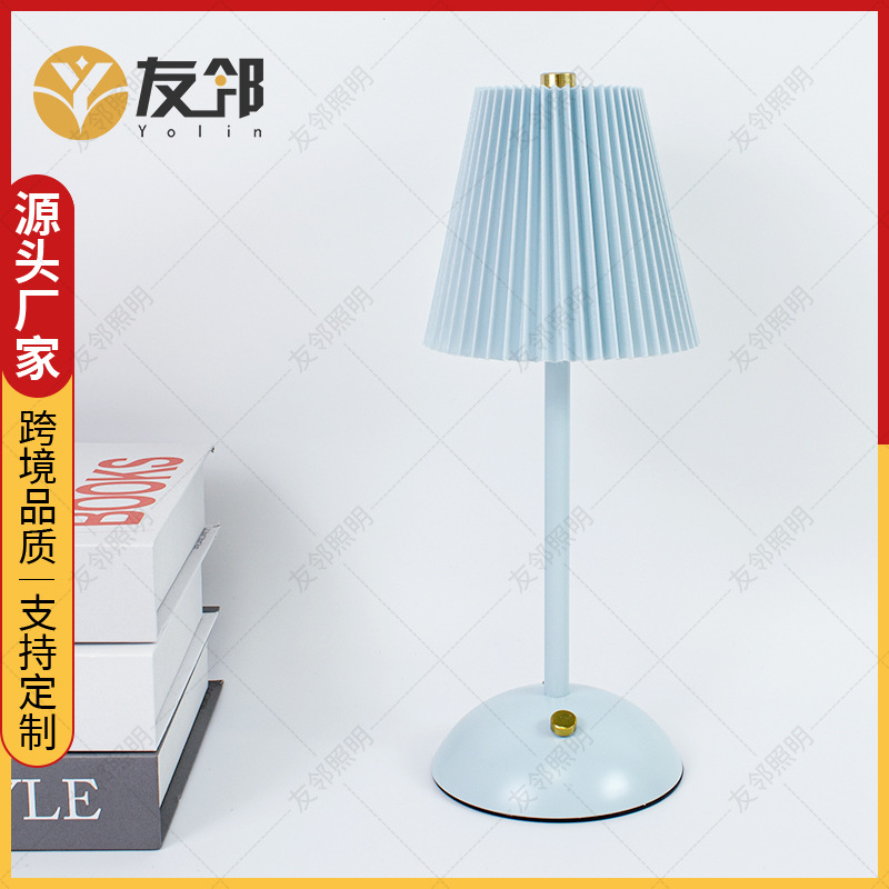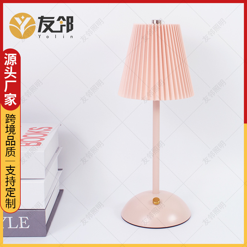 국경 새로운 주름 직물 우산 테이블 램프 LED 충전식 금속 터치 침실 침실 분위기 따뜻한 야간 조명
