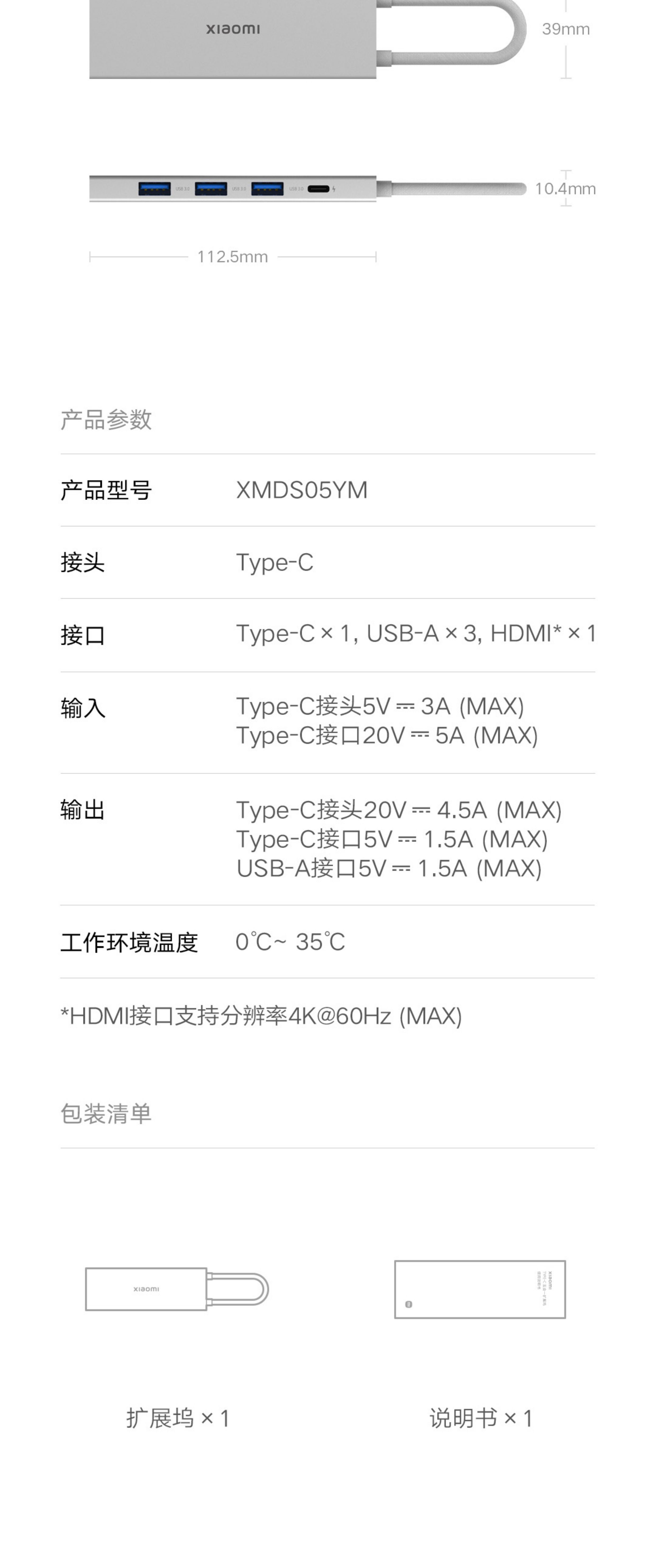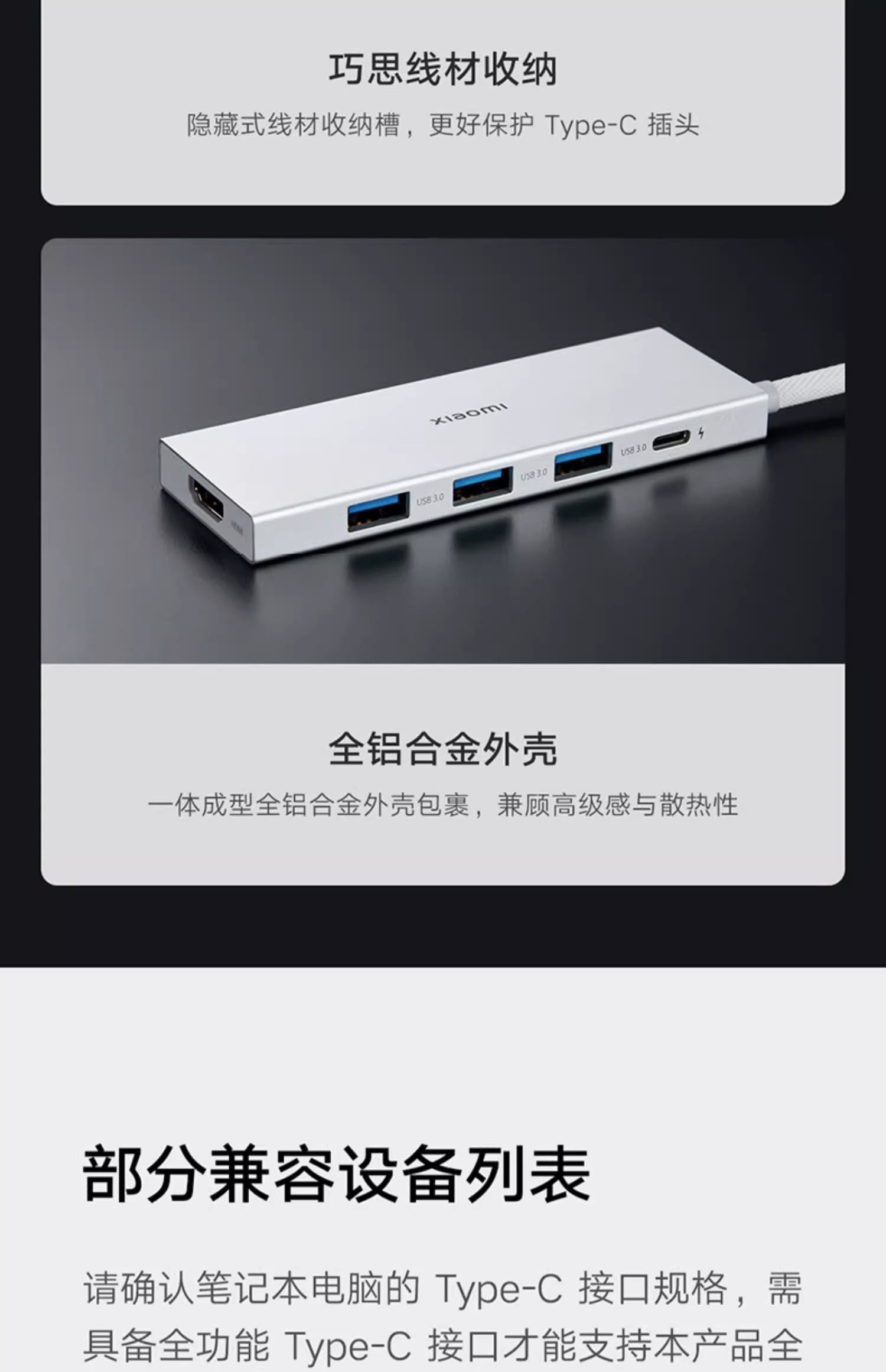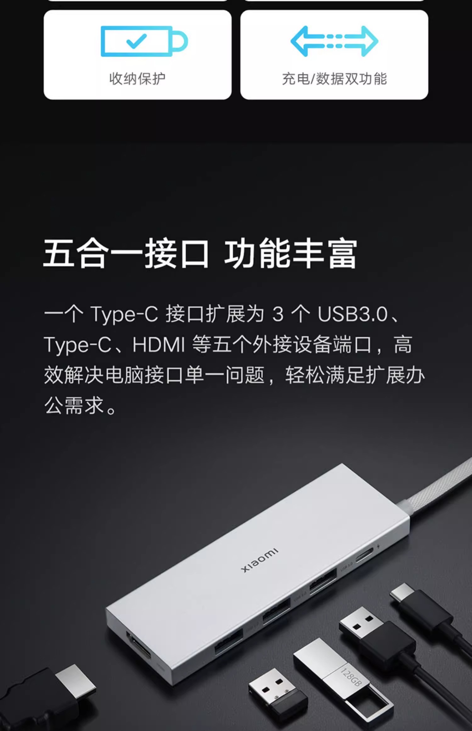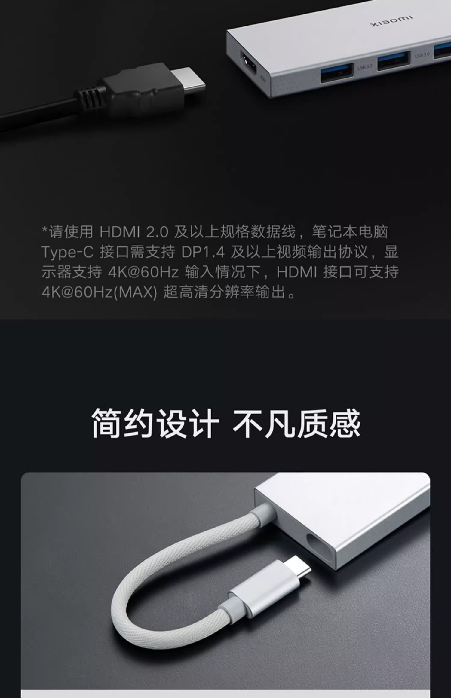 Mijia Type-C 5-in -1 도킹 스테이션 하드 디스크 허브 USB 스플리터 어댑터 다기능 어댑터스토어 가기