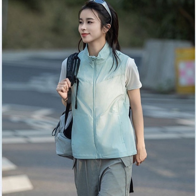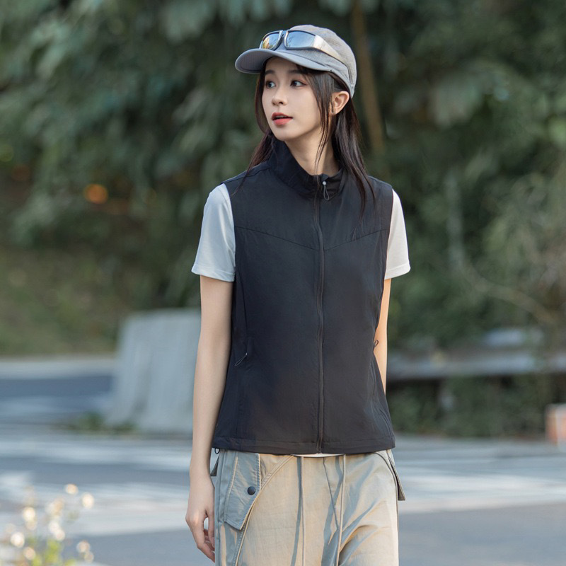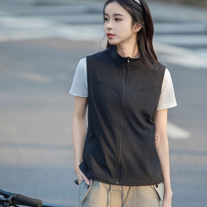 여름 야외 빠른 건조 스킨 재킷 조끼 경량 수직 칼라 모든 경기 아침 달리기 스포츠 조끼 민소매스토어 가기