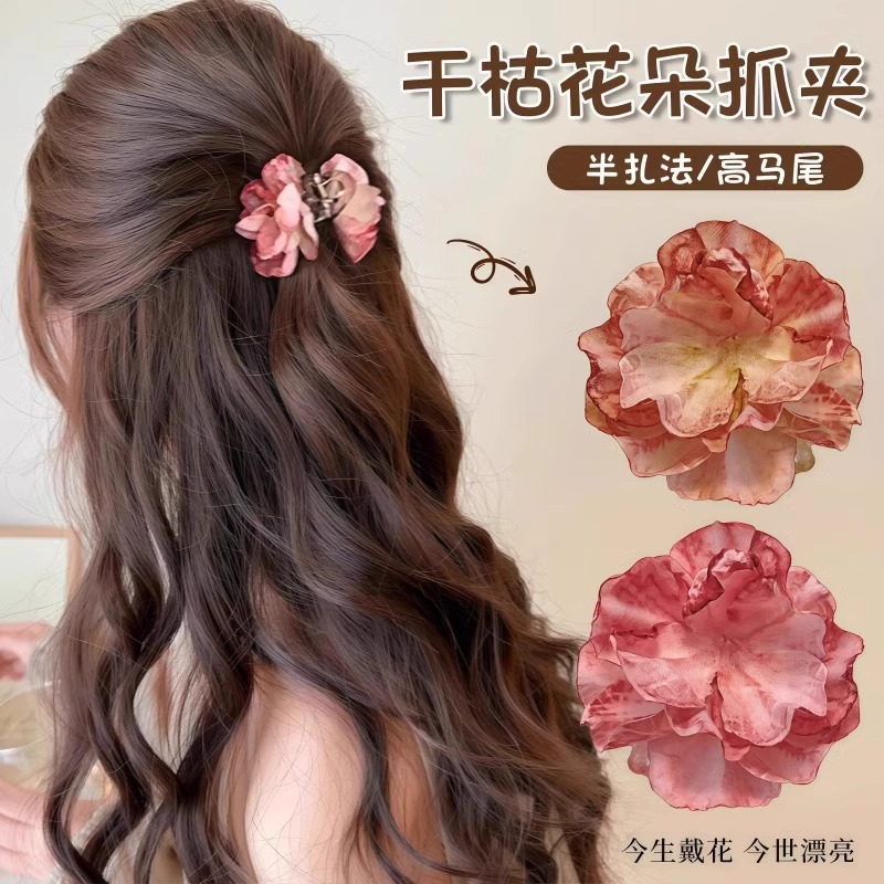 모리 스타일 꽃 헤어 클립 여성용 머리 반 묶은 헤어 그랩 클립 우아한 하이 엔드 헤드웨어 중형 상어 클립 헤어 액세서리스토어 가기