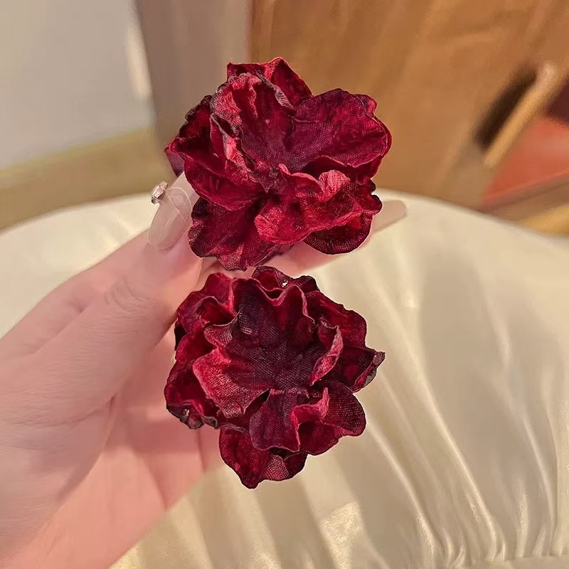 모리 스타일 꽃 헤어 클립 여성용 머리 반 묶은 헤어 그랩 클립 우아한 하이 엔드 헤드웨어 중형 상어 클립 헤어 액세서리