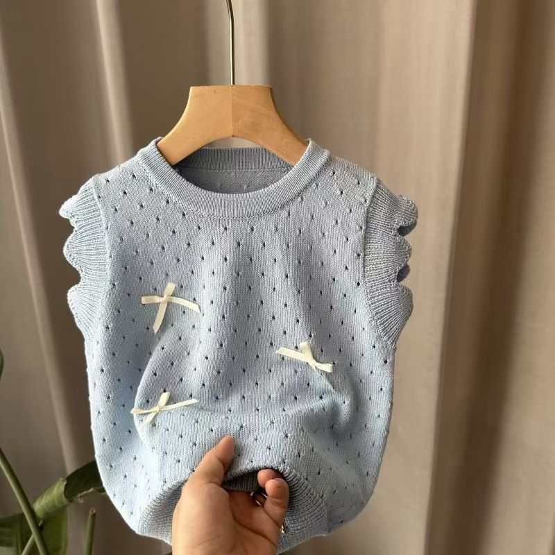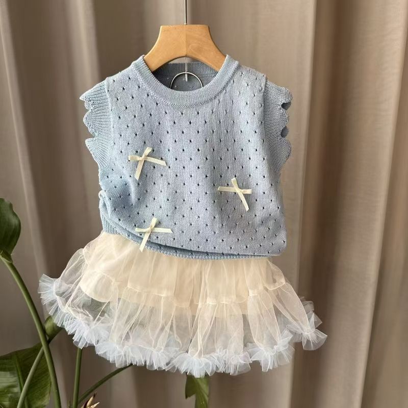 여자 여름 얼음 실크 탑 거즈 스커트 정장 2025 니트 스웨터 유행 아기 소녀 여름 투피스 스커트 유행스토어 가기