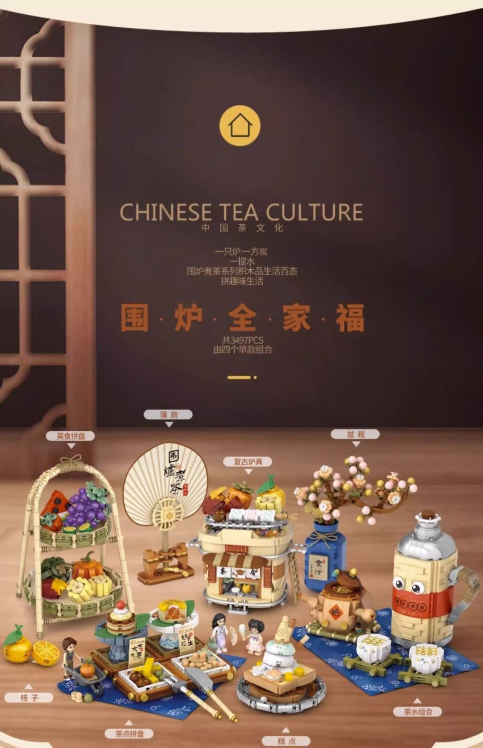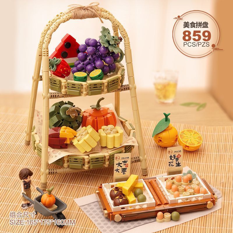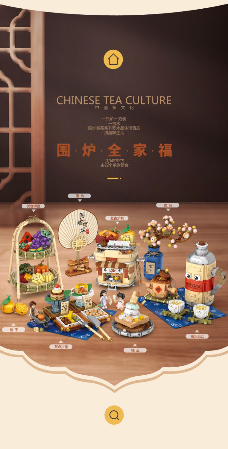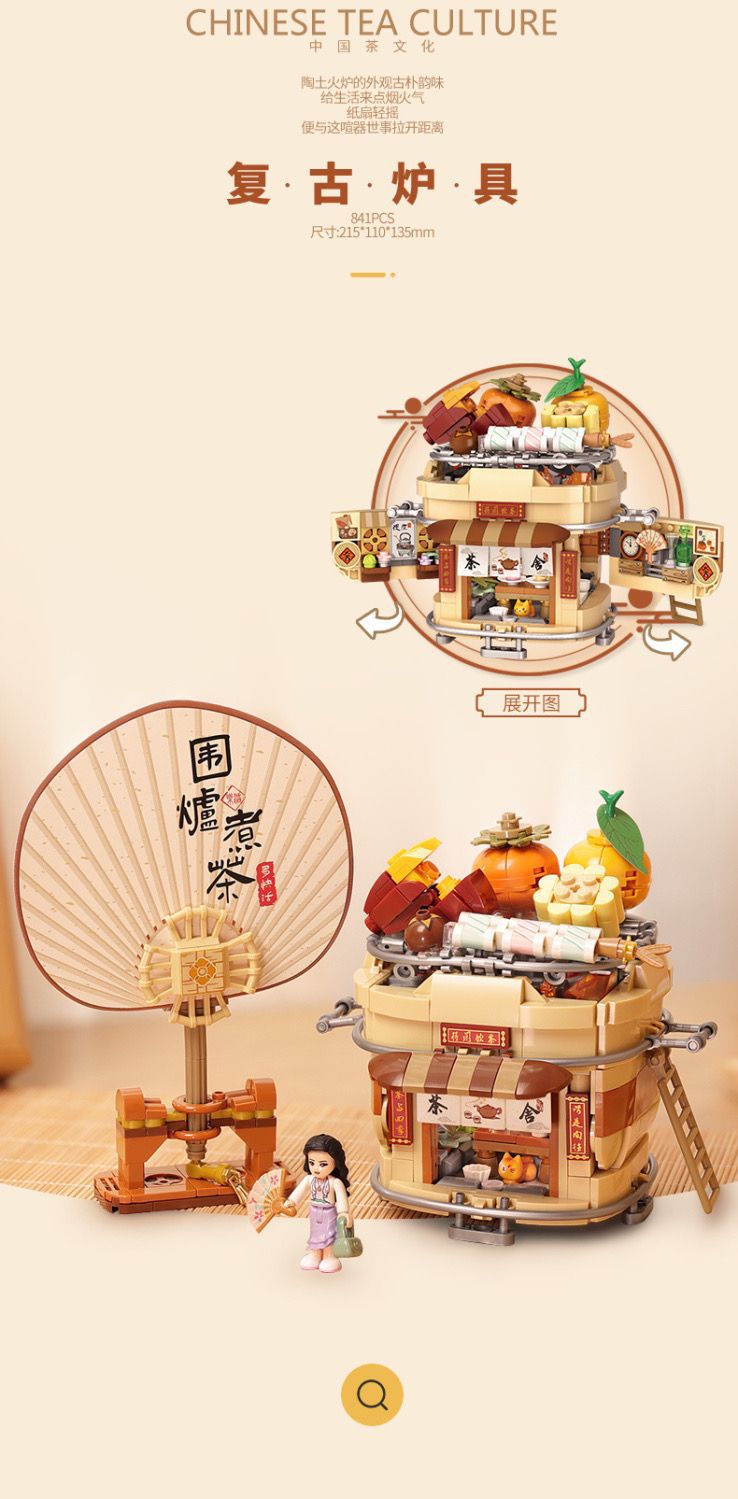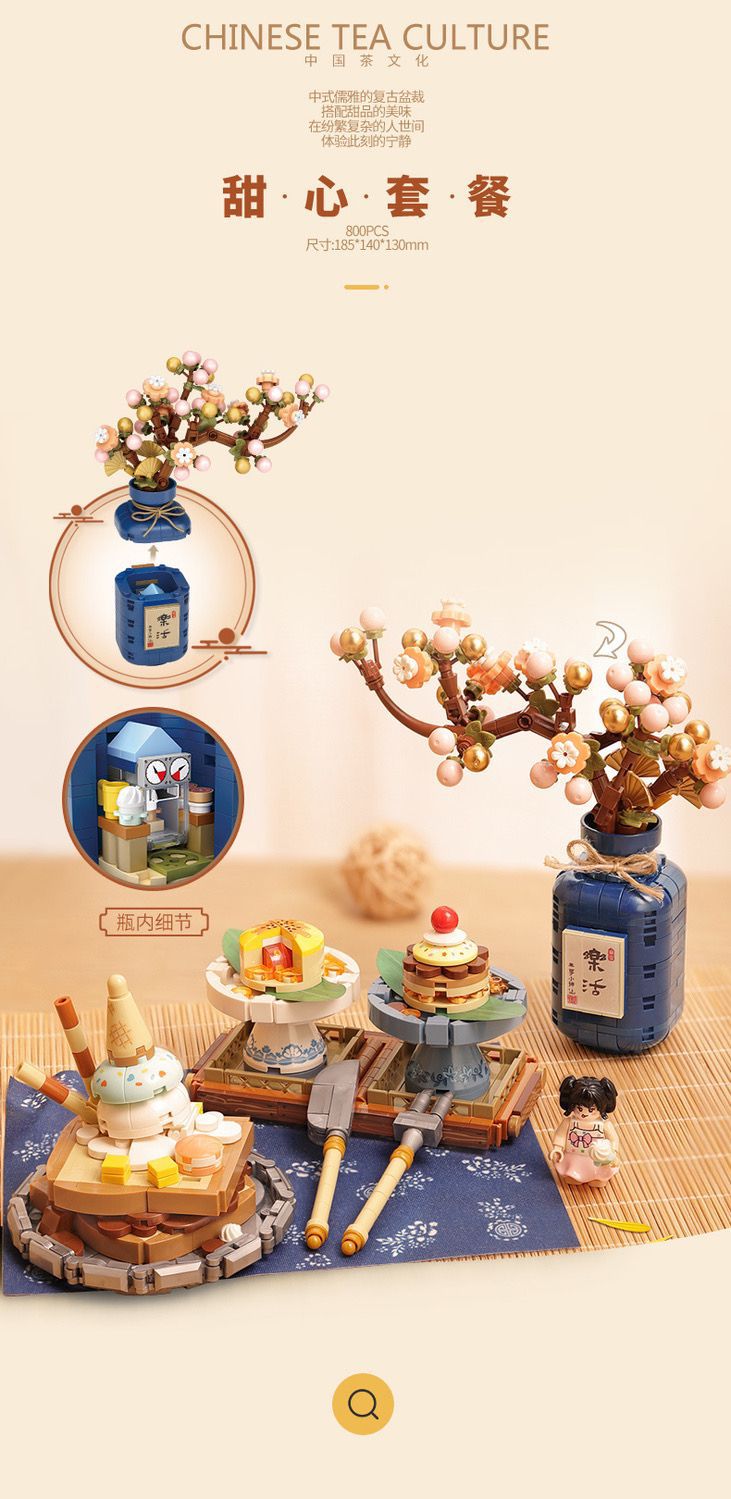 로즈 미니 과립 1388-91 로 중국 스타일 레트로 차 세트 어린이 선물 조립 된 빌딩 블록스토어 가기