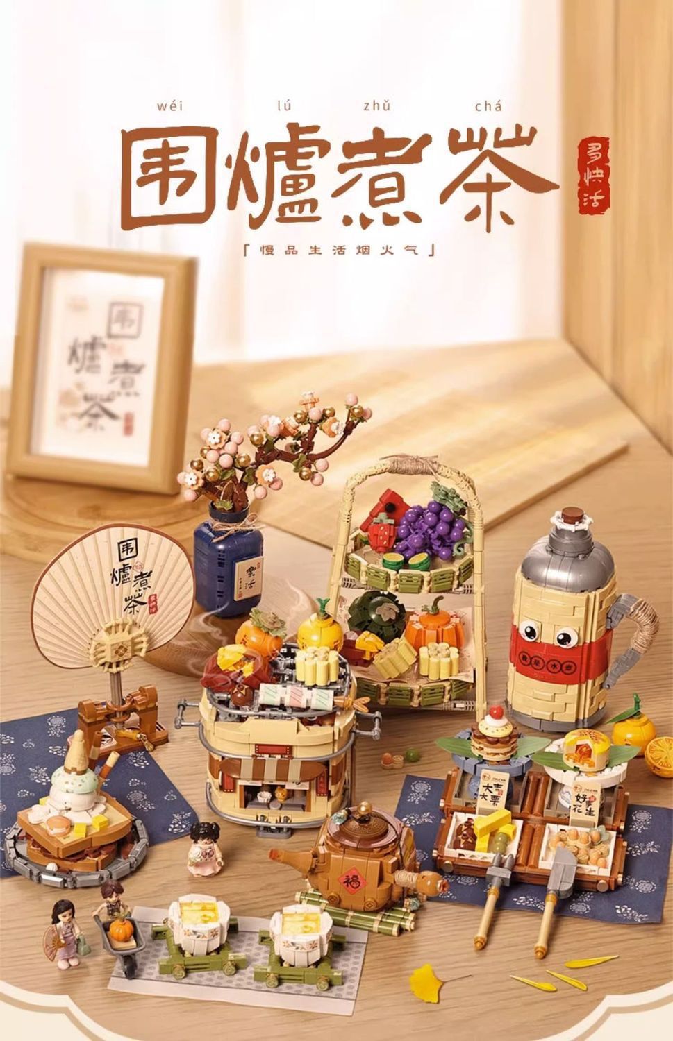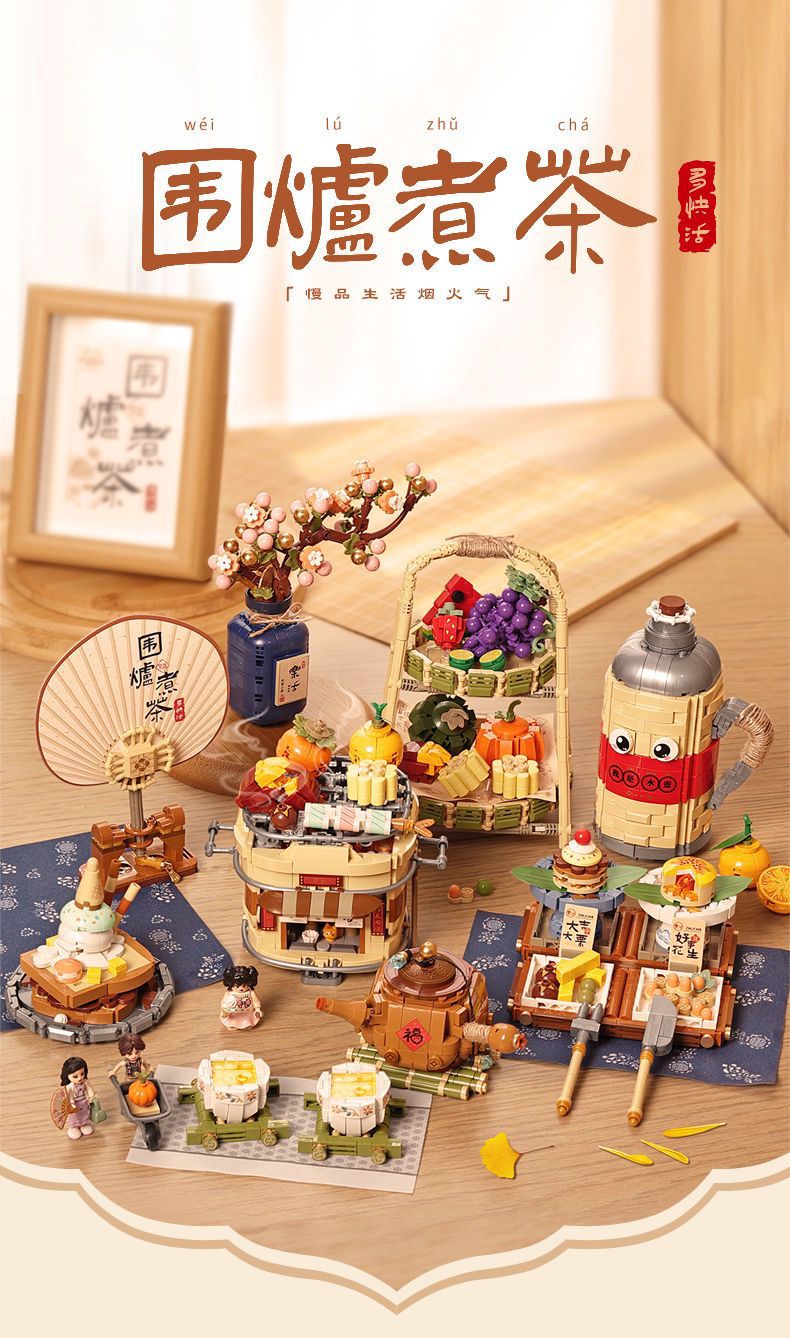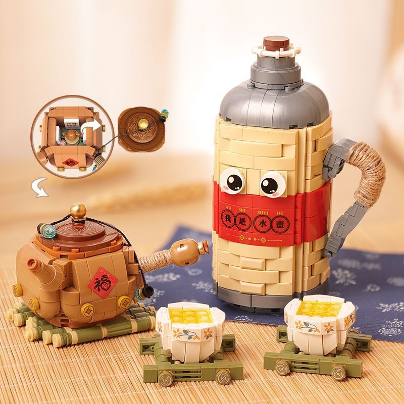 로즈 미니 과립 1388-91 로 중국 스타일 레트로 차 세트 어린이 선물 조립 된 빌딩 블록