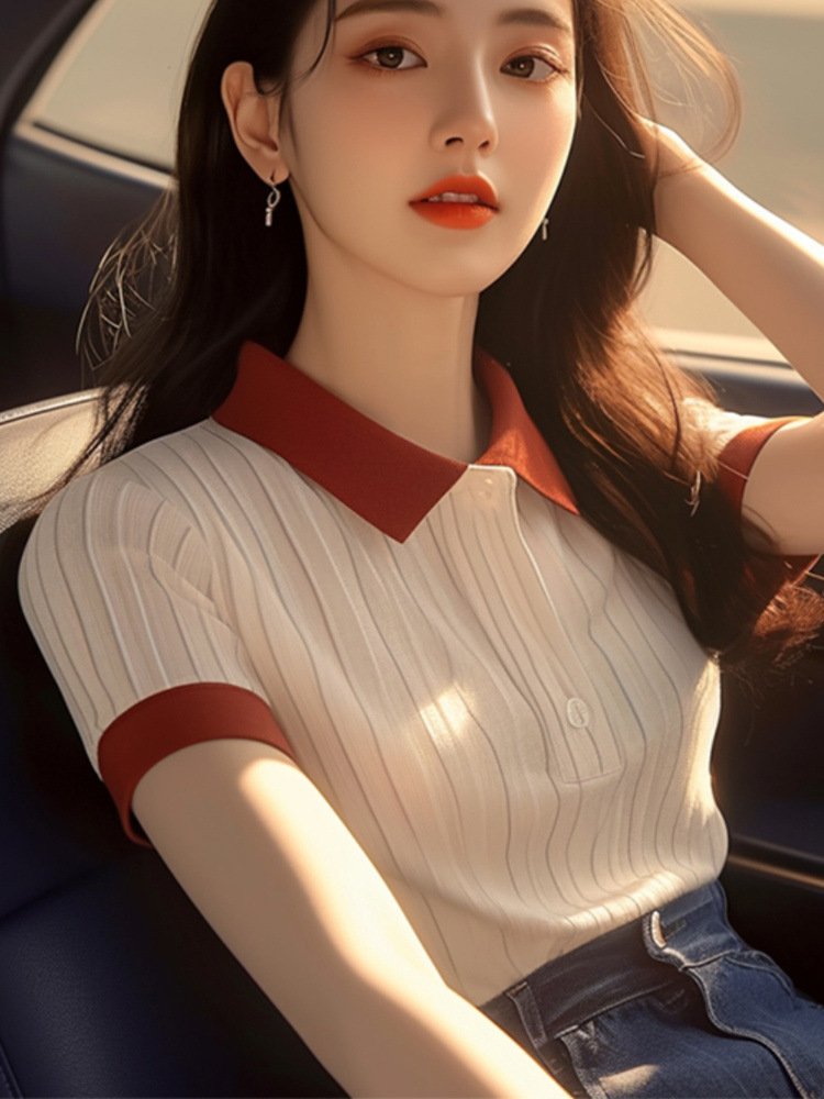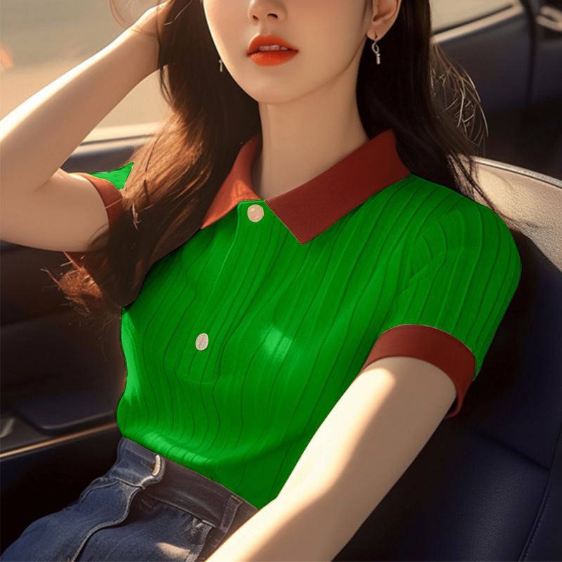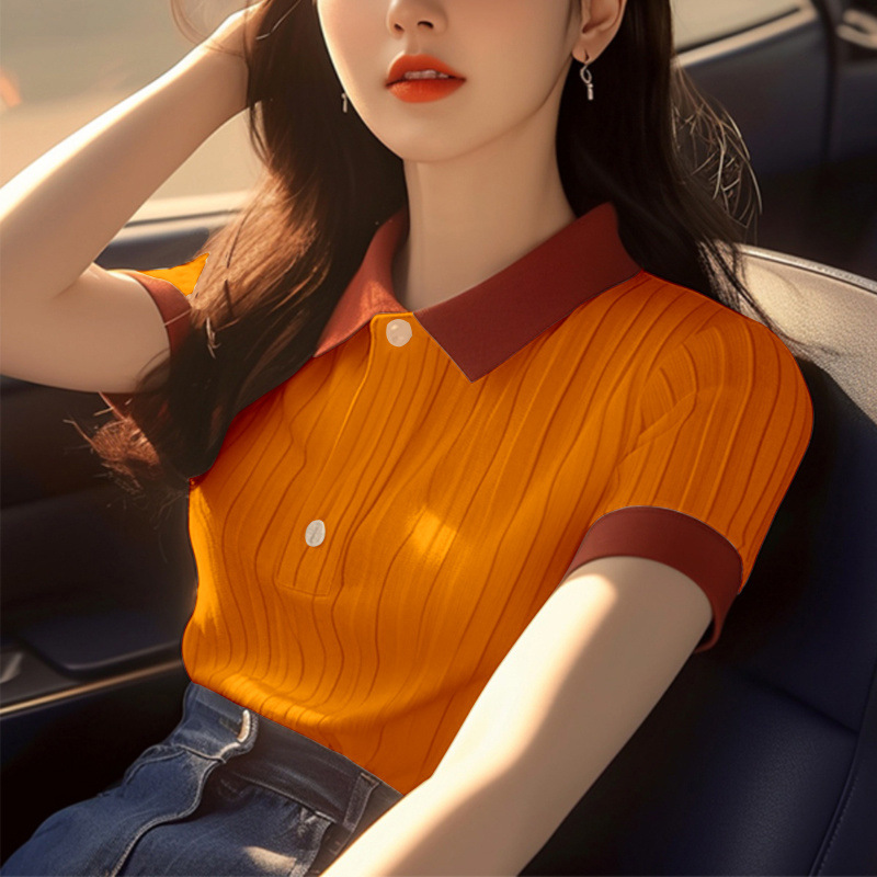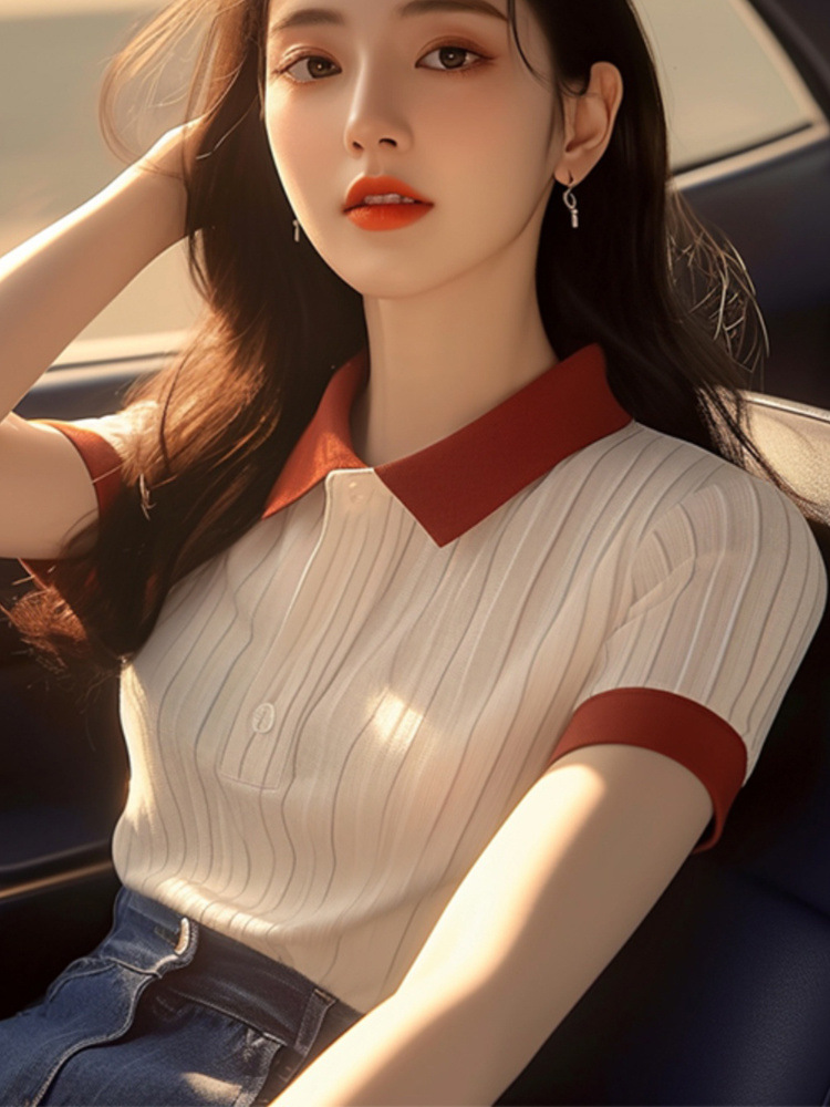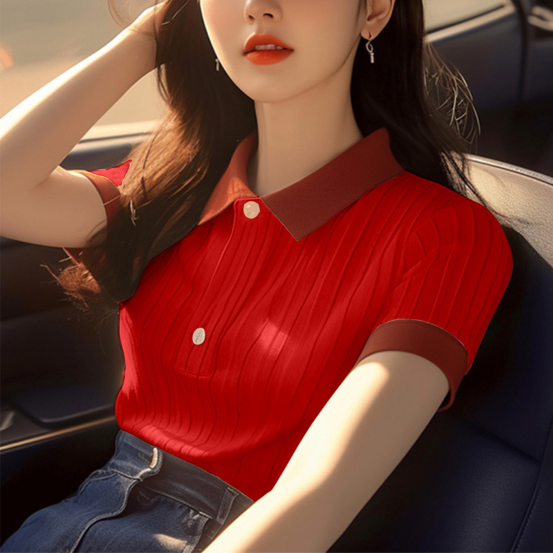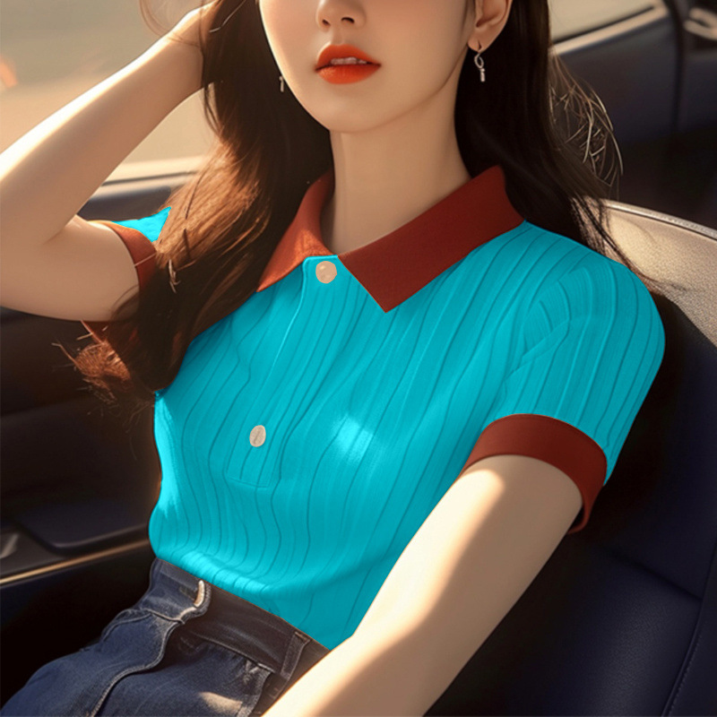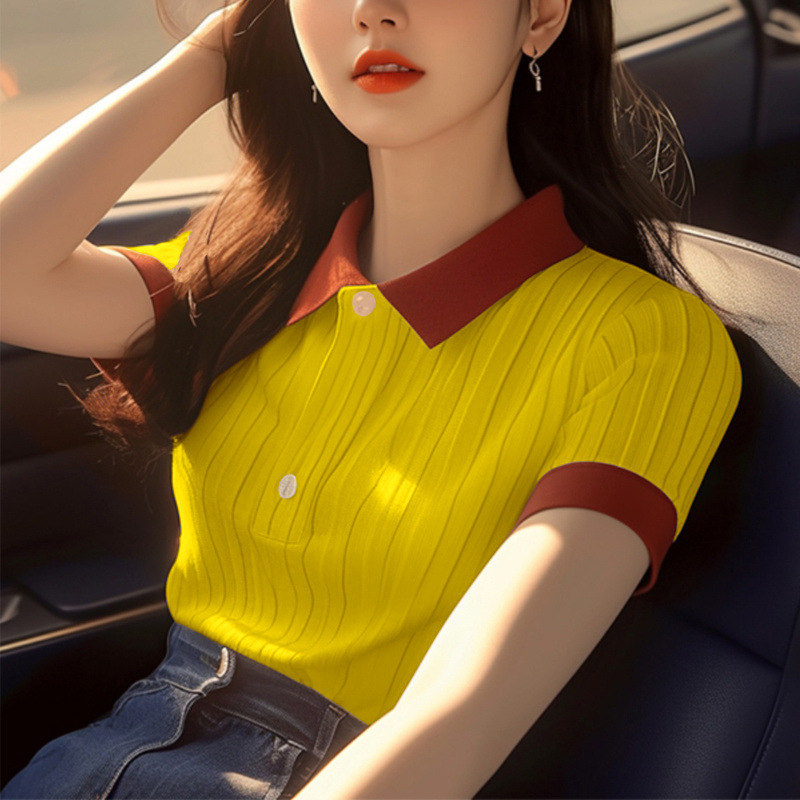 한국 스타일 심플 슈퍼 좋은 올매치 컬러 칼라 반팔 셔츠 여자 여름 독특한 올매치 슬리밍 셔츠스토어 가기