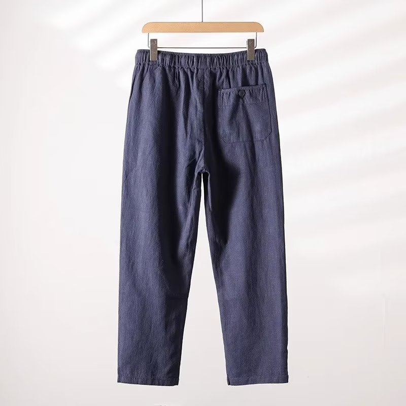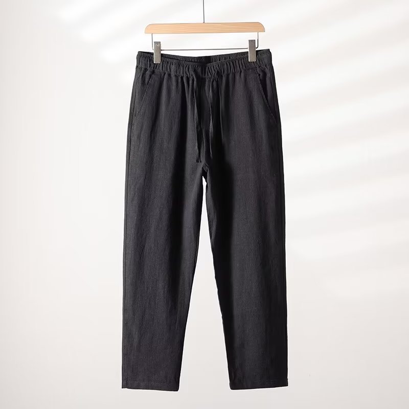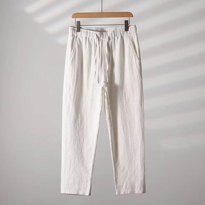 스트레이트 리넨 바지 남자 여름 새로운 일본 스타일 복고풍 리넨 캐주얼 바지 솔리드 컬러 코튼 및 리넨 올 매치 발목 길이 바지