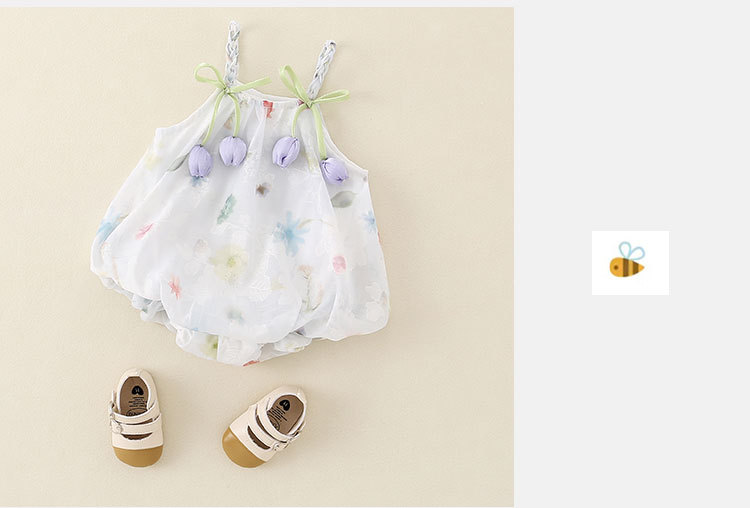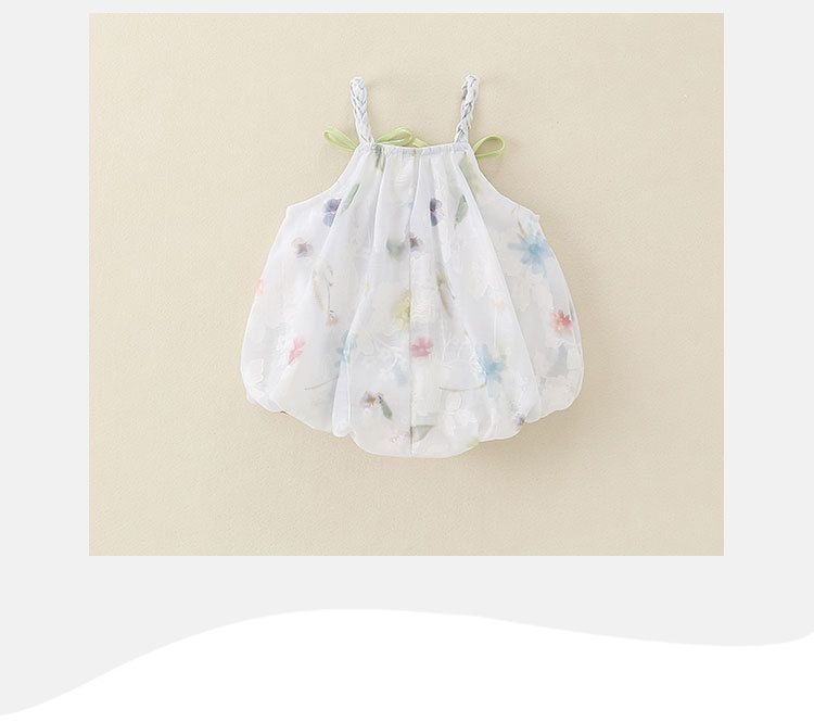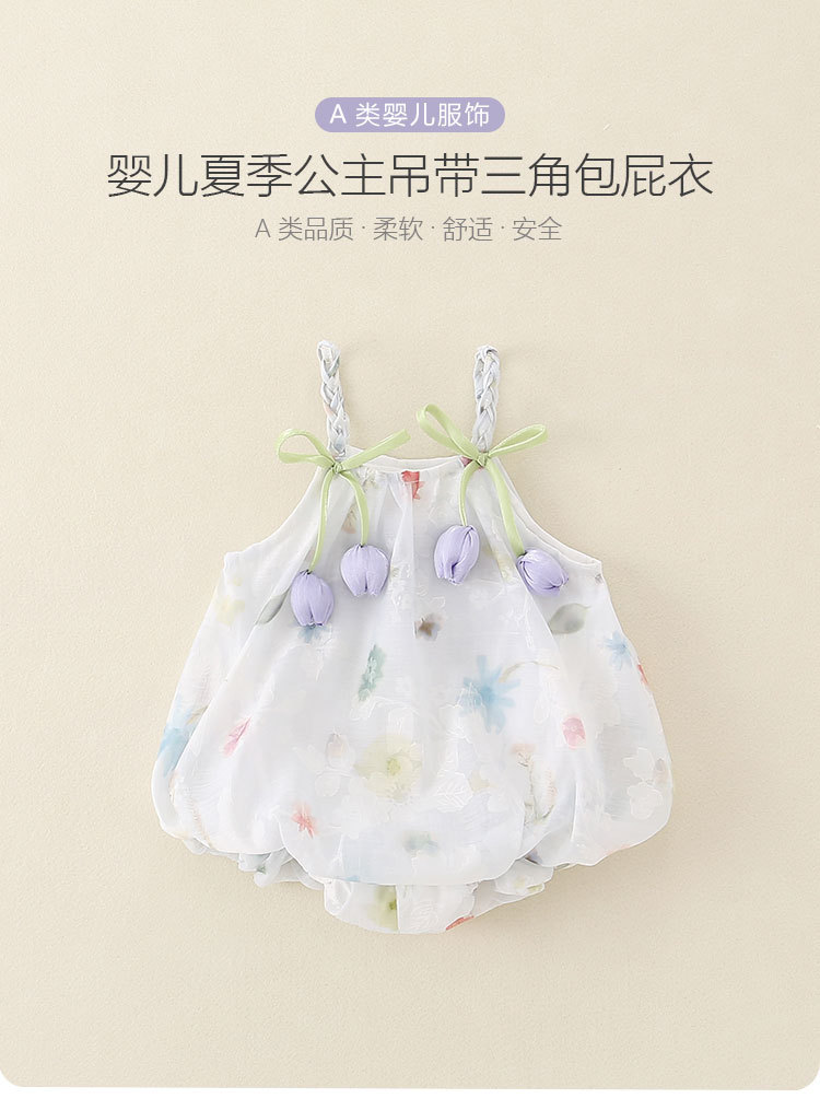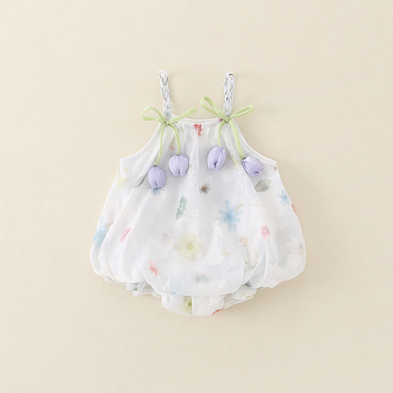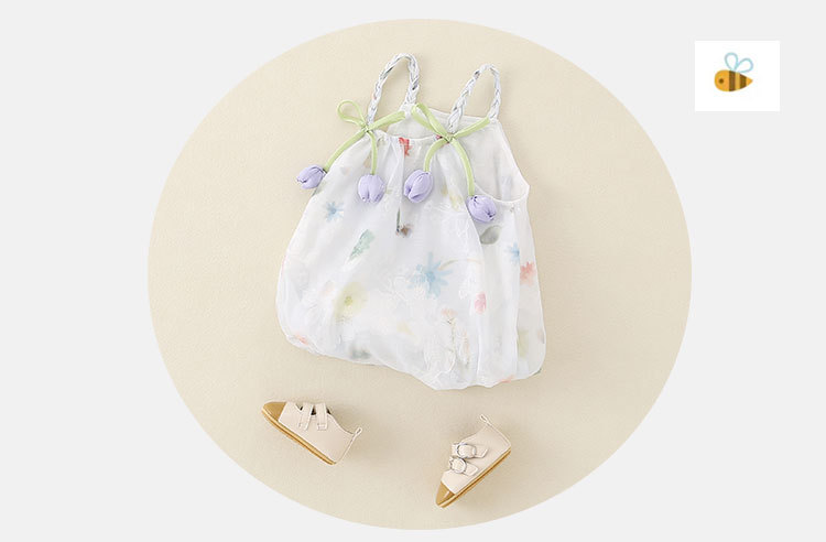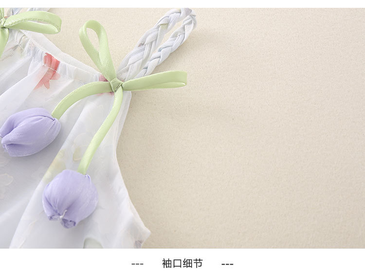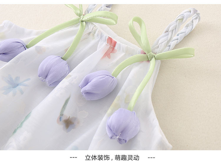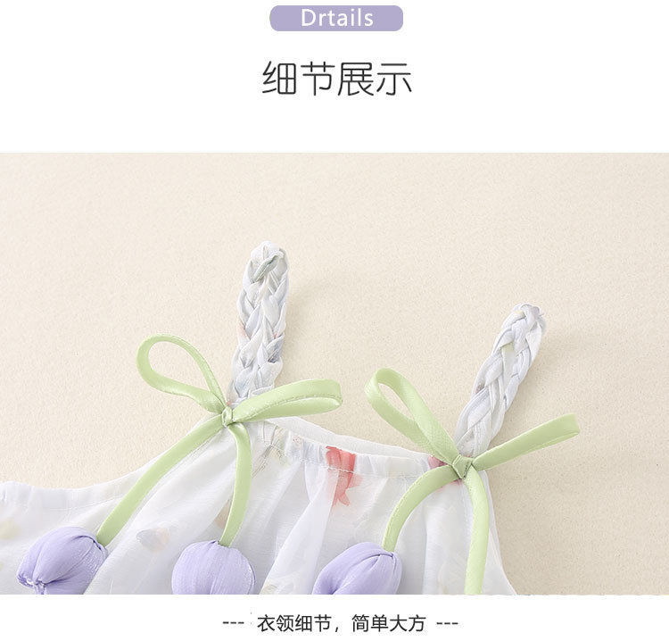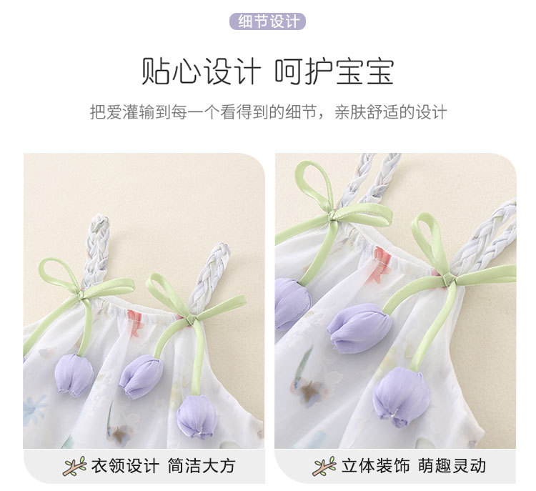 2025 한국식 여름 새 튤립 쉬폰 슬링 원피스 아기 삼각형 모자 아름다운 공주 원피스스토어 가기
