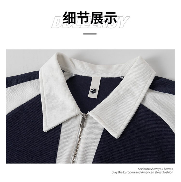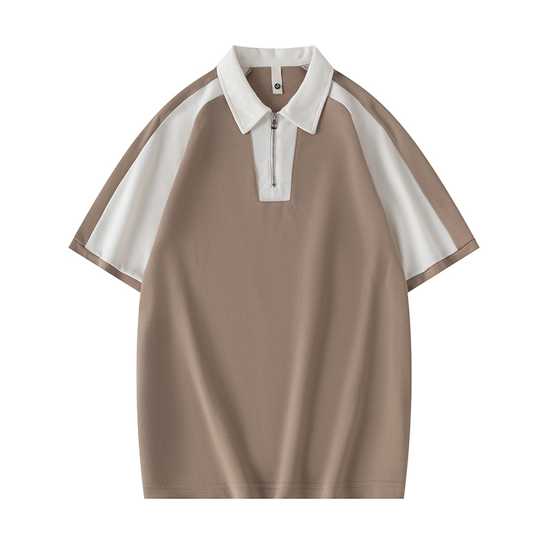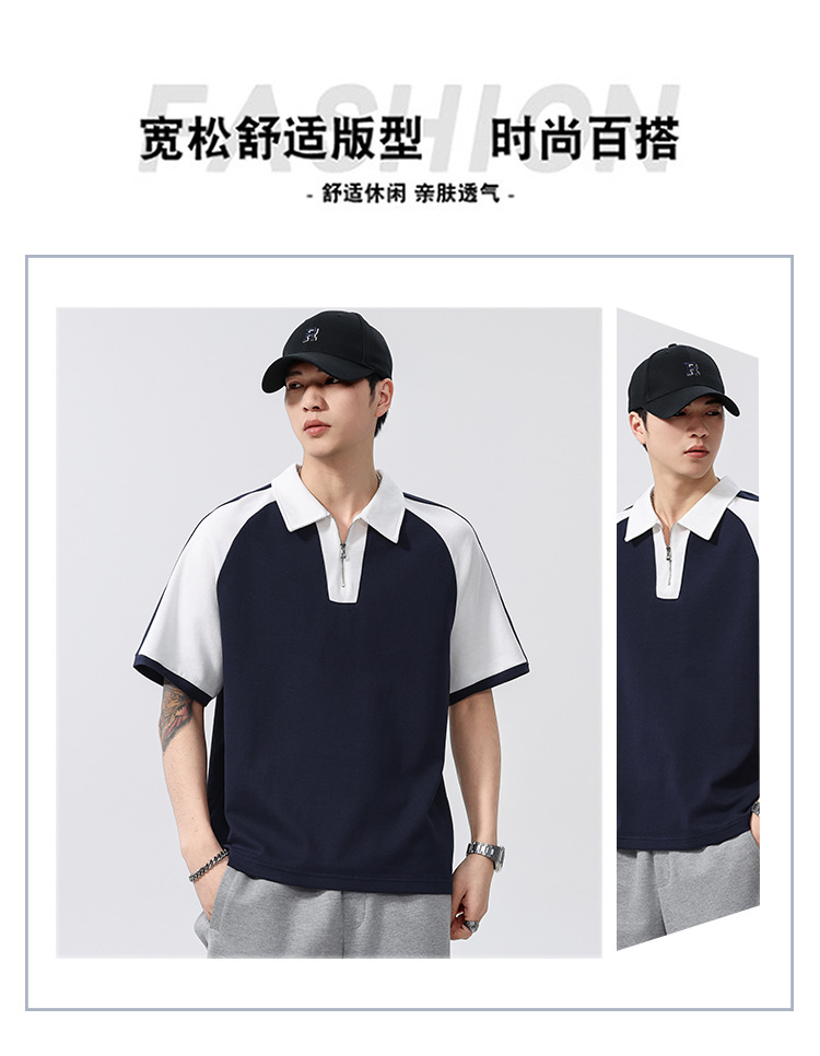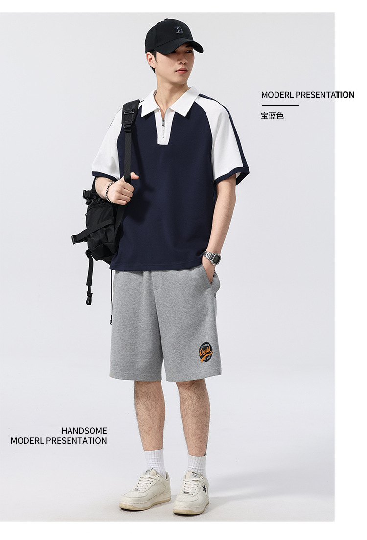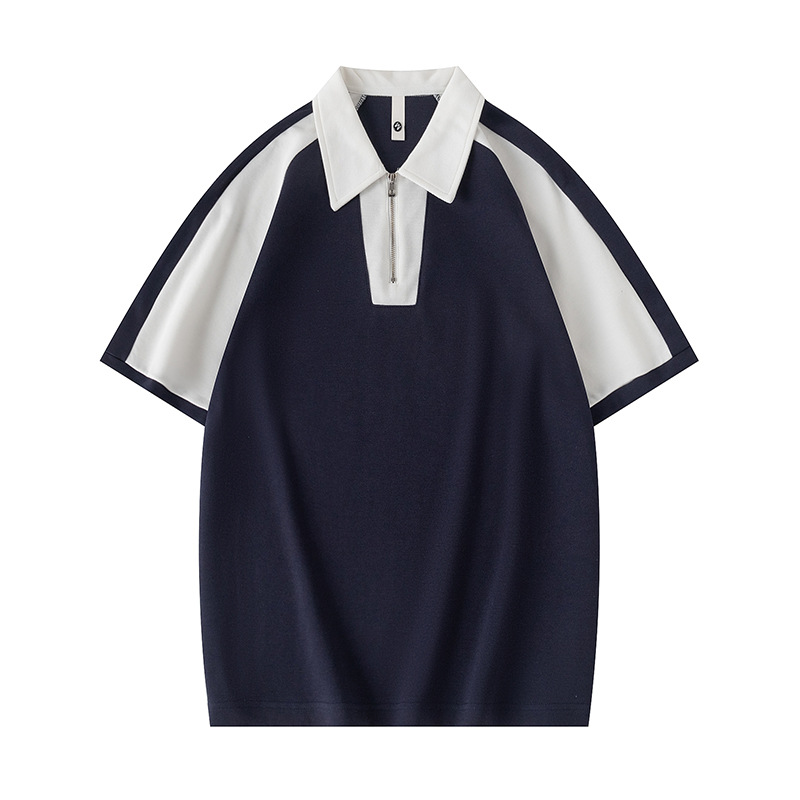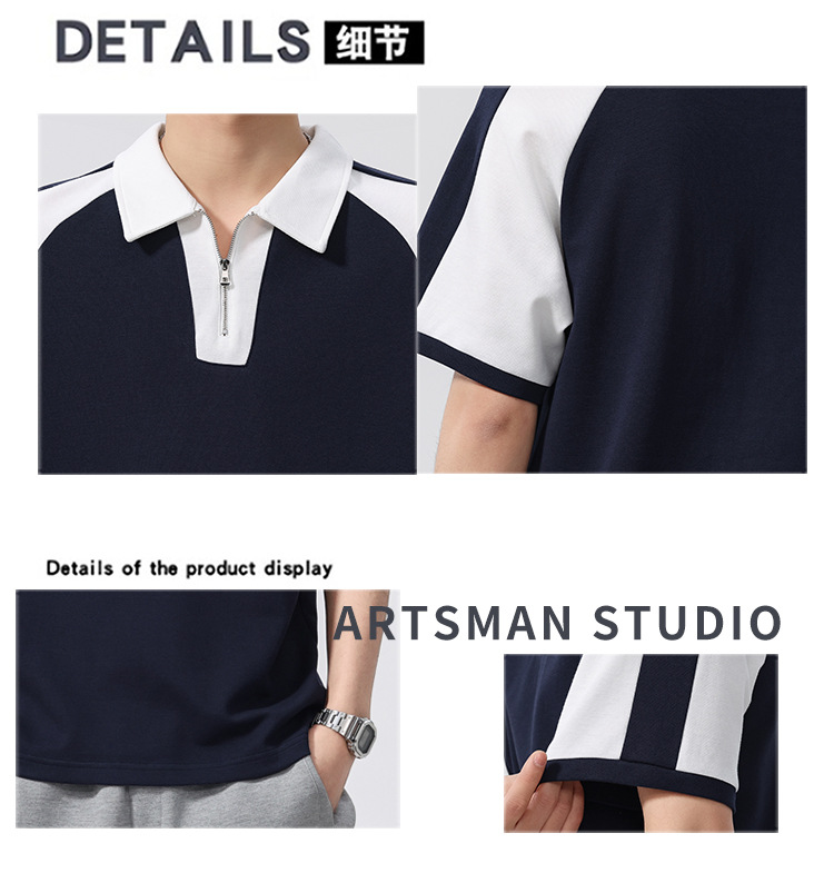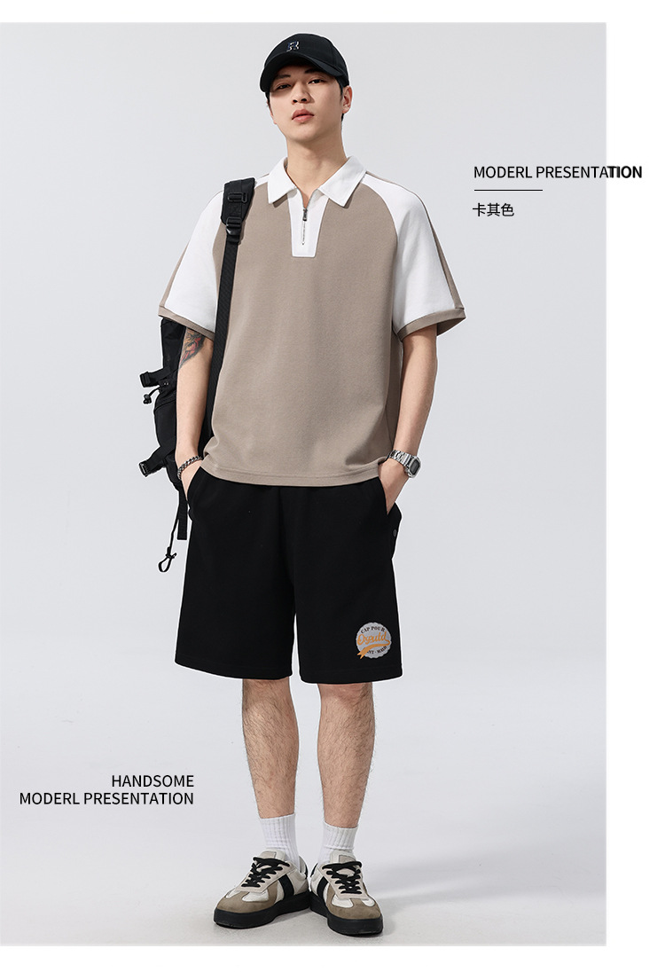ShichengbackSummer 새로운 컬러 블록 폴로 셔츠 반팔 느슨한 캐주얼 티셔츠 반 지퍼 남성용 탑
