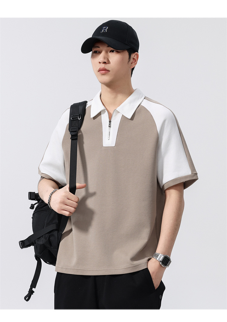 ShichengbackSummer 새로운 컬러 블록 폴로 셔츠 반팔 느슨한 캐주얼 티셔츠 반 지퍼 남성용 탑스토어 가기