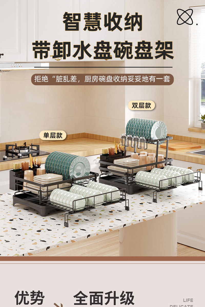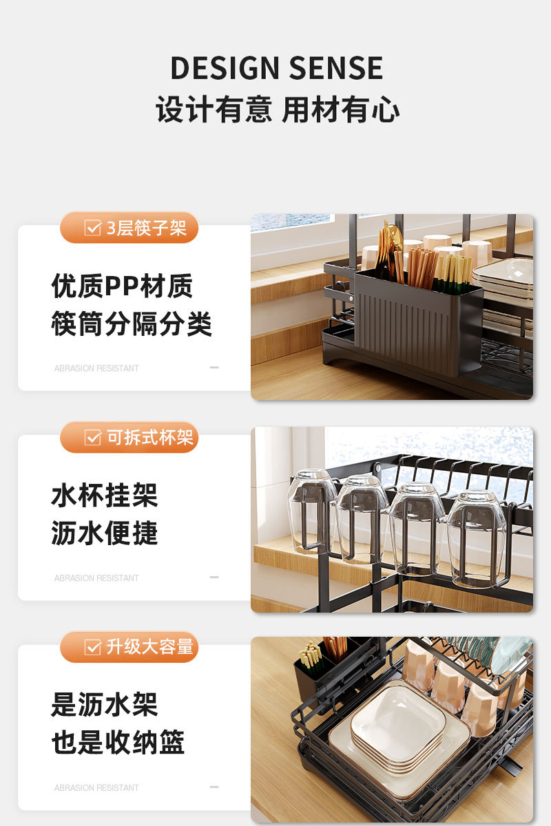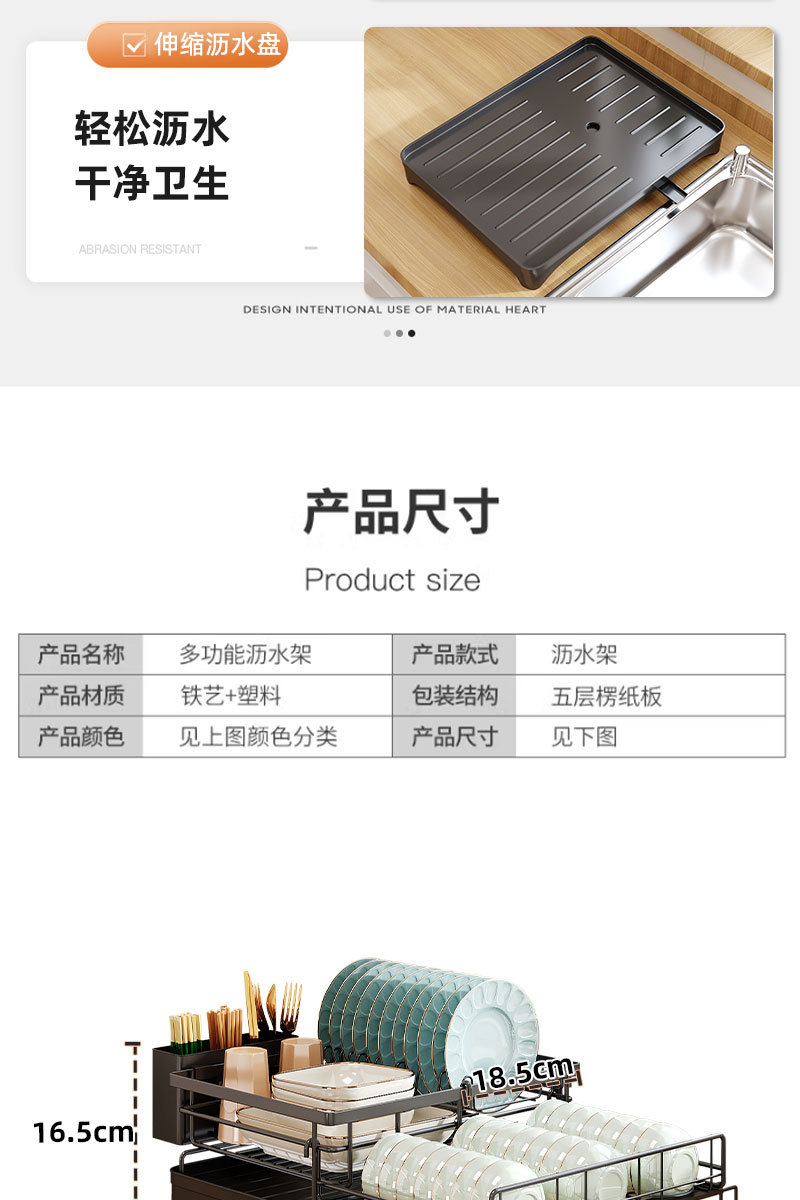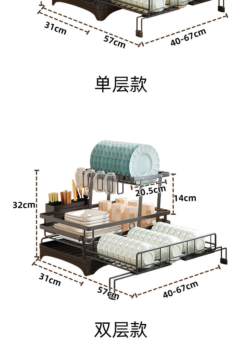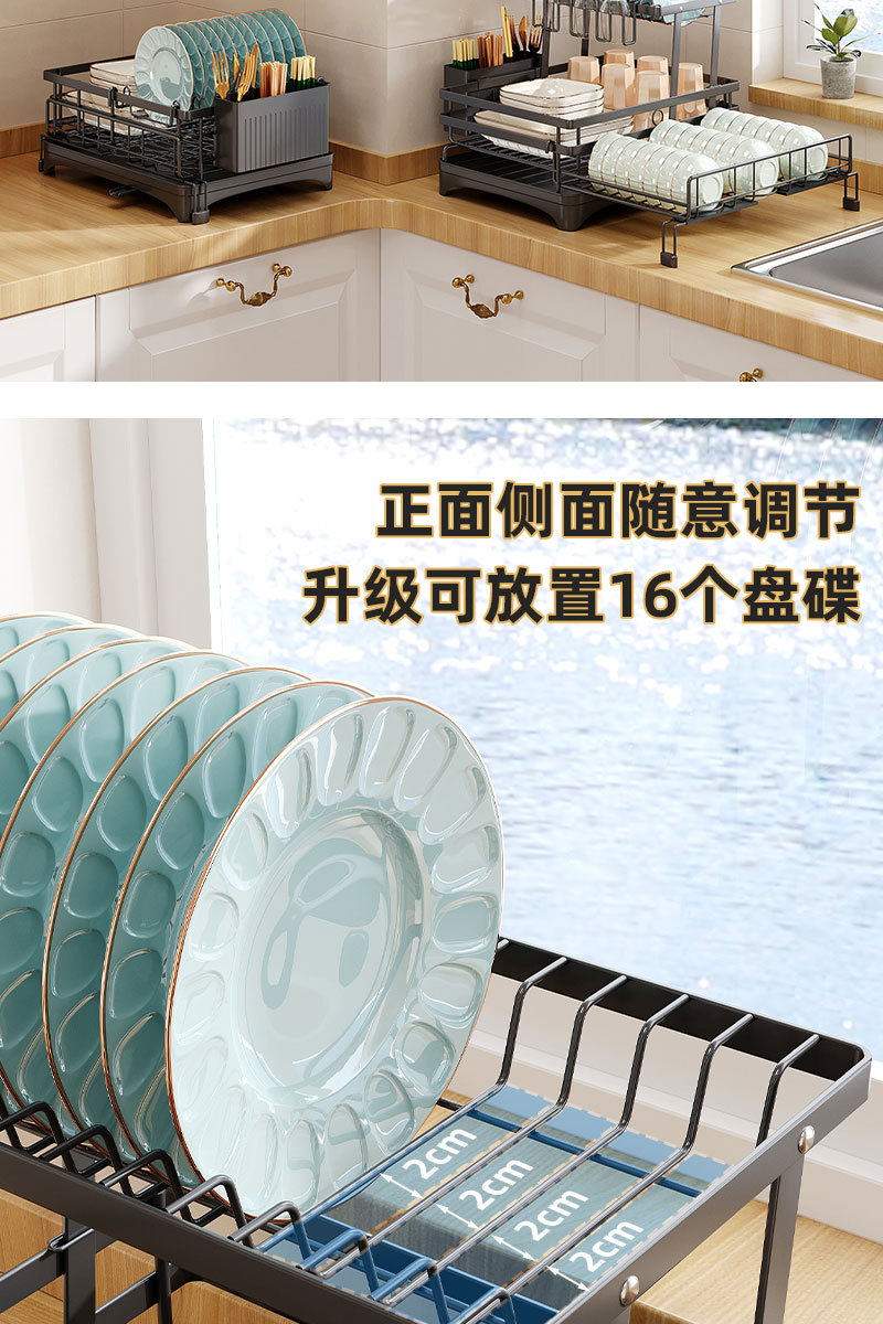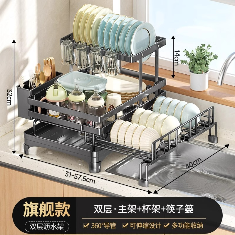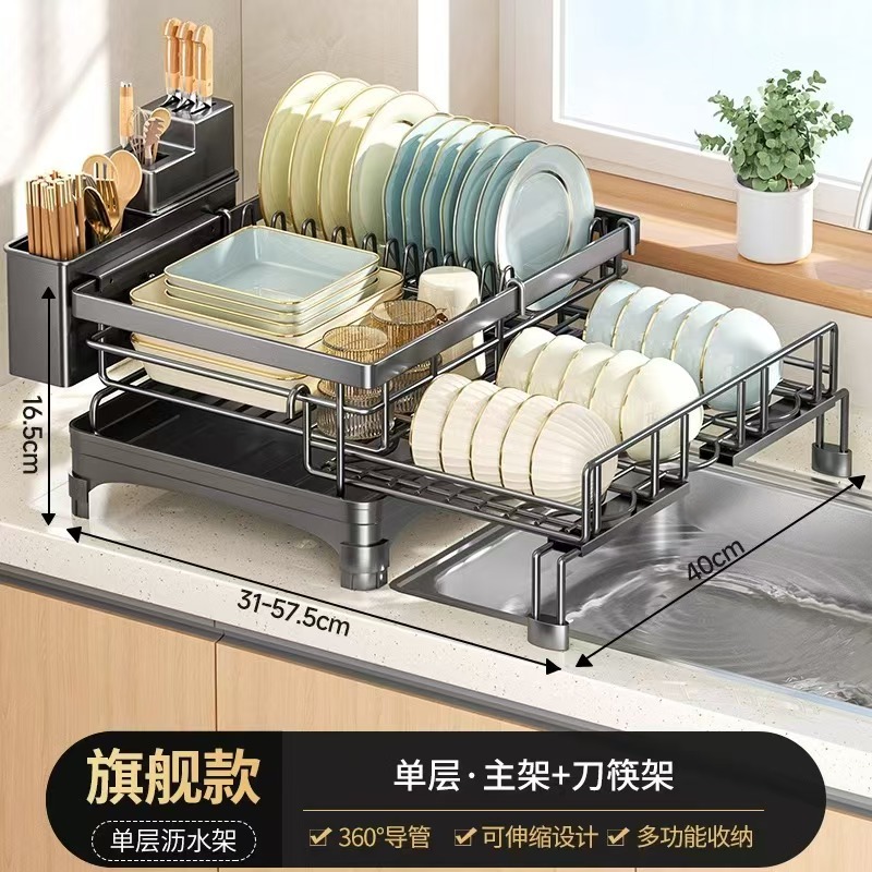 접이식 식기 건조대, 식기류 정리대, 조리대 이중층 칼/포크 건조대