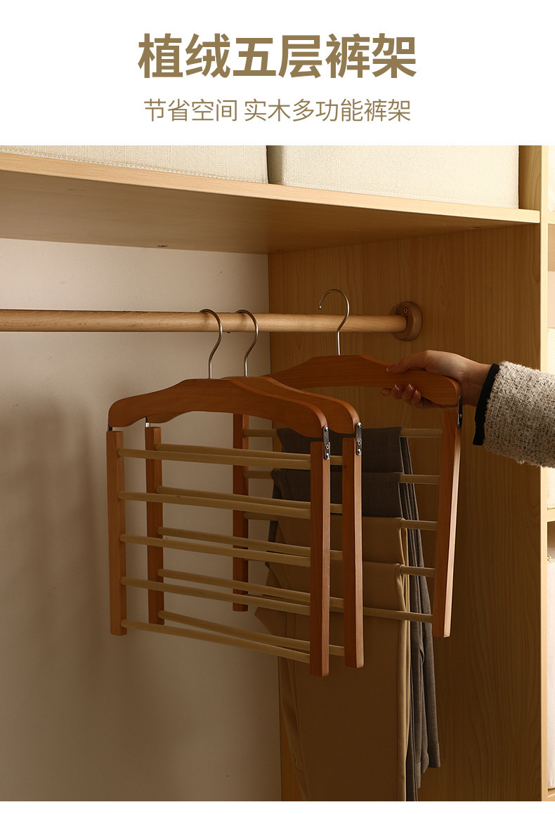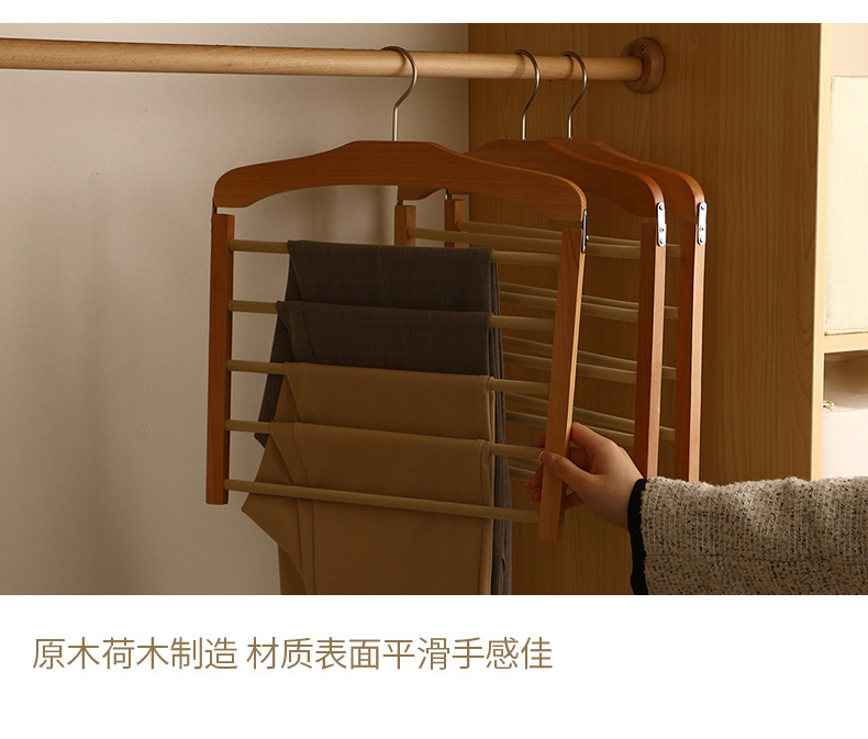 단단한 나무 바지 걸이, 다기능 접이식 바지 걸이, 가정용 다층 바지 걸이, 옷장 보관스토어 가기