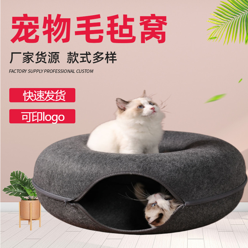 사계절 유니버설 고양이 터널 펠트 둥지 도넛 고양이 둥지 롤링 어스 드래곤 고양이 채널 드릴 구멍 이동식 및 세척 가능한 애완 동물 둥지스토어 가기