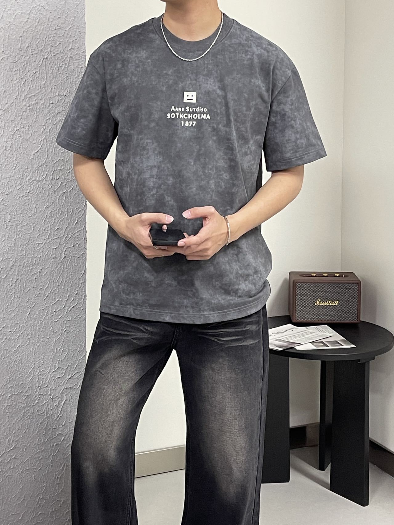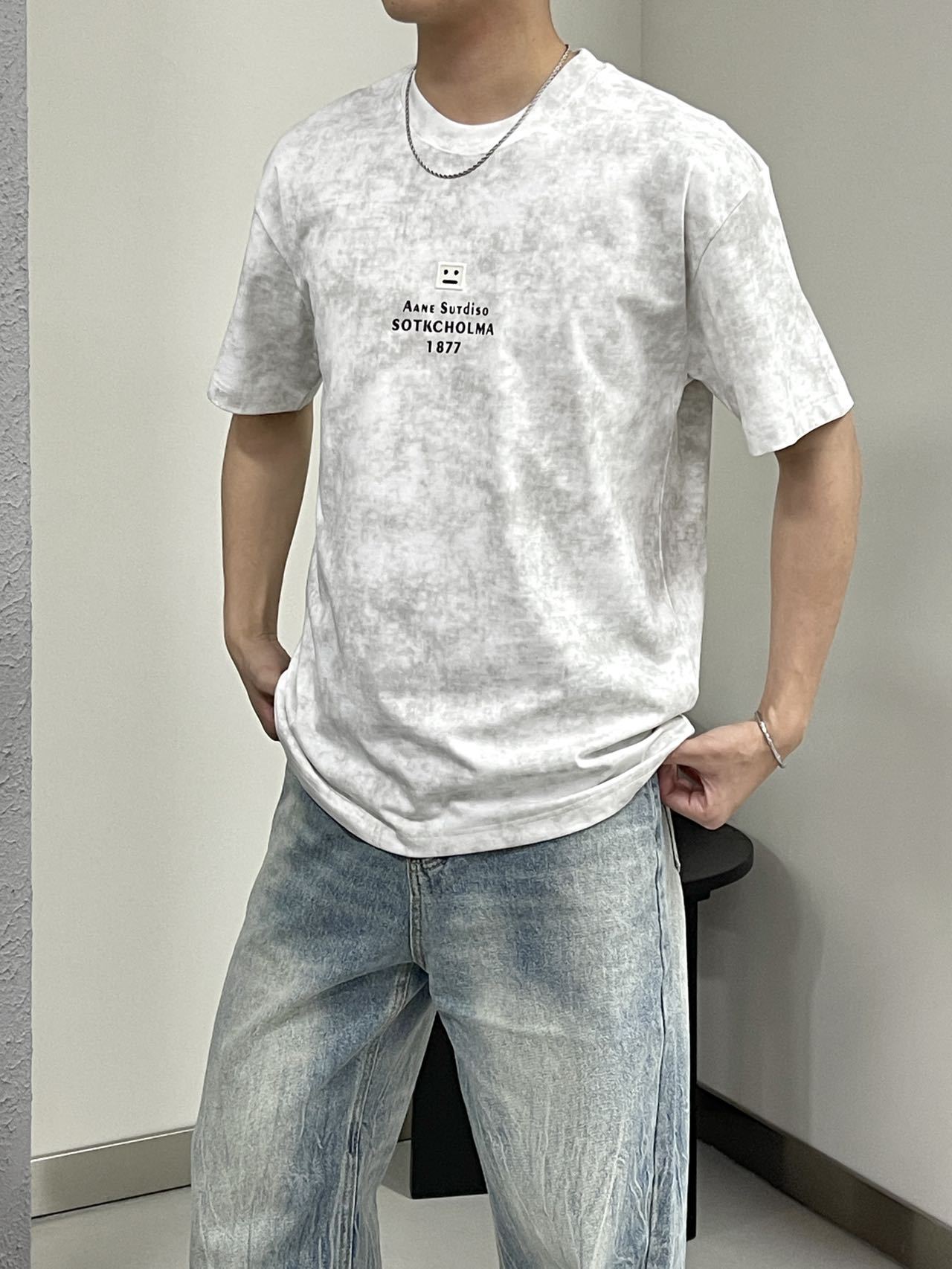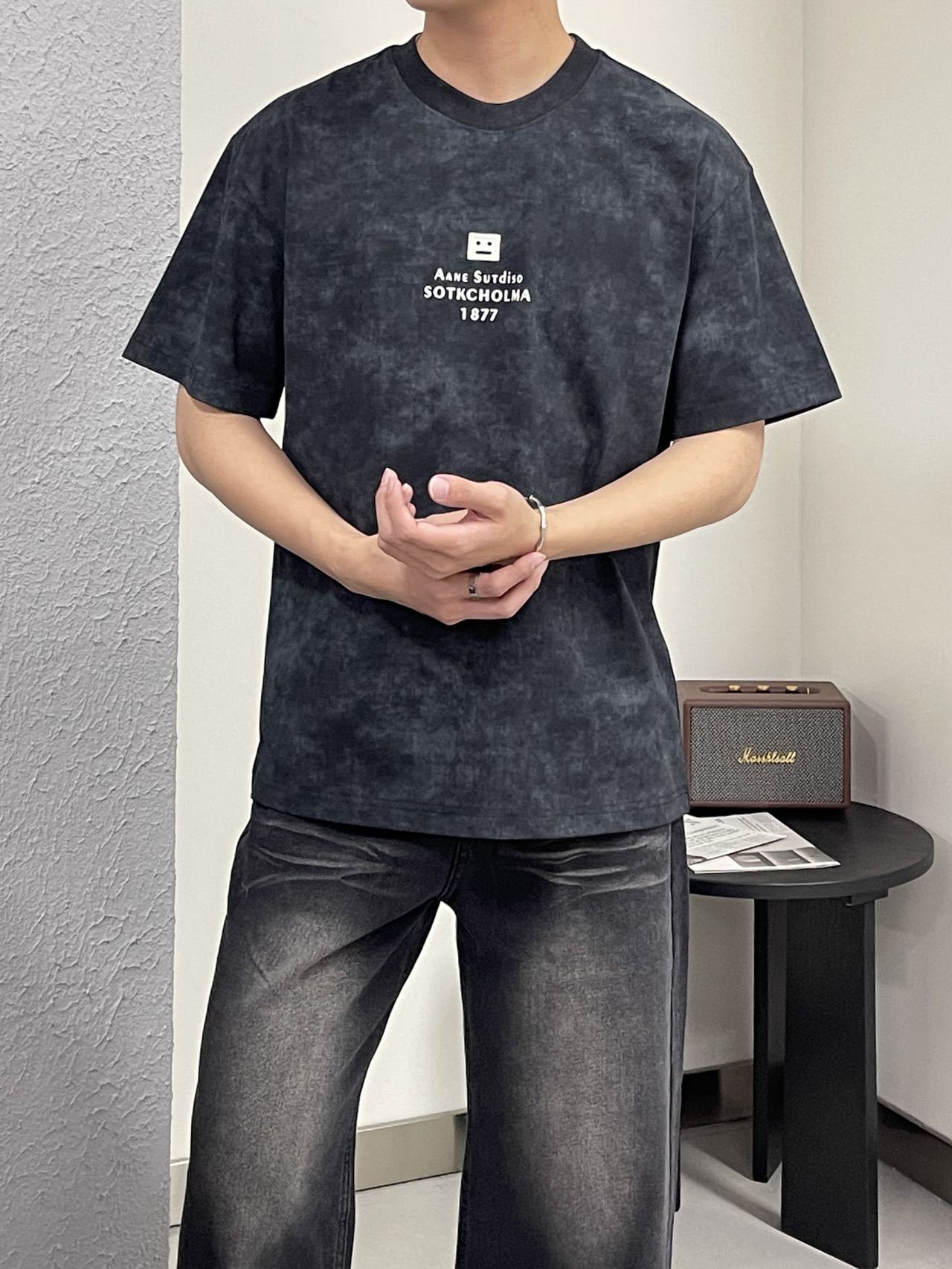 2025 년 여름 새로운 하이 타이-염료 반소매 느슨한 커플 티셔츠 폭발 순수 면 염료 캐주얼 T 반팔 트렌디스토어 가기
