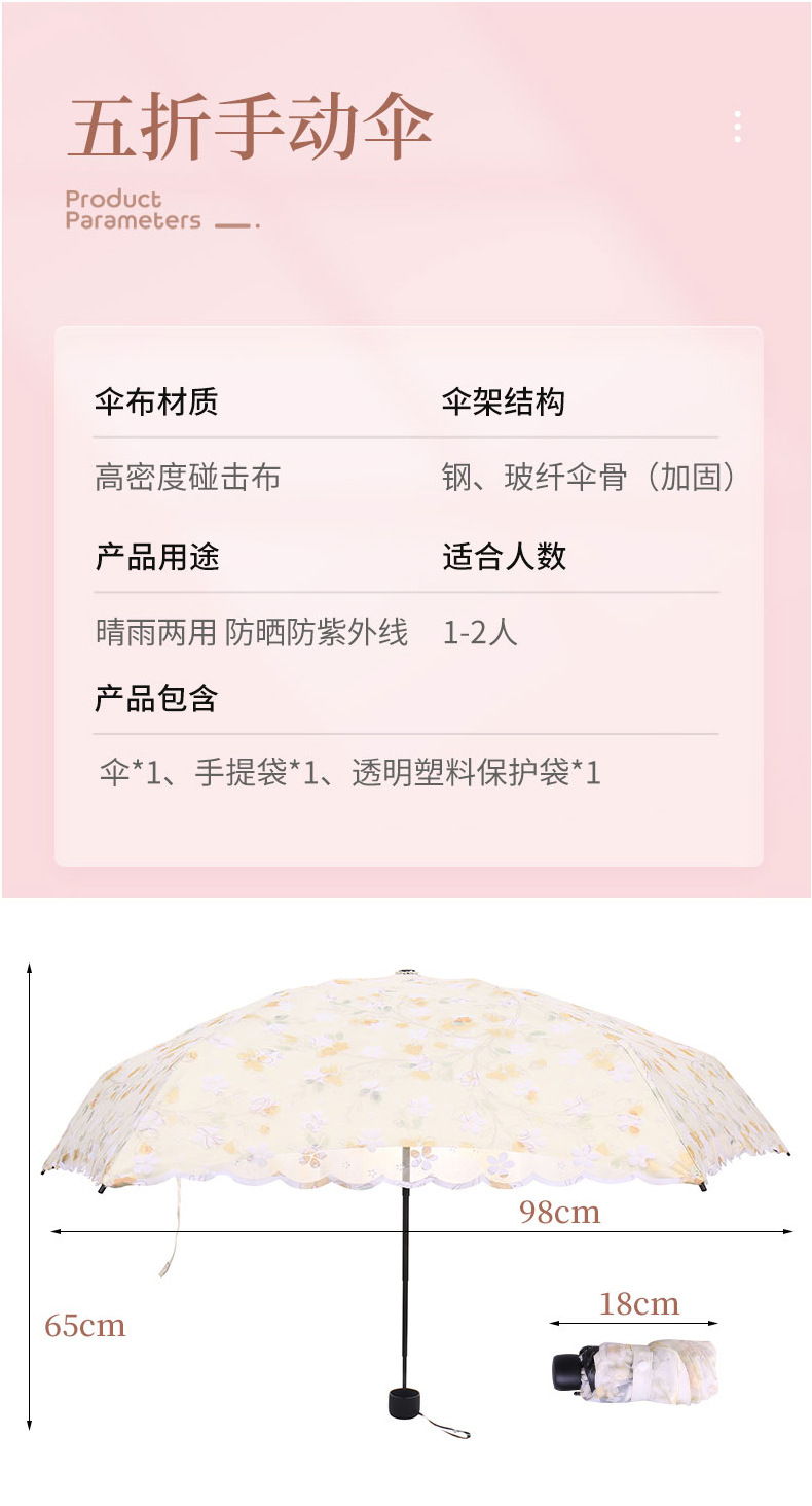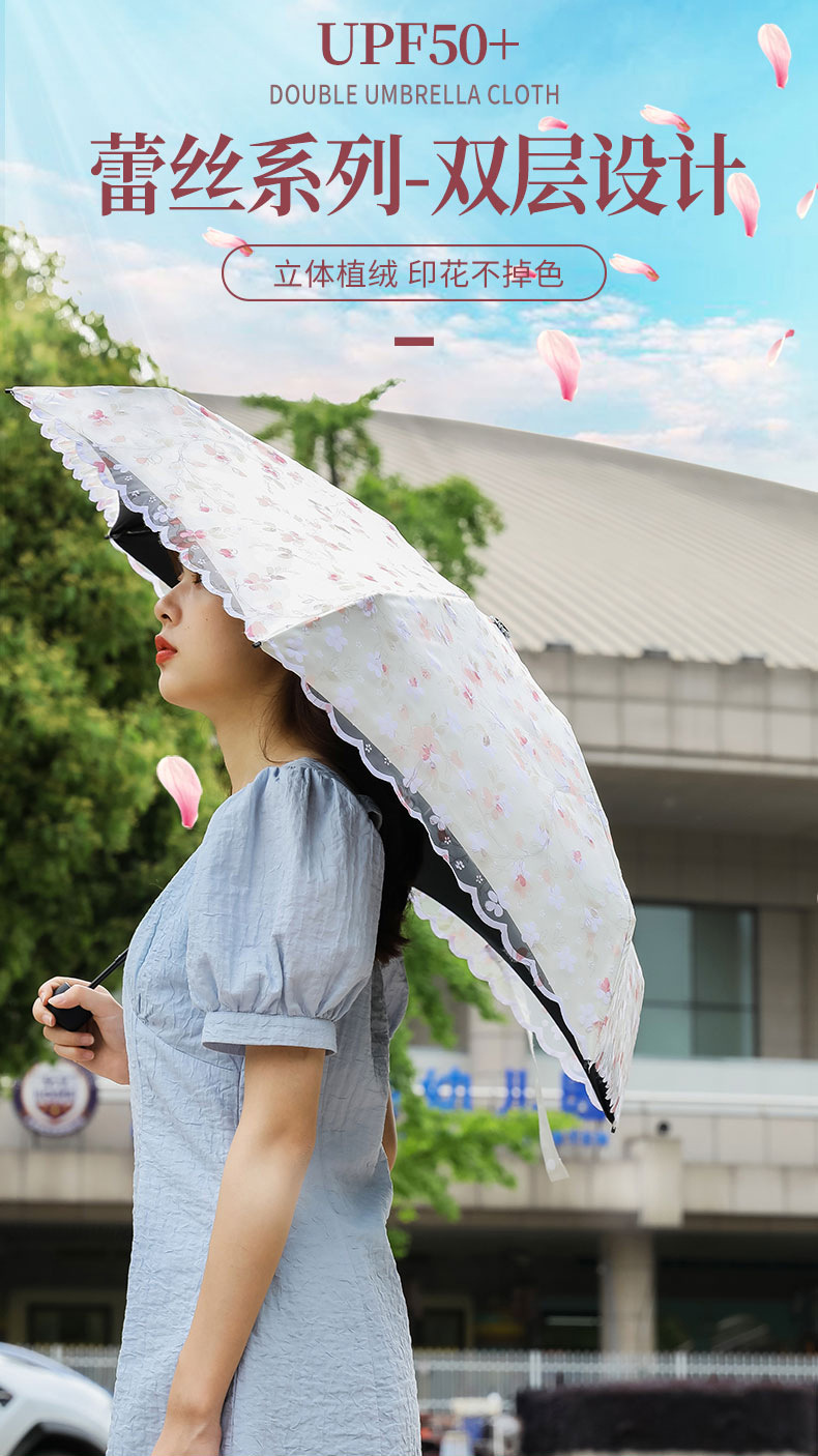 핸드백 50% off 자외선 차단 우산 여성용 작은 신선한 레이스 태양 우산 단일 소형 휴대용 태양 우산스토어 가기
