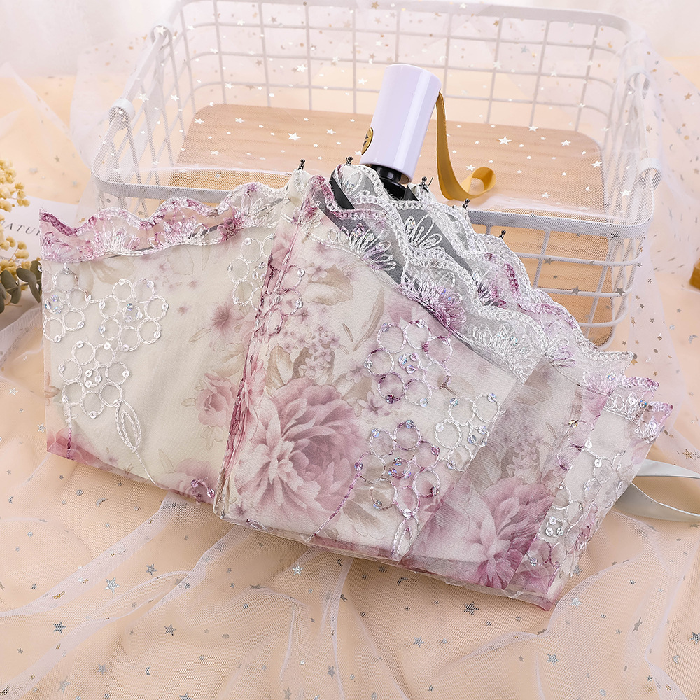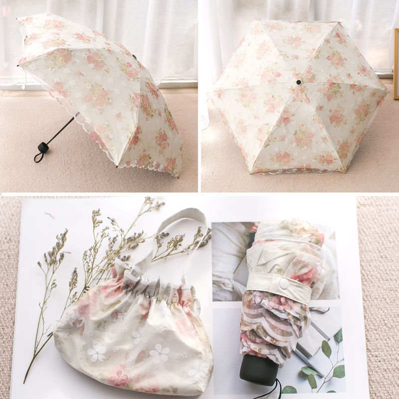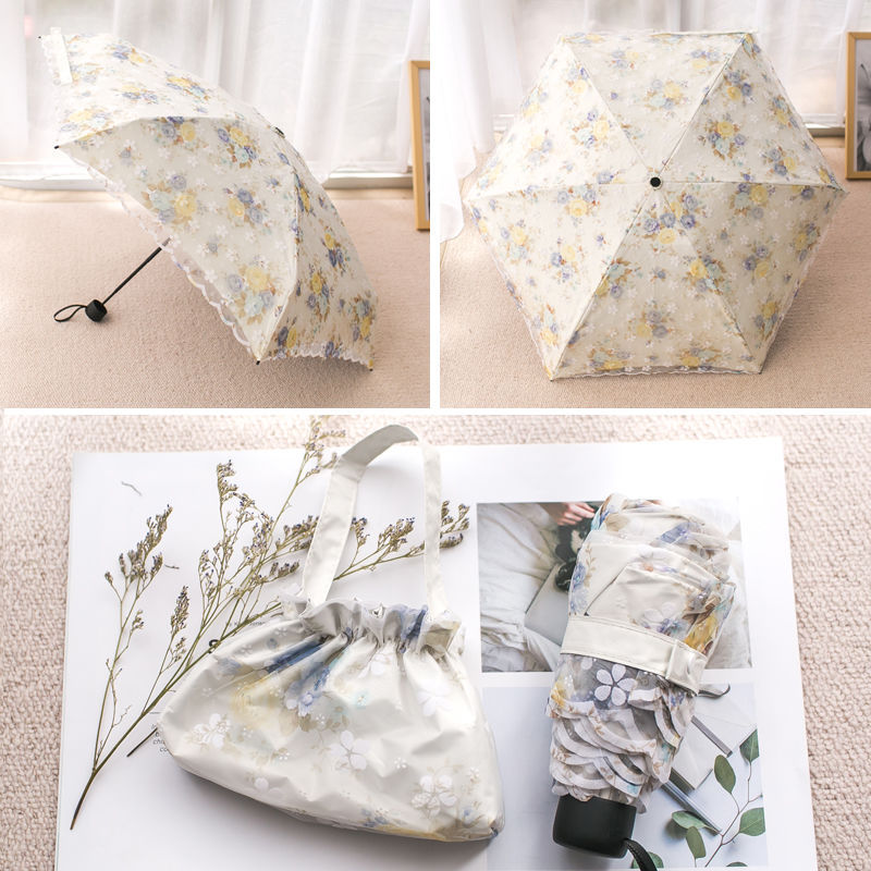 핸드백 50% off 자외선 차단 우산 여성용 작은 신선한 레이스 태양 우산 단일 소형 휴대용 태양 우산