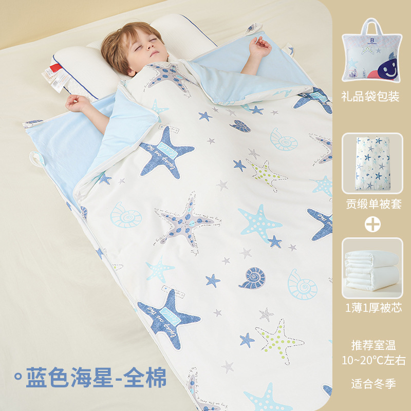 • [면 이불커버 + 얇은 이불심 1개 + 두꺼운 이불심 1개] 블루 불가사리