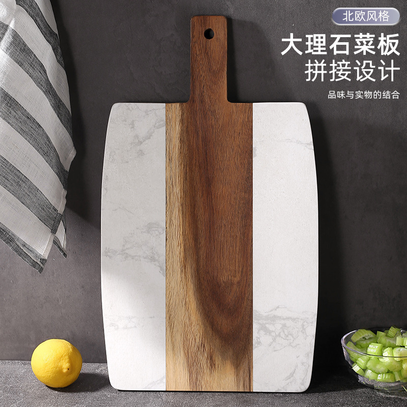 대리석 도마 아카시아 나무 접합 흰색 대리석 도마 치즈 치즈 플래터 핸들 도마스토어 가기