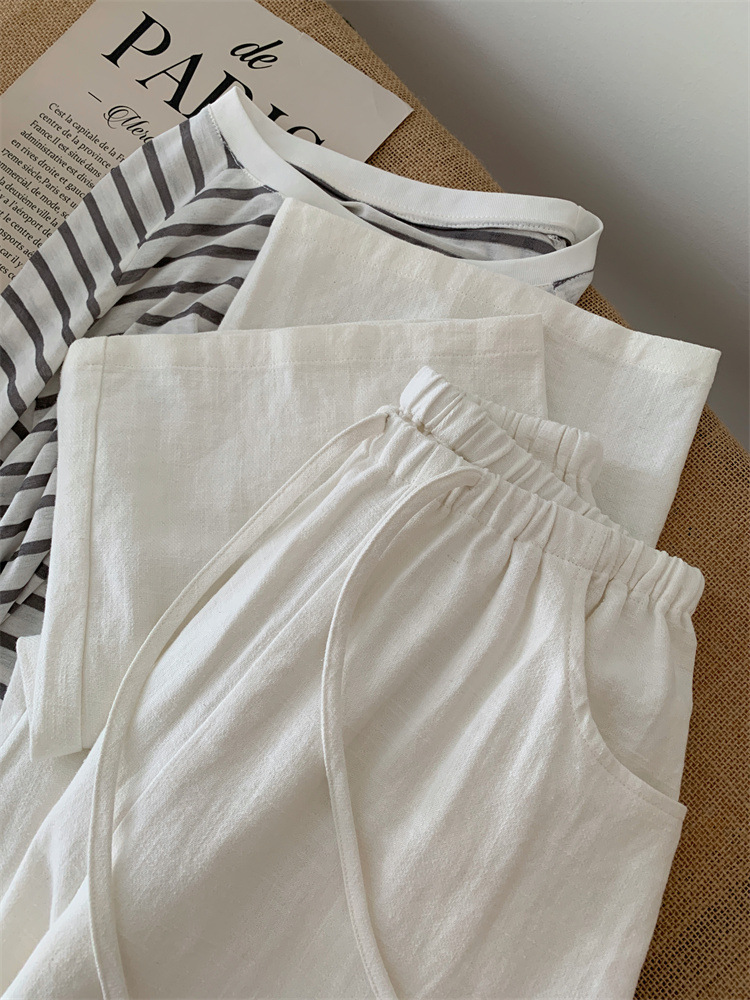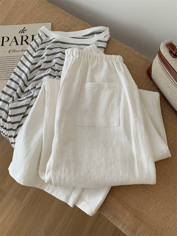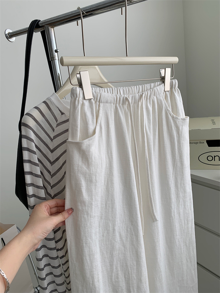 自留爆款推荐~老钱风白色亚麻阔腿裤女秋季垂感显瘦休闲拖地长裤