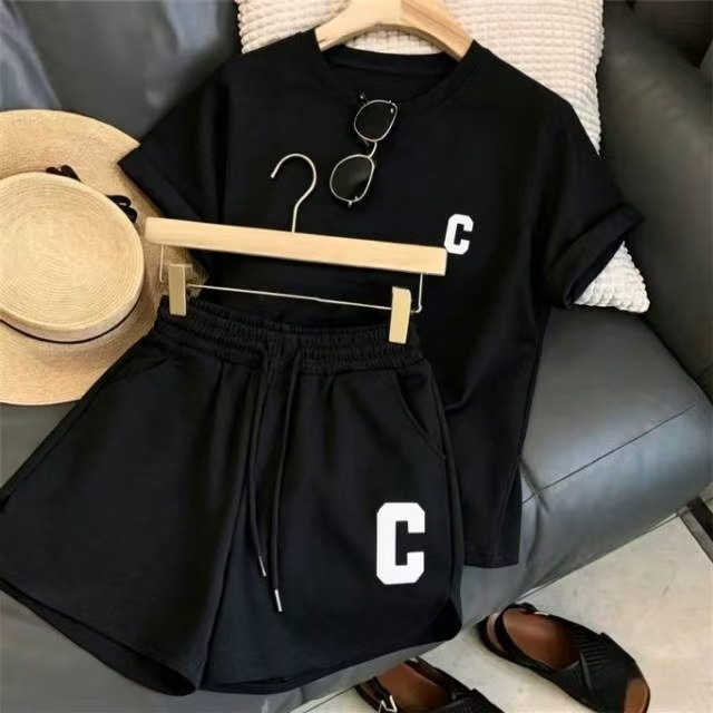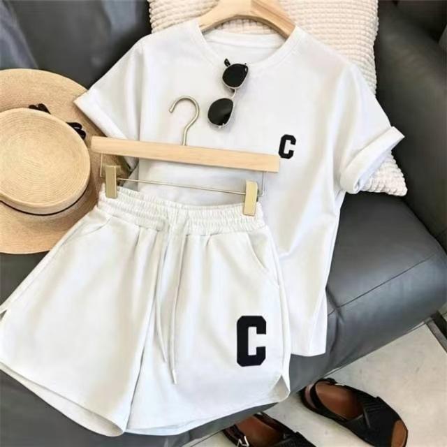 인터넷 연예인 대외 무역 도매 여성 2025 여름 신학생 느슨한 스포츠 반바지 캐주얼 투피스 세트 여성스토어 가기