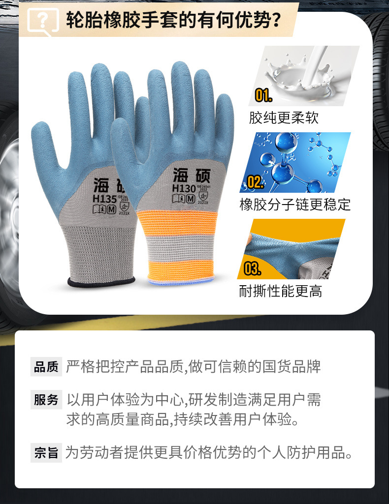 타이어 고무 노동 보호 장갑 내마모성 미끄럼 통기성 라텍스 디퍼 폼 두꺼운 장갑 작업 사이트스토어 가기