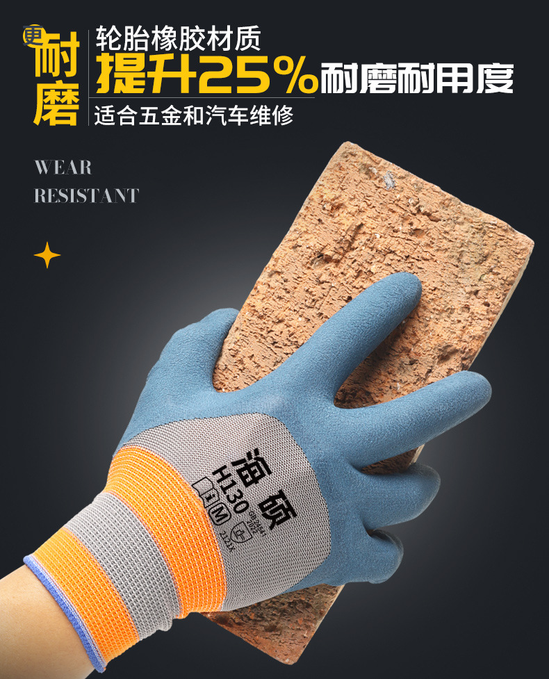 타이어 고무 노동 보호 장갑 내마모성 미끄럼 통기성 라텍스 디퍼 폼 두꺼운 장갑 작업 사이트