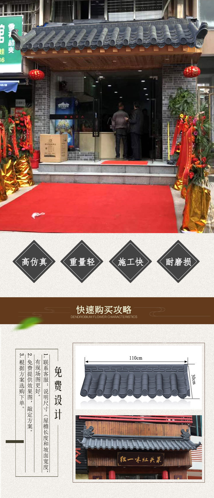 골동품 기와 지붕 타일 빌라 유리 타일 수지 타일 PVC 문 머리 처마 타일 삼각대 씰링 플레이트 3 피스 M &