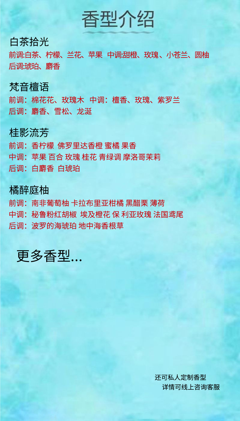 • 더 많은 향기 유형 맞춤화를 원하시면 고객 서비스에 문의하십시오.