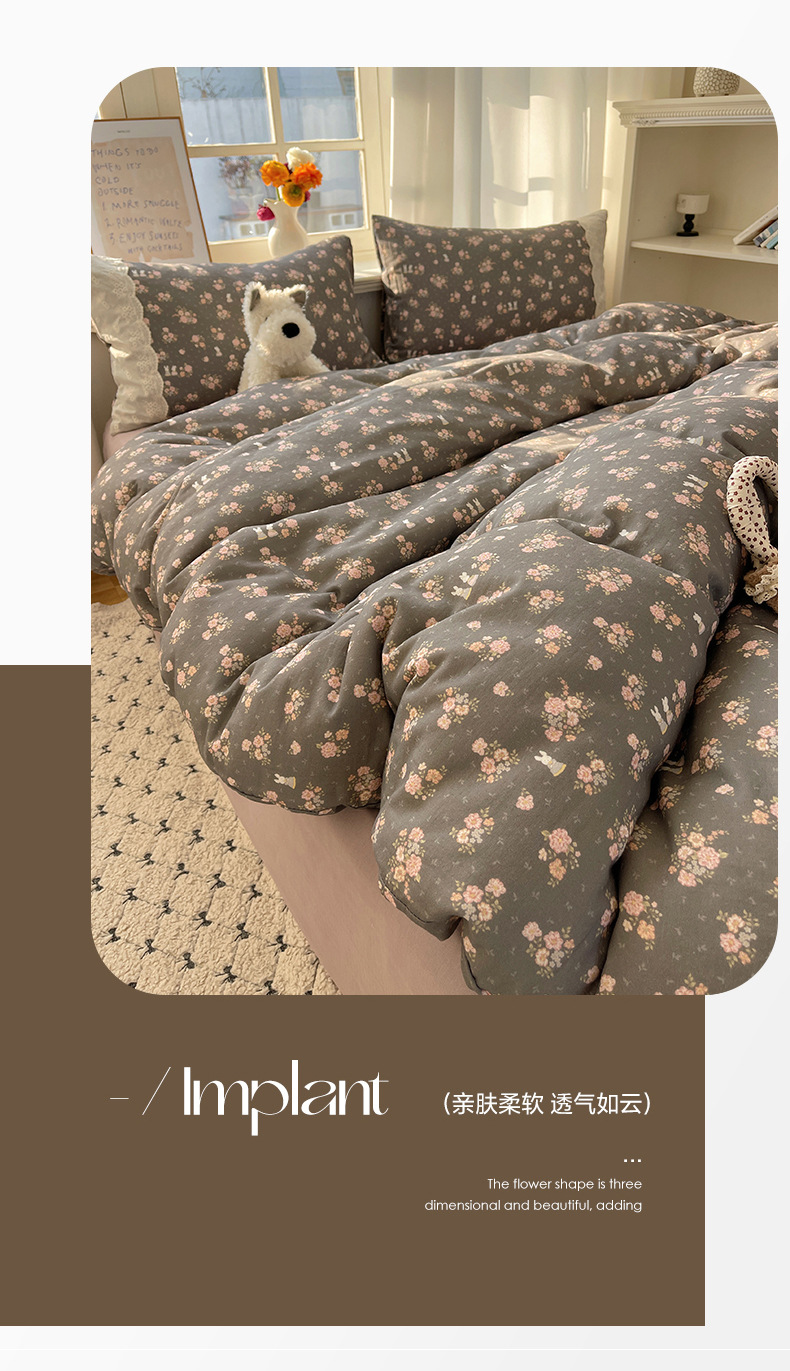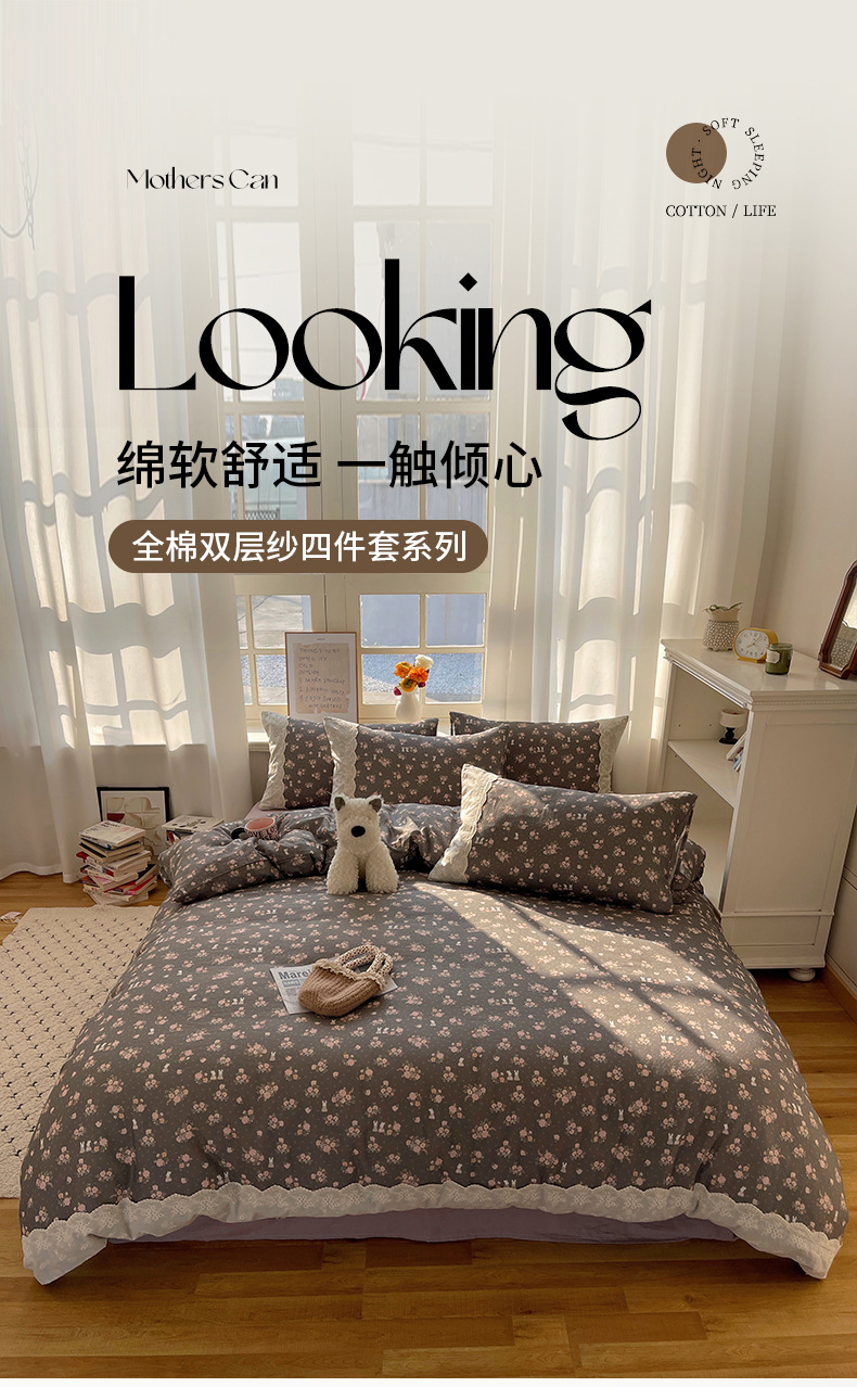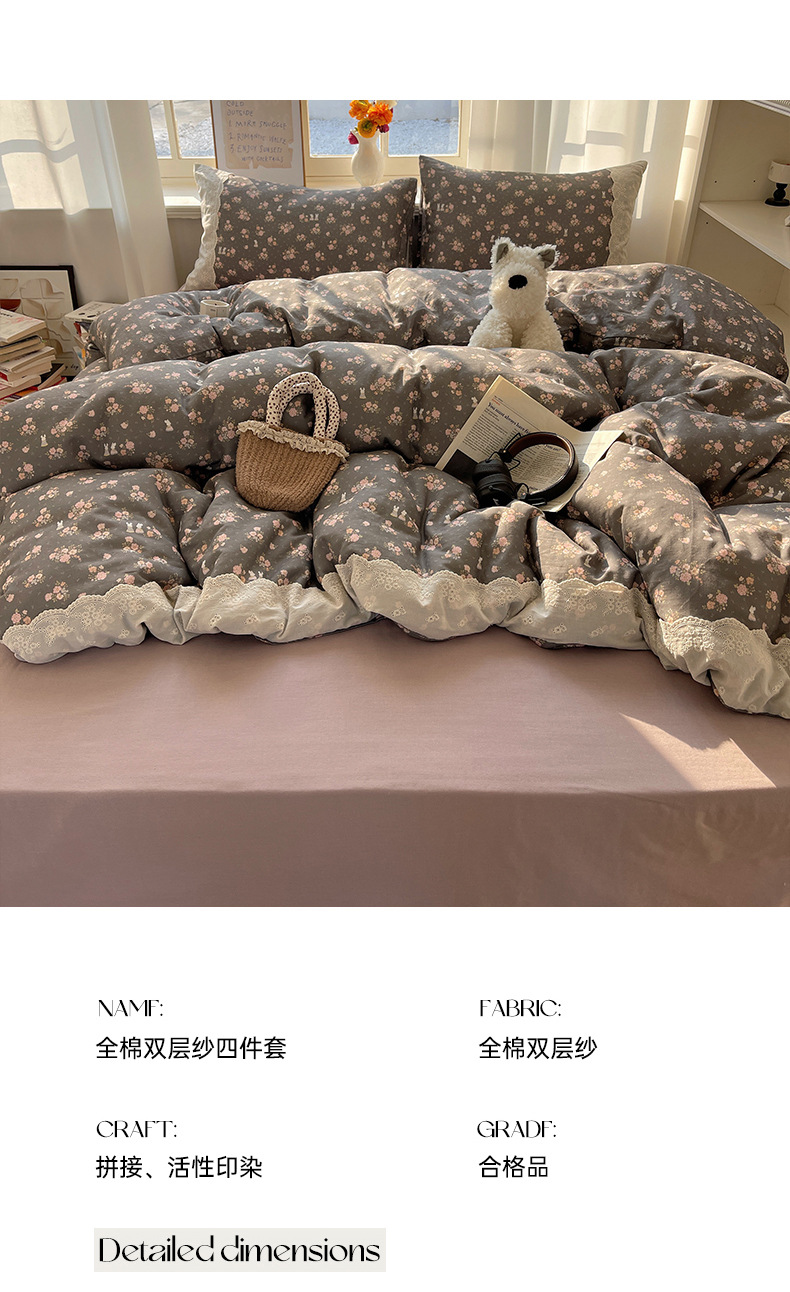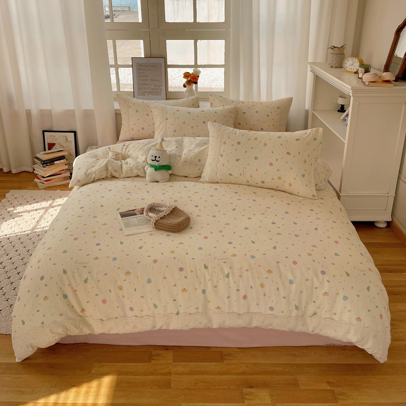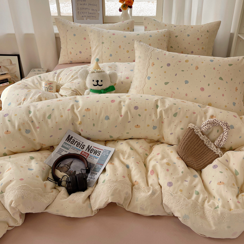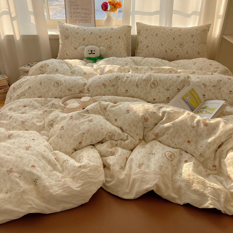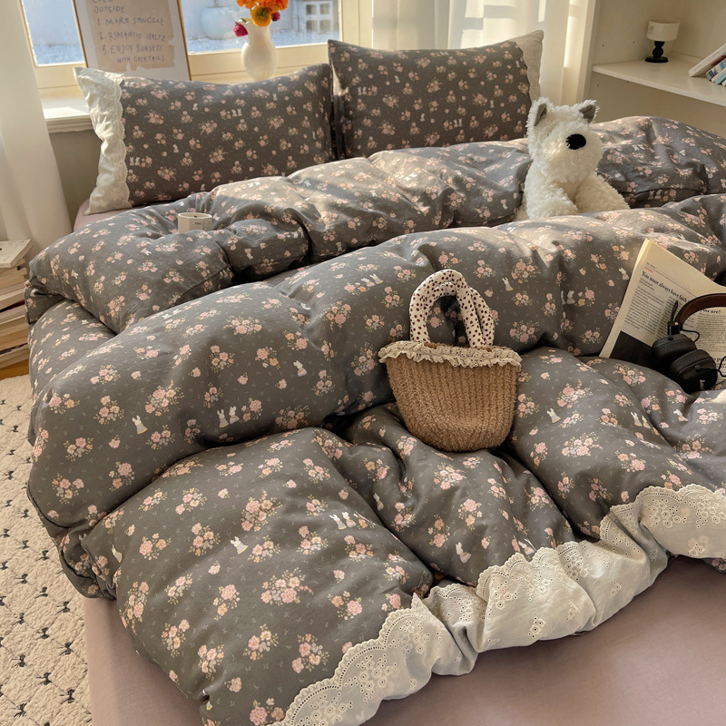프랑스 스타일 면 꽃 더블 레이어 원사 4 조각 세트 빈티지 레이스 코튼 퀼트 커버 작은 신선한 스타일 기숙사 3 조각 세트스토어 가기