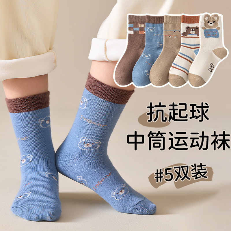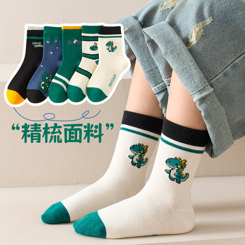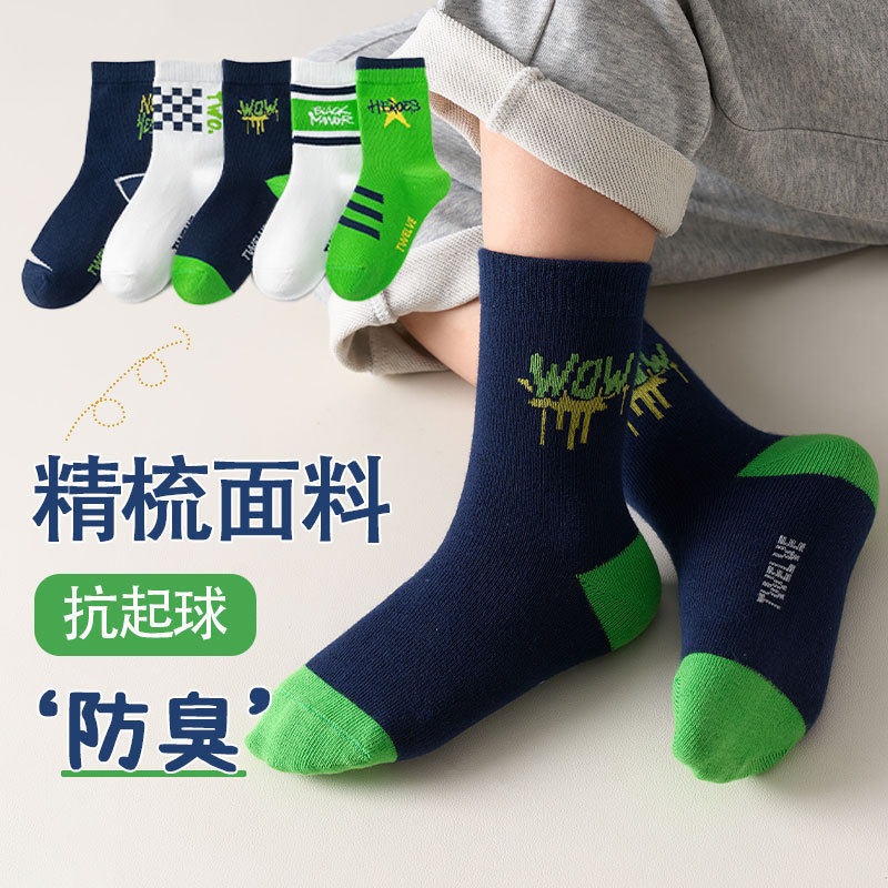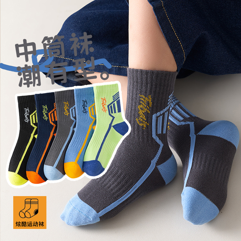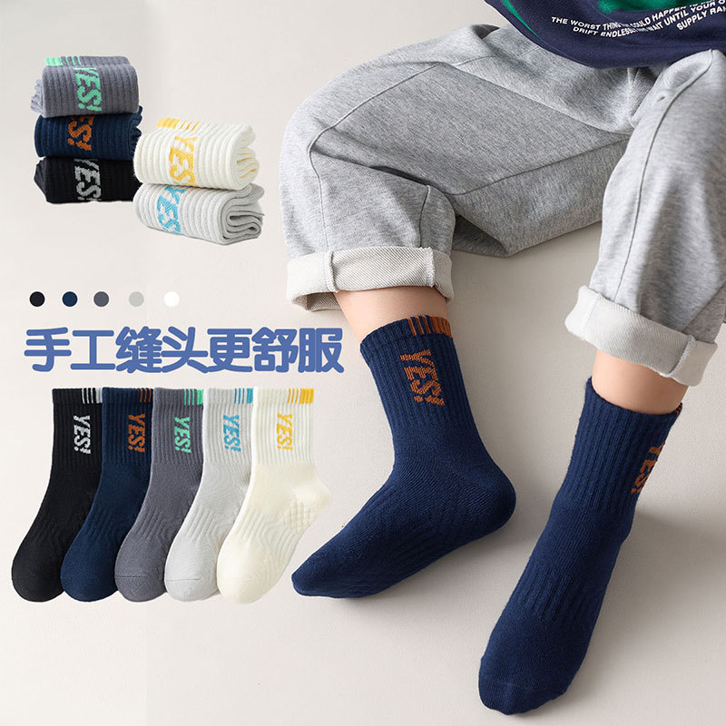 [인기 모델] 봄, 가을 땀 흡수 어린이 양말 소년 중간 길이 학생 소년 중대형 어린이 가을 겨울 스타일스토어 가기