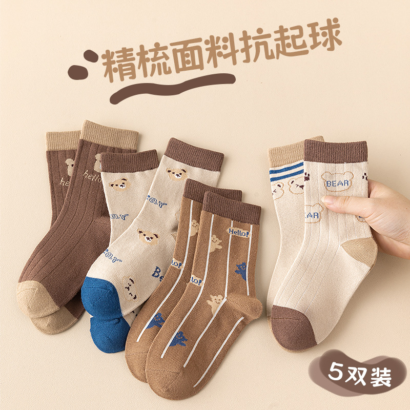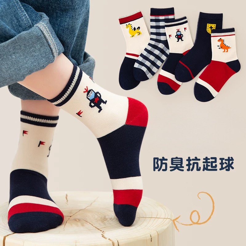 [인기 모델] 봄, 가을 땀 흡수 어린이 양말 소년 중간 길이 학생 소년 중대형 어린이 가을 겨울 스타일