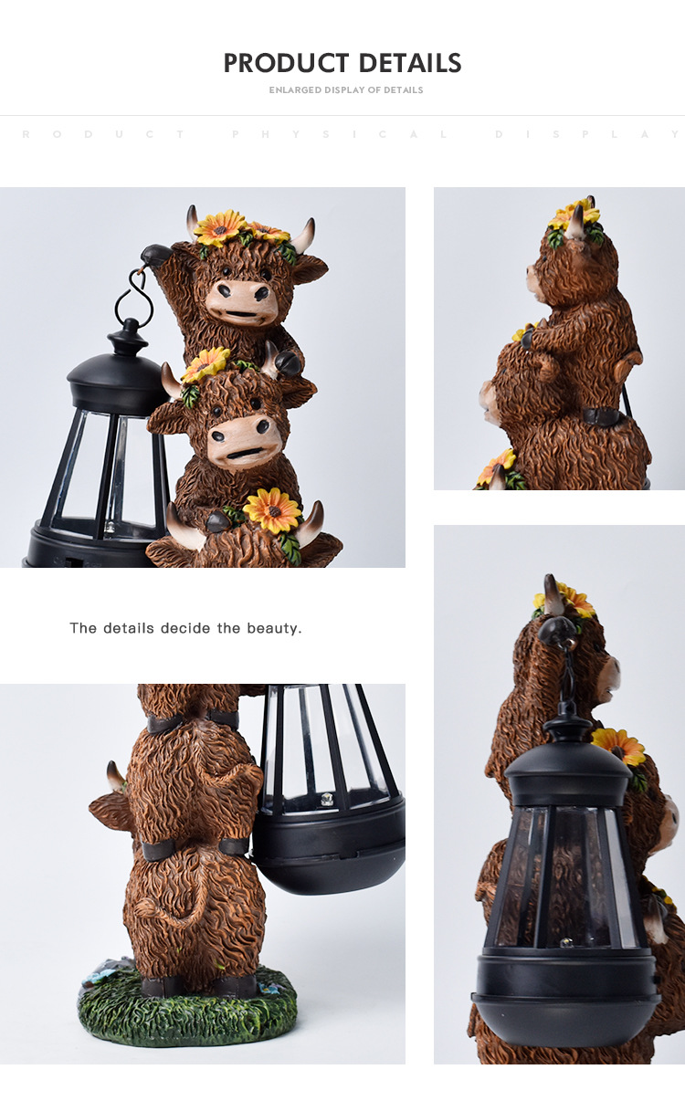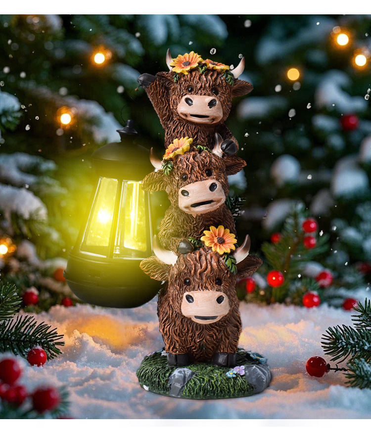 국경을 넘는 야크 환영 표지판 정원 조각품 장식품 하이랜드 소 태양광 정원 장식 야외 장식 레진 공예품스토어 가기