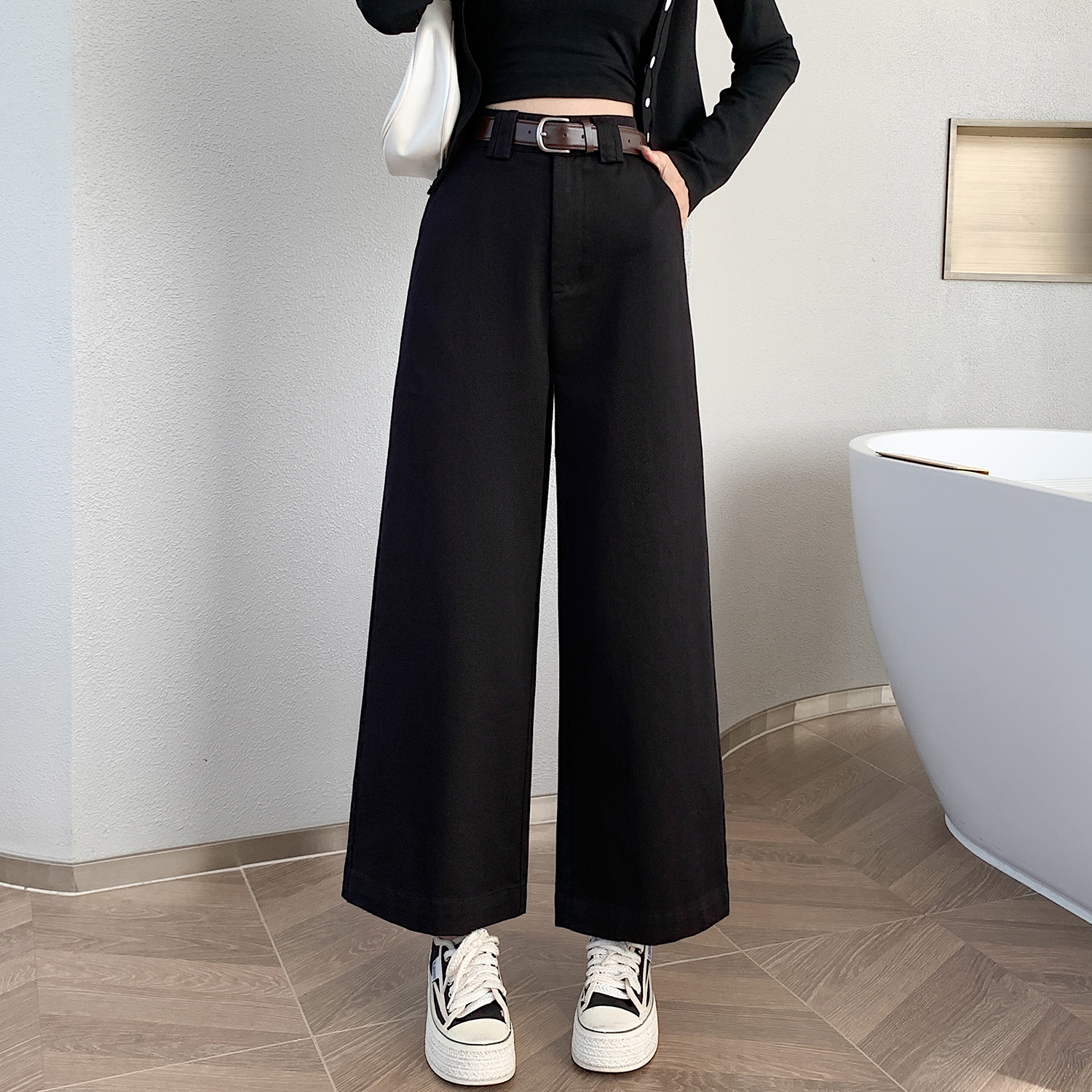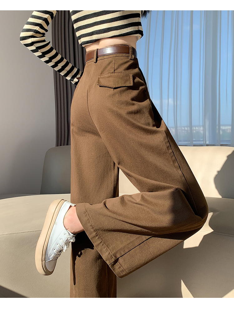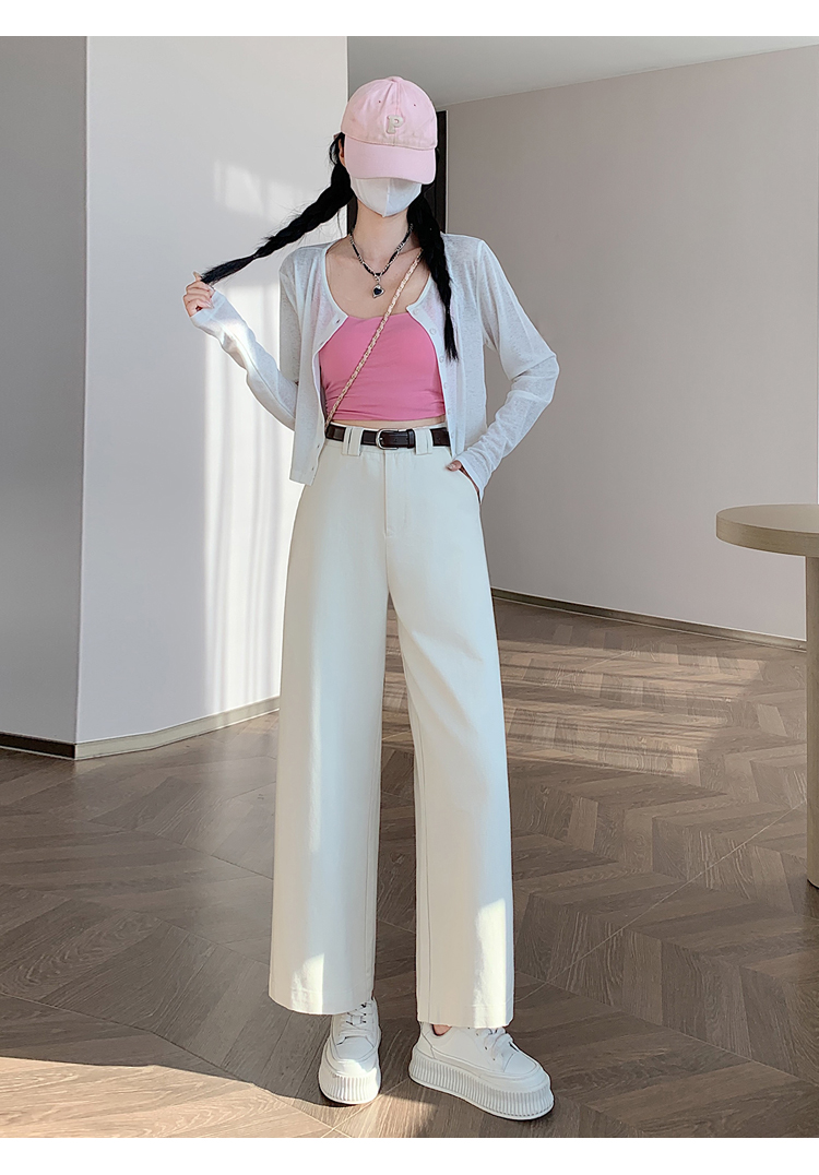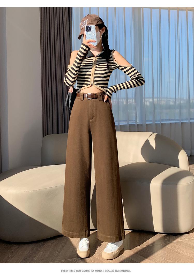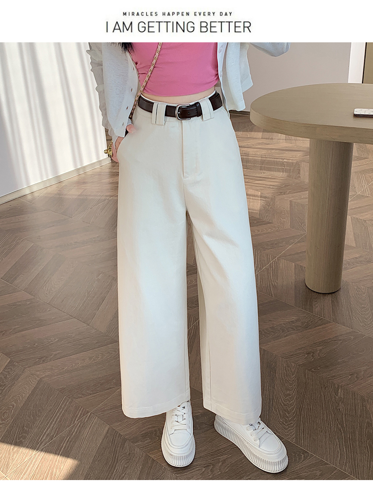 여성의 봄과 가을 2025 새로운 높은 허리 자른 직선 좁은 넓은 다리 바지스토어 가기