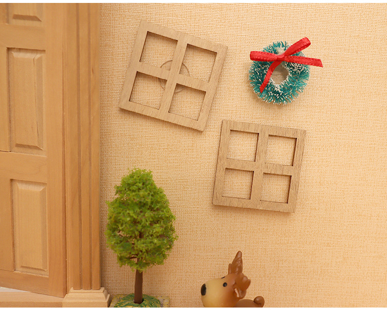 인형 집 미니어처 중공 목재 창 수제 DIY 목가적 인 집 크리스마스 안뜰 작은 액세서리 장식