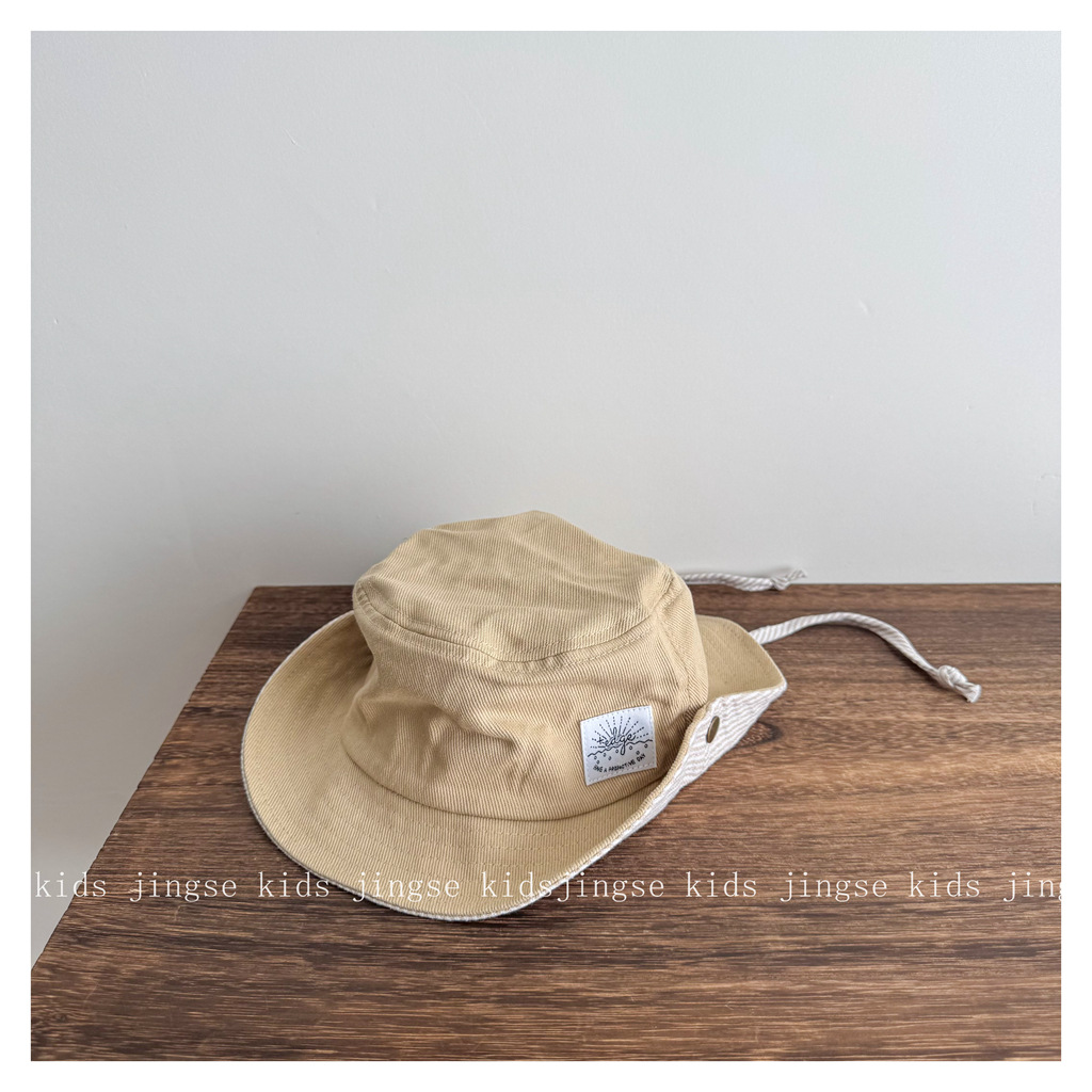 2025 봄과 여름 새로운 어린이 어부 모자 일본과 한국 신선하고 간단한 야외 분지 모자 소년과 소녀 태양 보호 모자