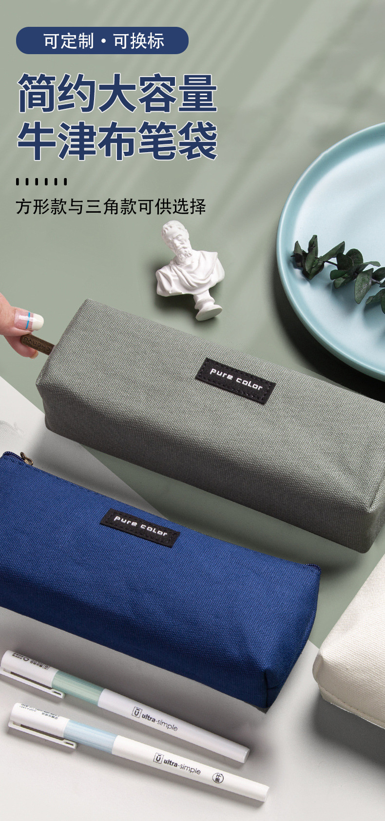 간단한 연필 가방 인쇄 휴대용 상 문구 상자 더러운 저항하는 중학교 고등학교 문구 가방 초등학생을위한 대용량 연필 가방