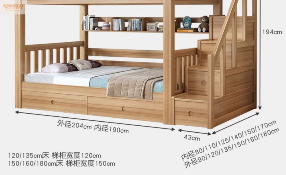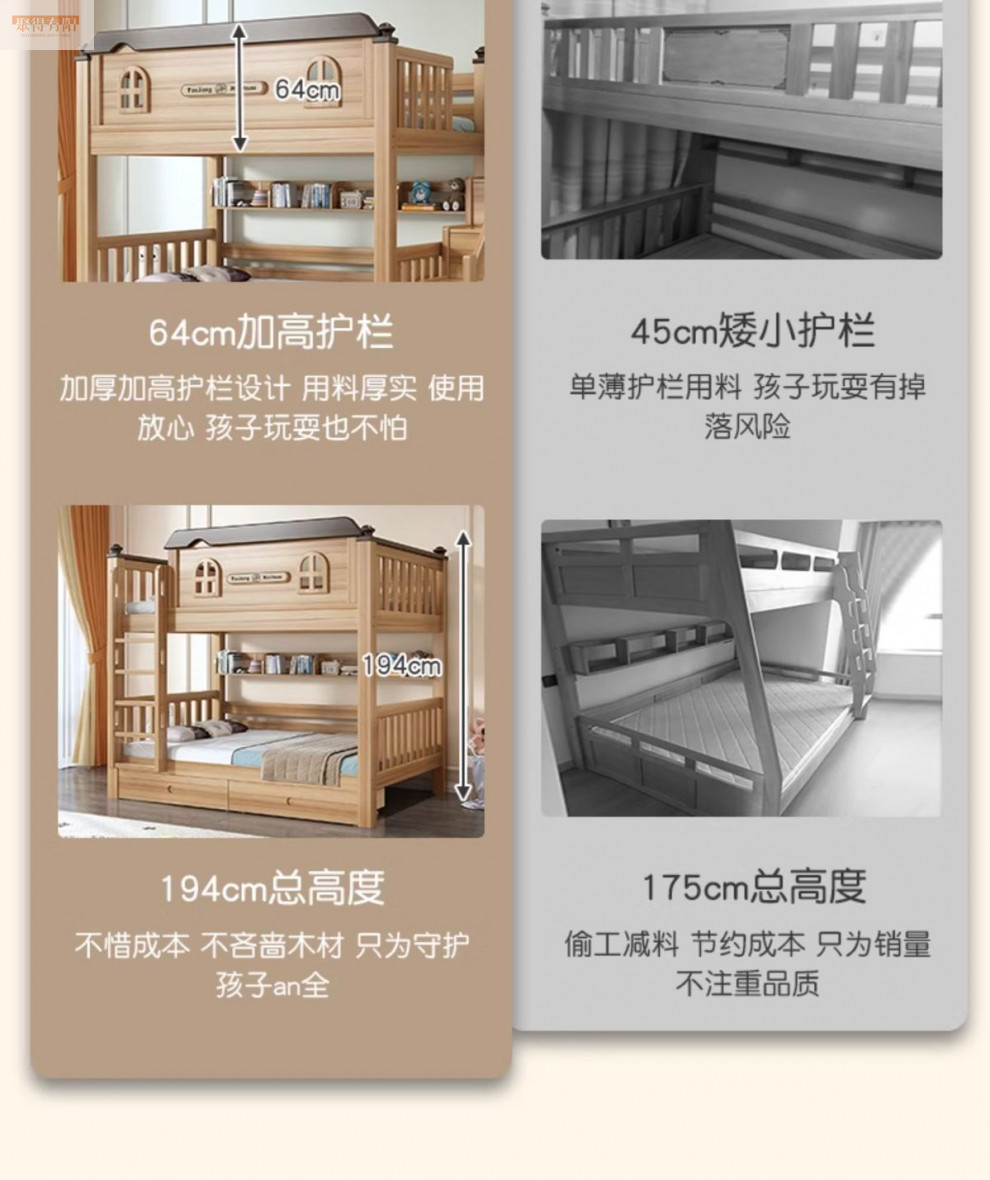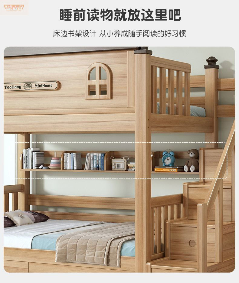 가정용 이층 침대, 이층 침대, 성인용 원목 소형 아파트 2층