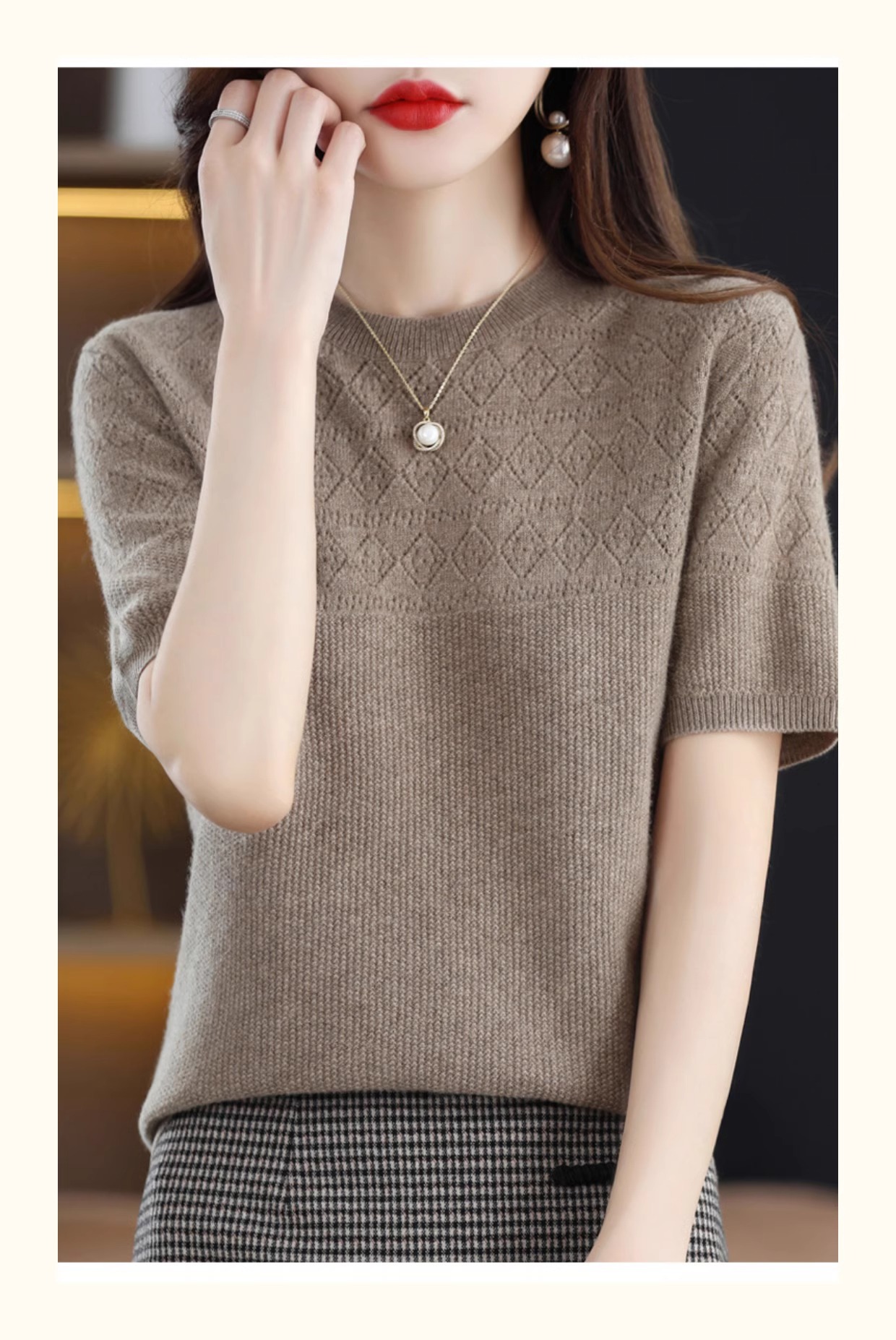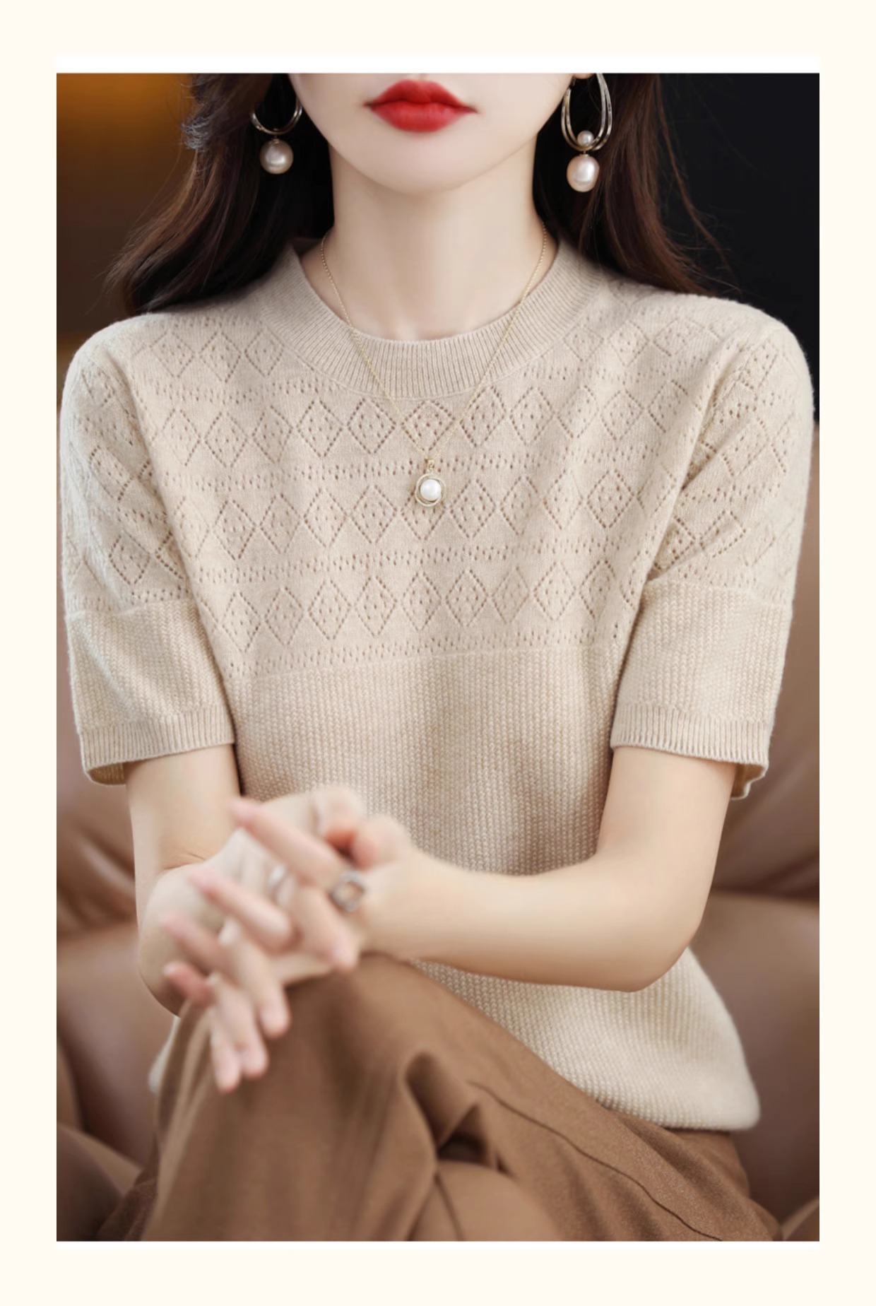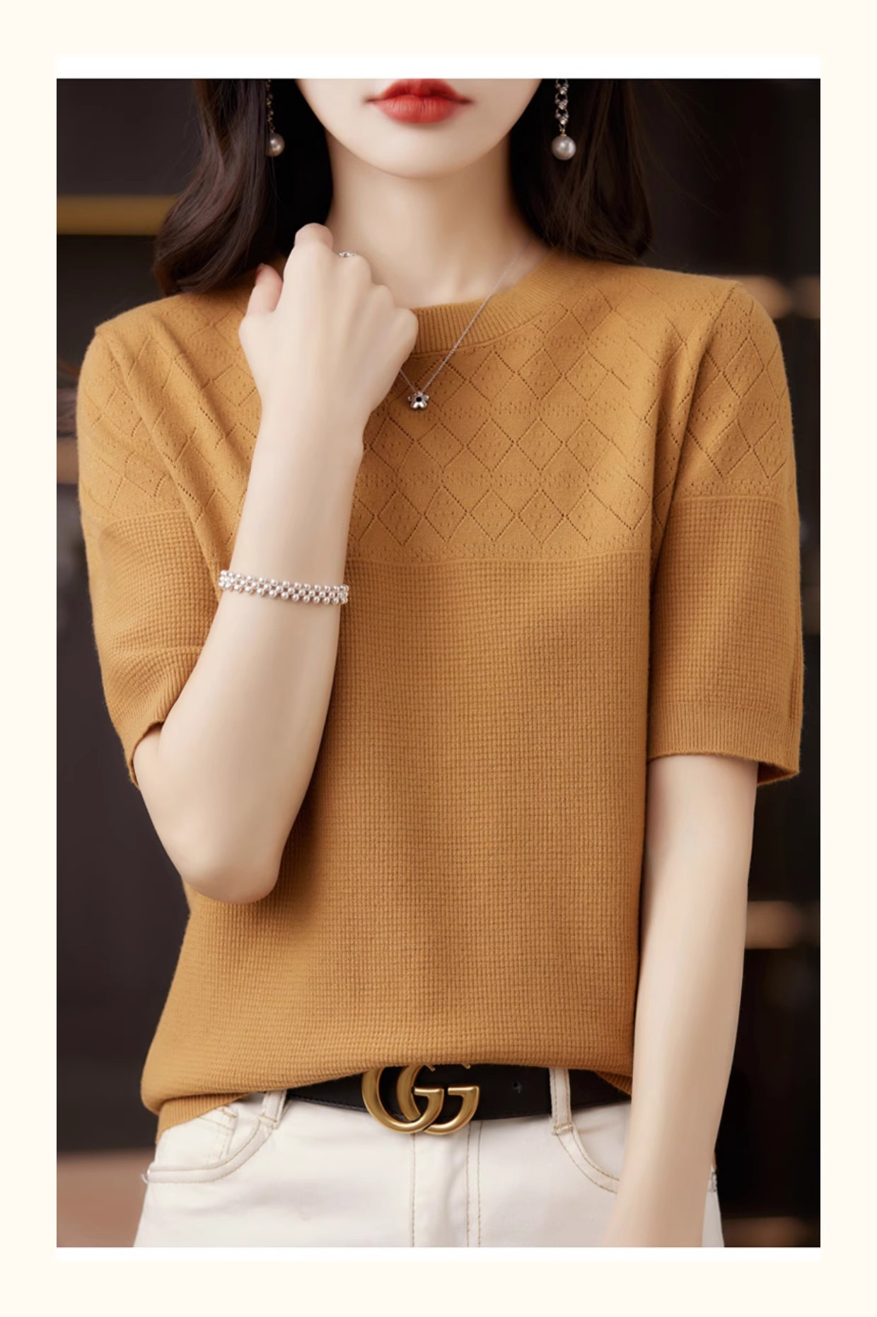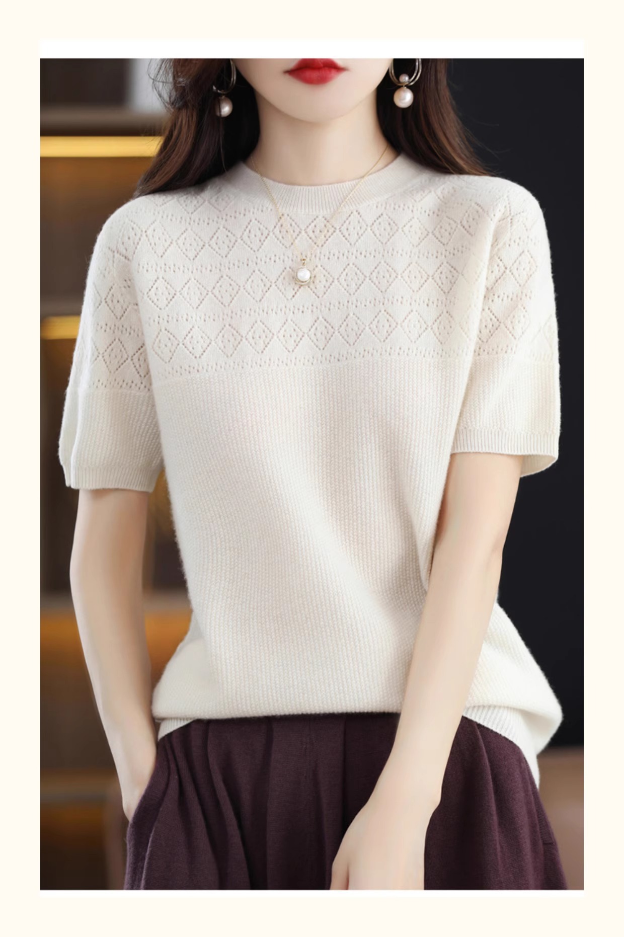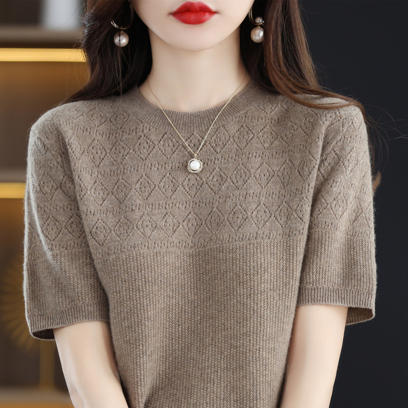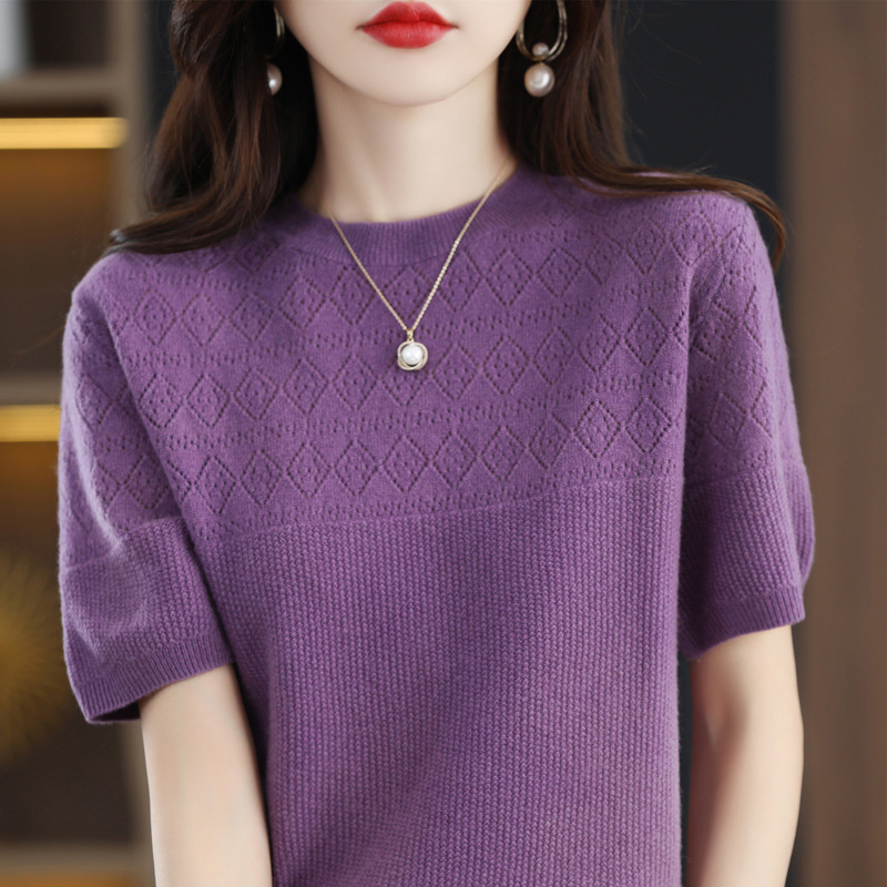 니트 반팔 티셔츠 여성 여름 2025 새로운 도착 예쁜 셔츠 얇은 탑 에이지 감소 티셔츠 내베이스 셔츠