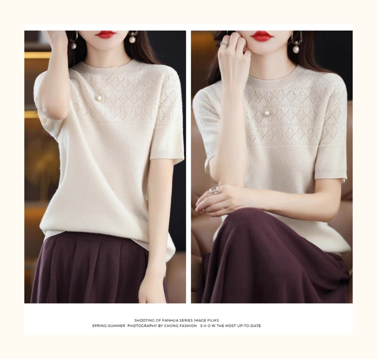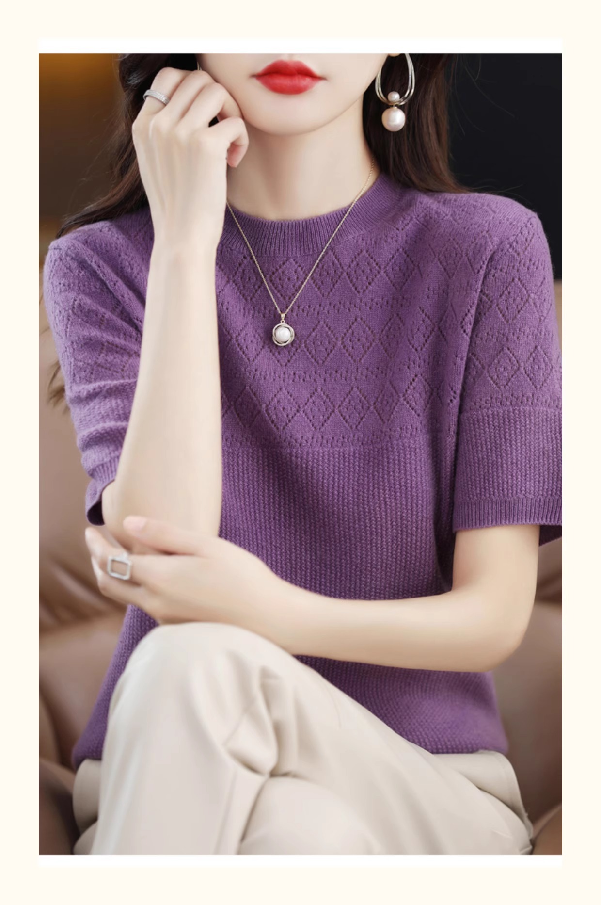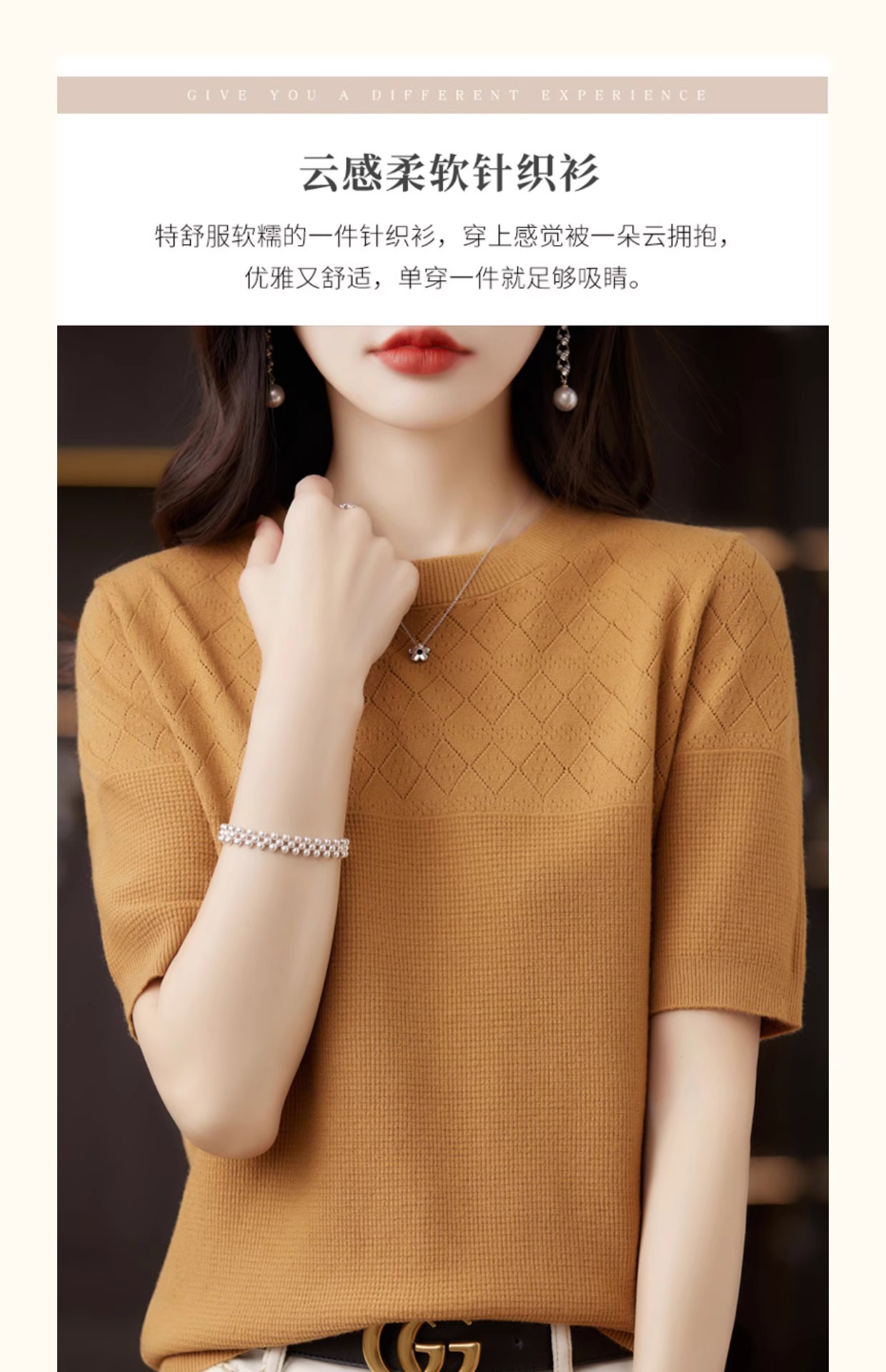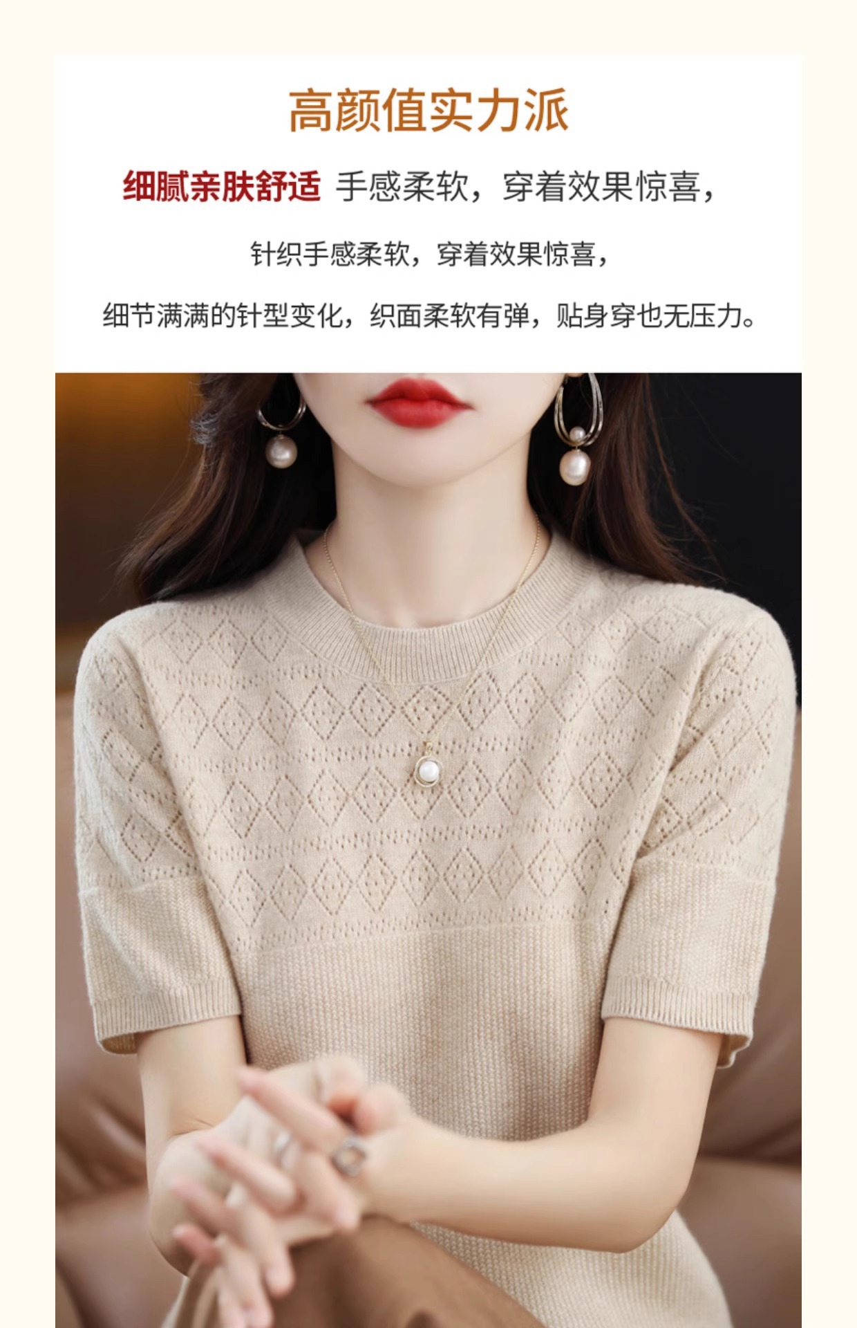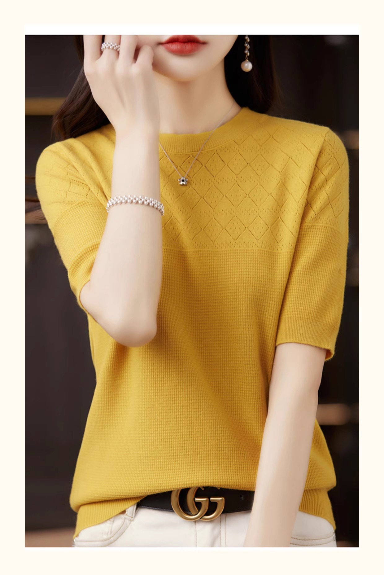 니트 반팔 티셔츠 여성 여름 2025 새로운 도착 예쁜 셔츠 얇은 탑 에이지 감소 티셔츠 내베이스 셔츠