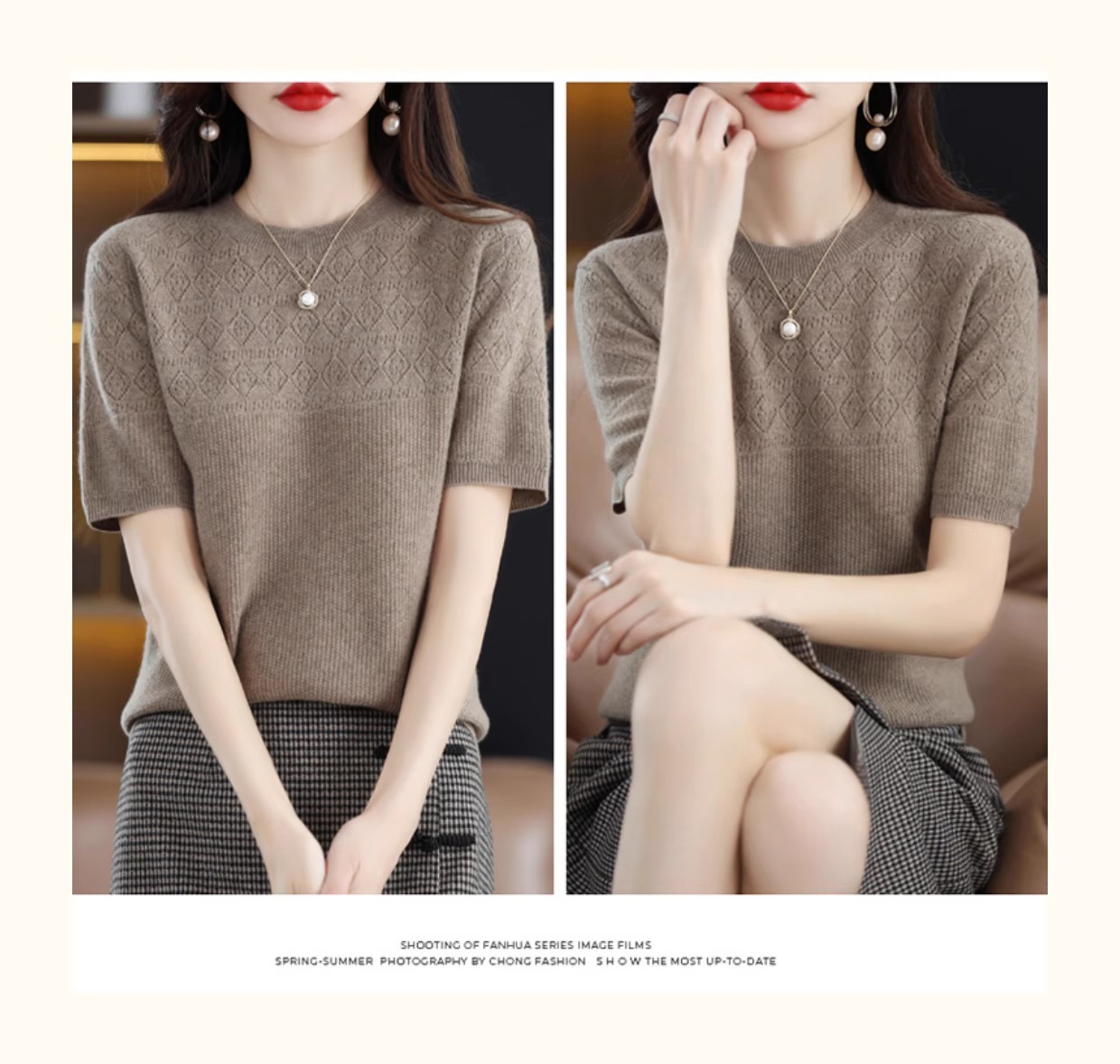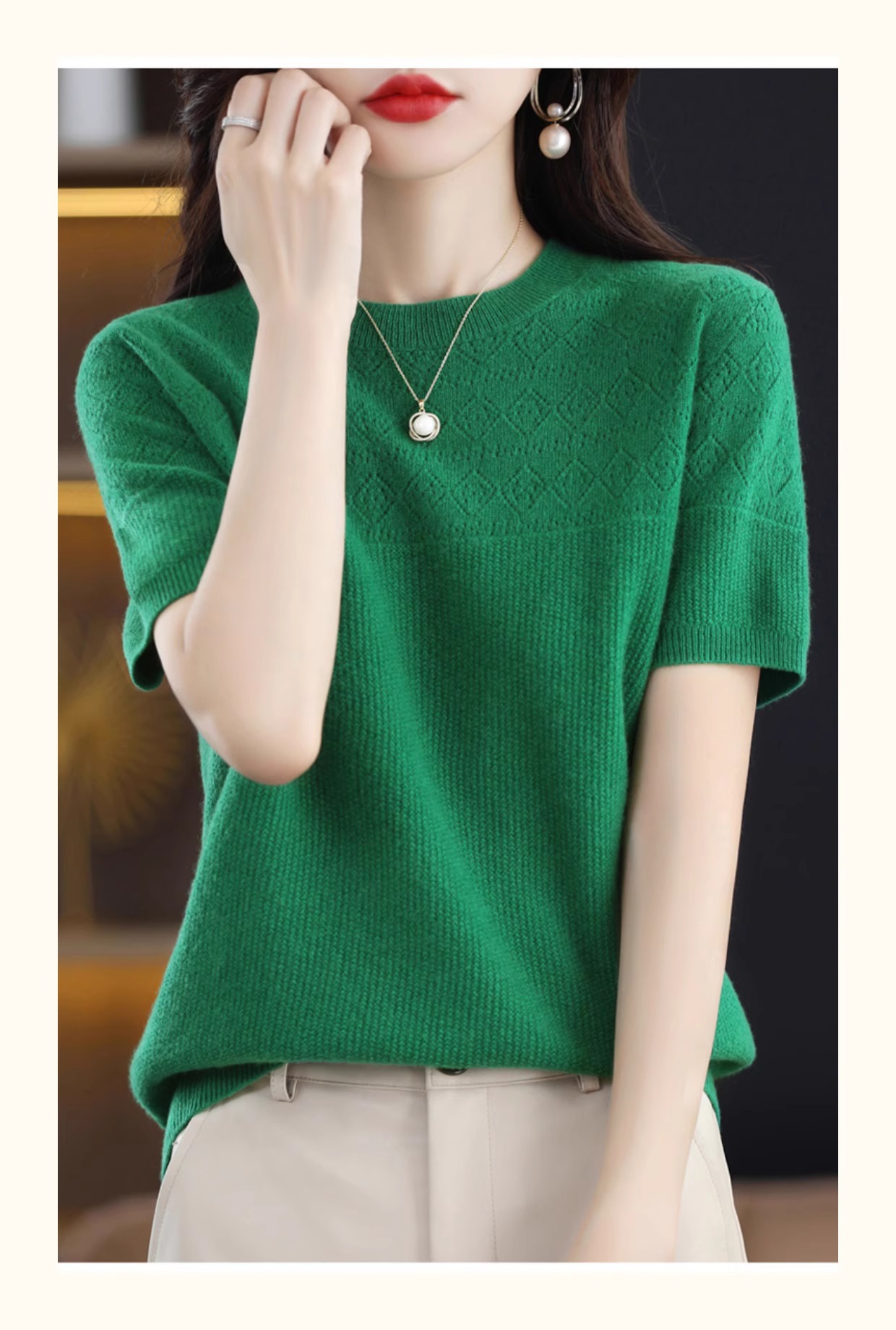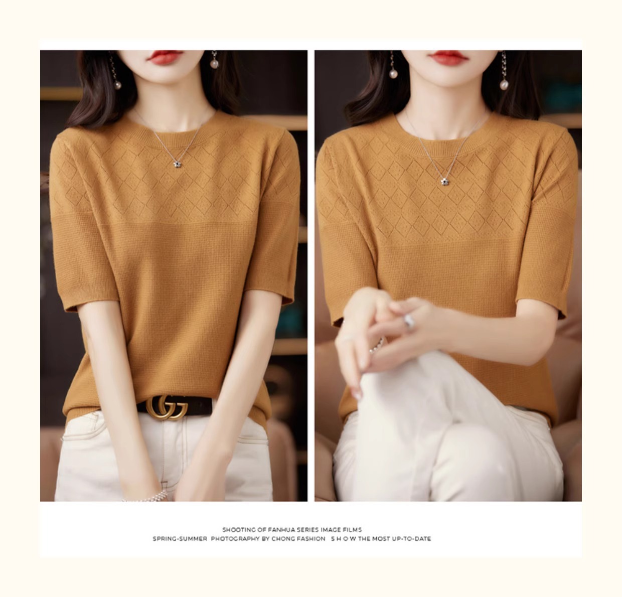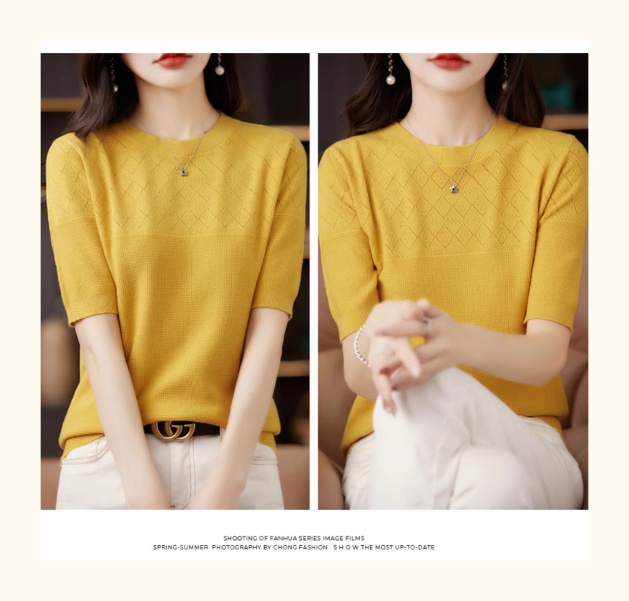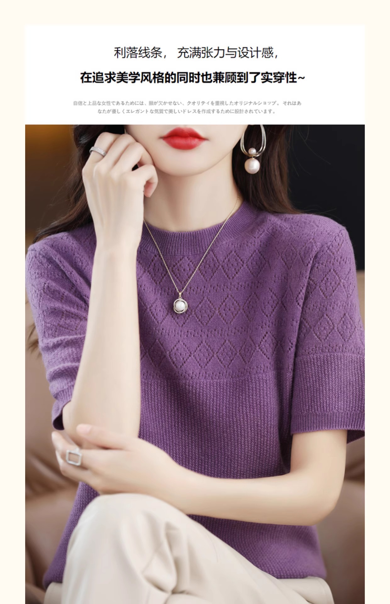 니트 반팔 티셔츠 여성 여름 2025 새로운 도착 예쁜 셔츠 얇은 탑 에이지 감소 티셔츠 내베이스 셔츠