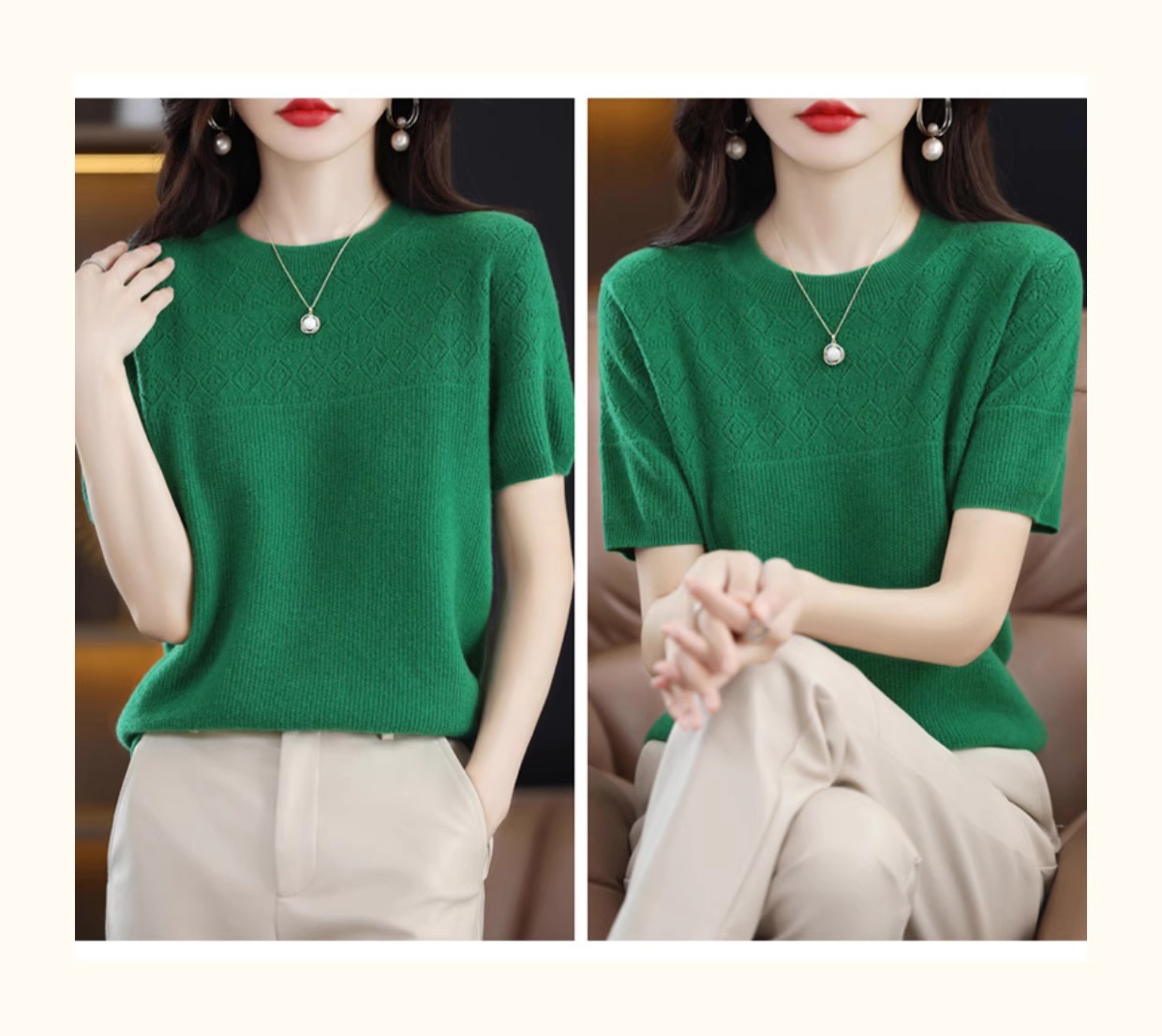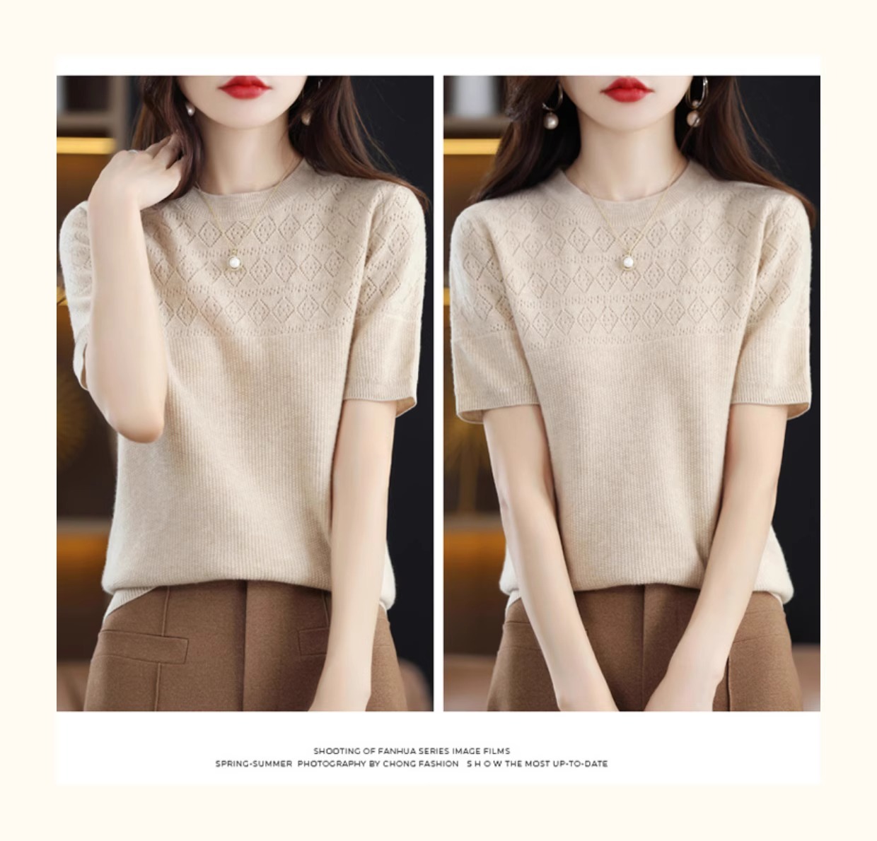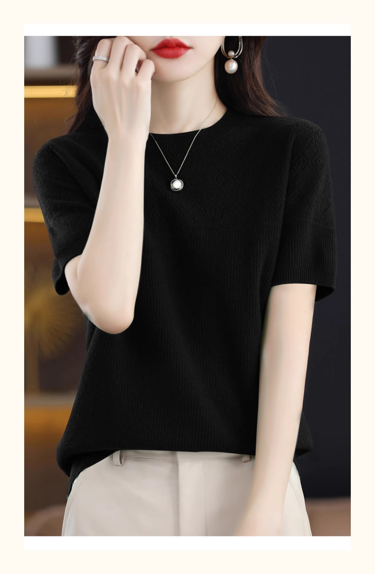 니트 반팔 티셔츠 여성 여름 2025 새로운 도착 예쁜 셔츠 얇은 탑 에이지 감소 티셔츠 내베이스 셔츠스토어 가기