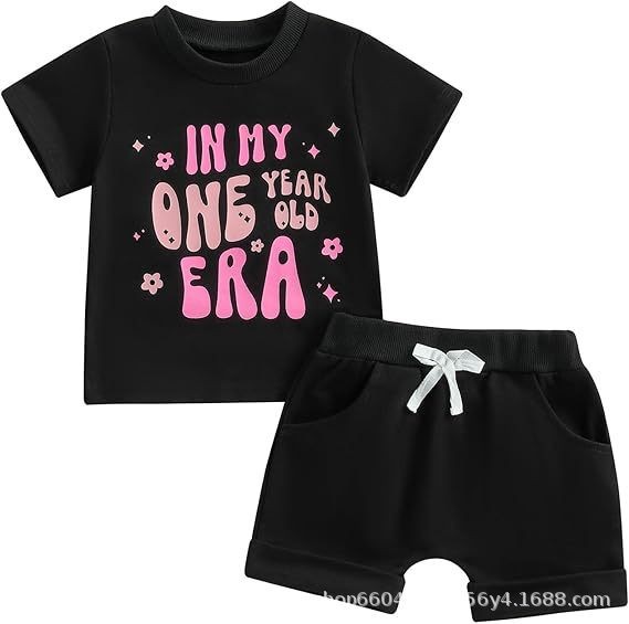 내 1 년 된 시대의 어린이 여름 새 짧은 소매 반바지 두 조각 세트스토어 가기