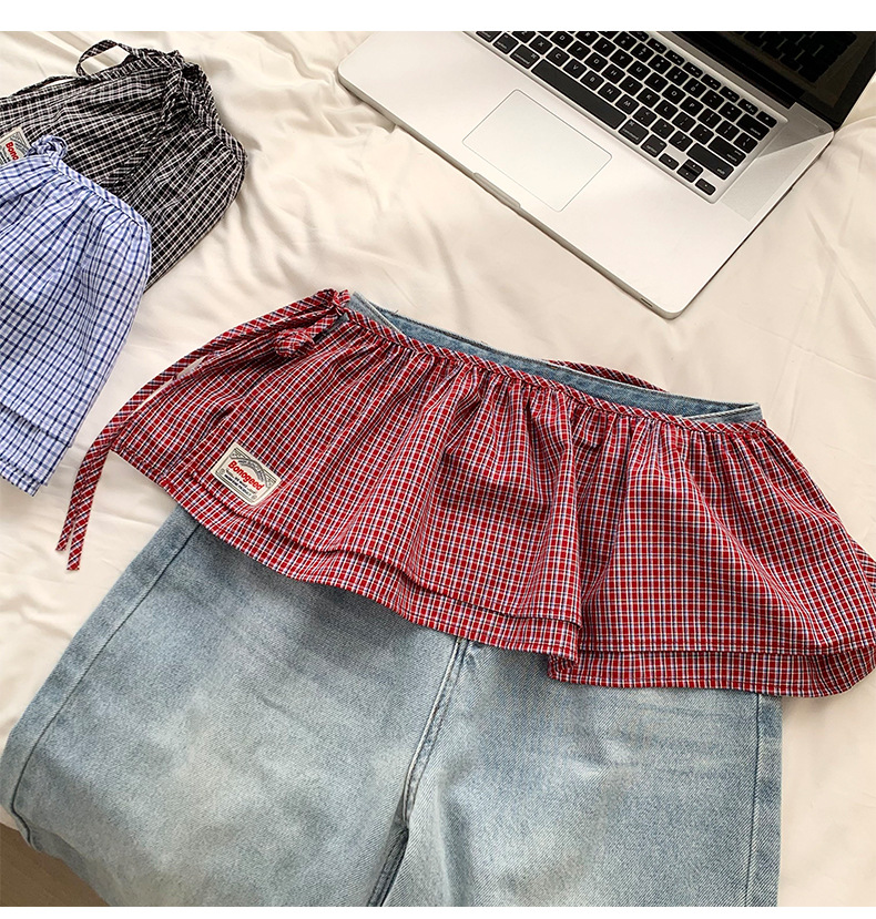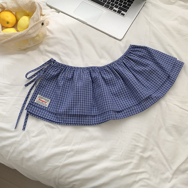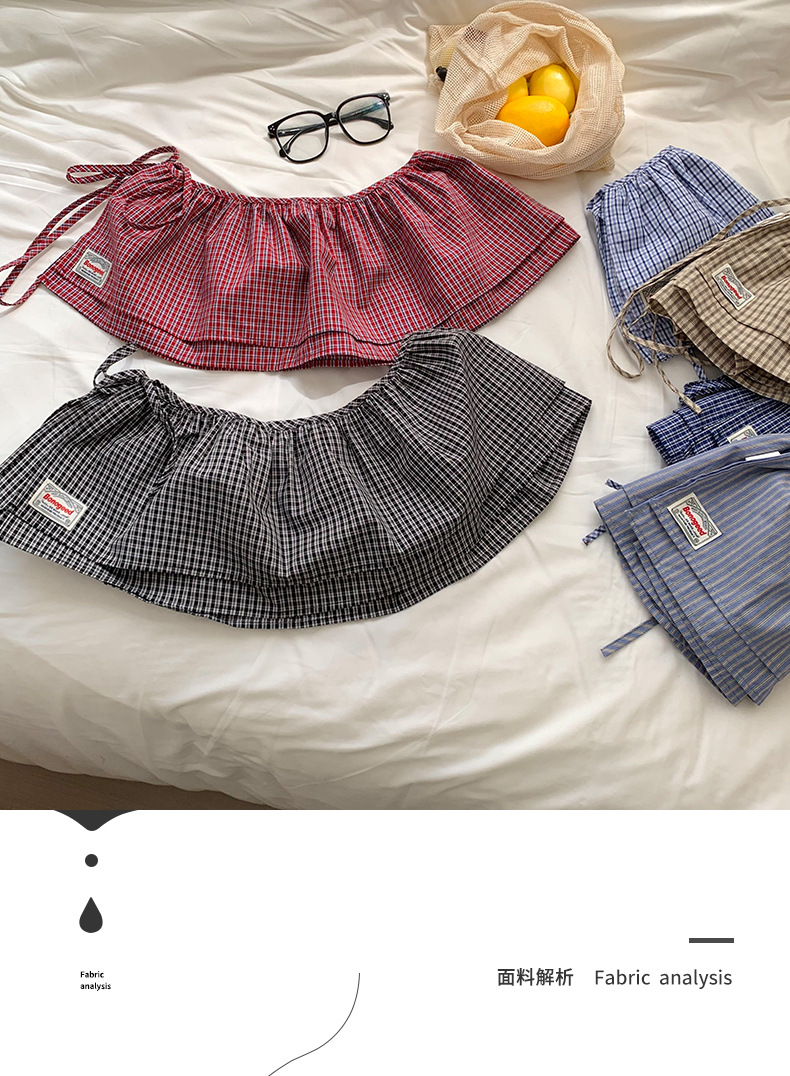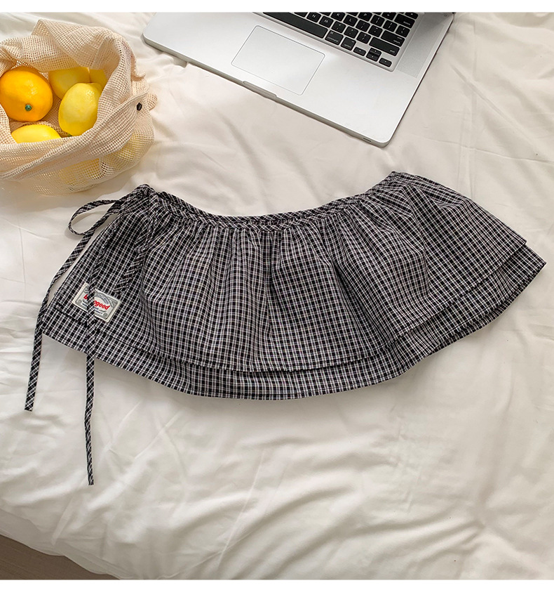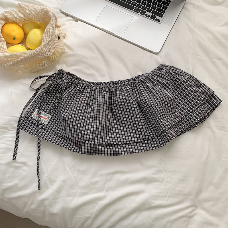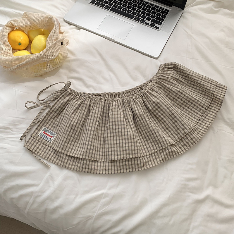 격자 무늬 예술 커튼 한국 동대문 스타일 빈티지 스트랩 격자 장식 더블 레이어 아트 커튼 스커트 여성의 트렌디 한 짧은 치마