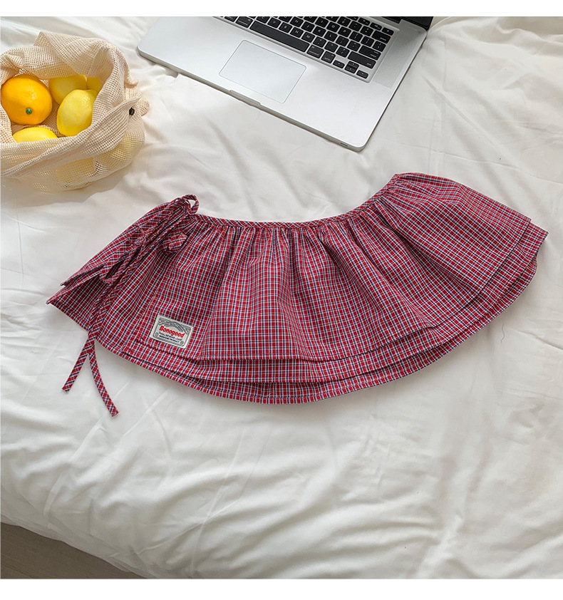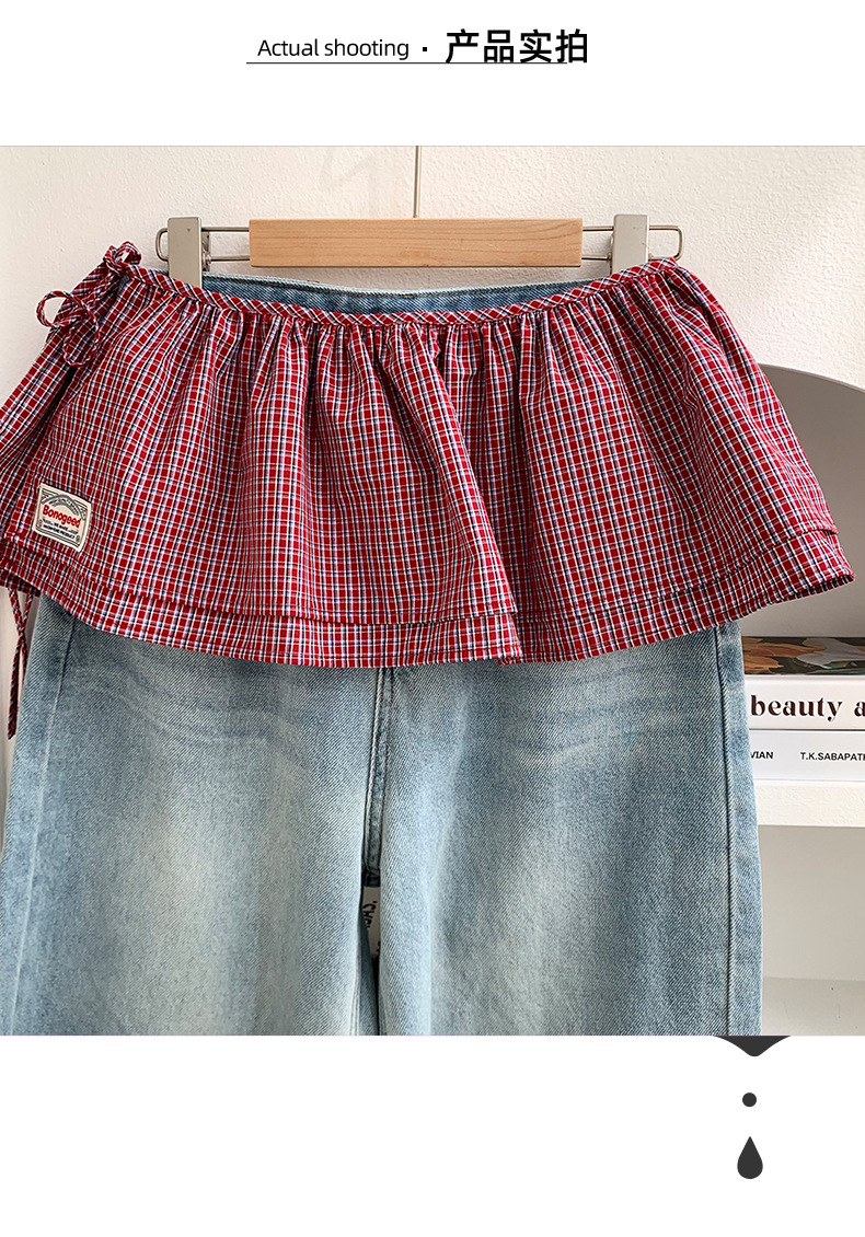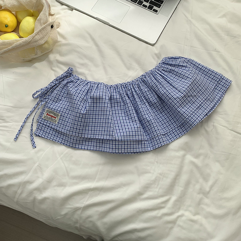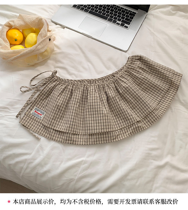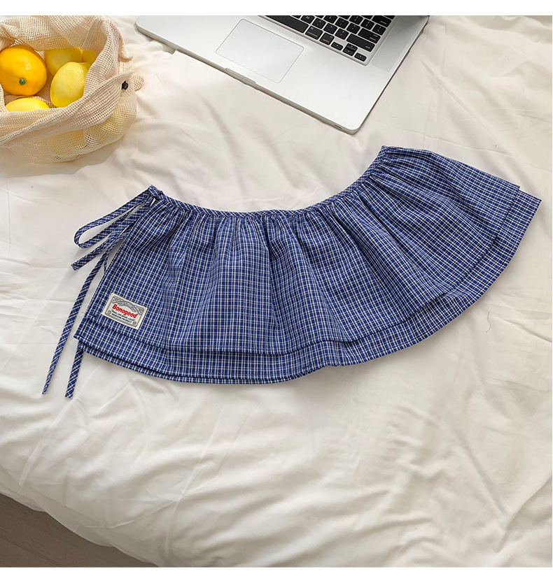 격자 무늬 예술 커튼 한국 동대문 스타일 빈티지 스트랩 격자 장식 더블 레이어 아트 커튼 스커트 여성의 트렌디 한 짧은 치마