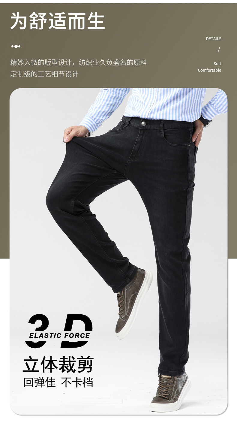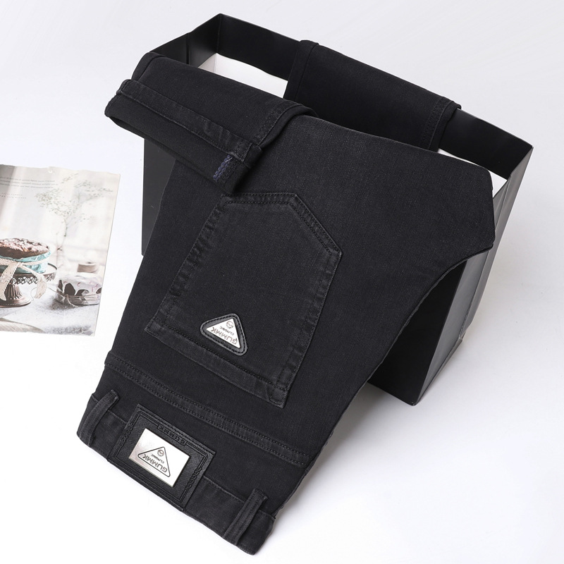 무료 배송 2025 새로운 스타일 클래식 퓨어 블랙 남성 데님 롱 팬츠스토어 가기