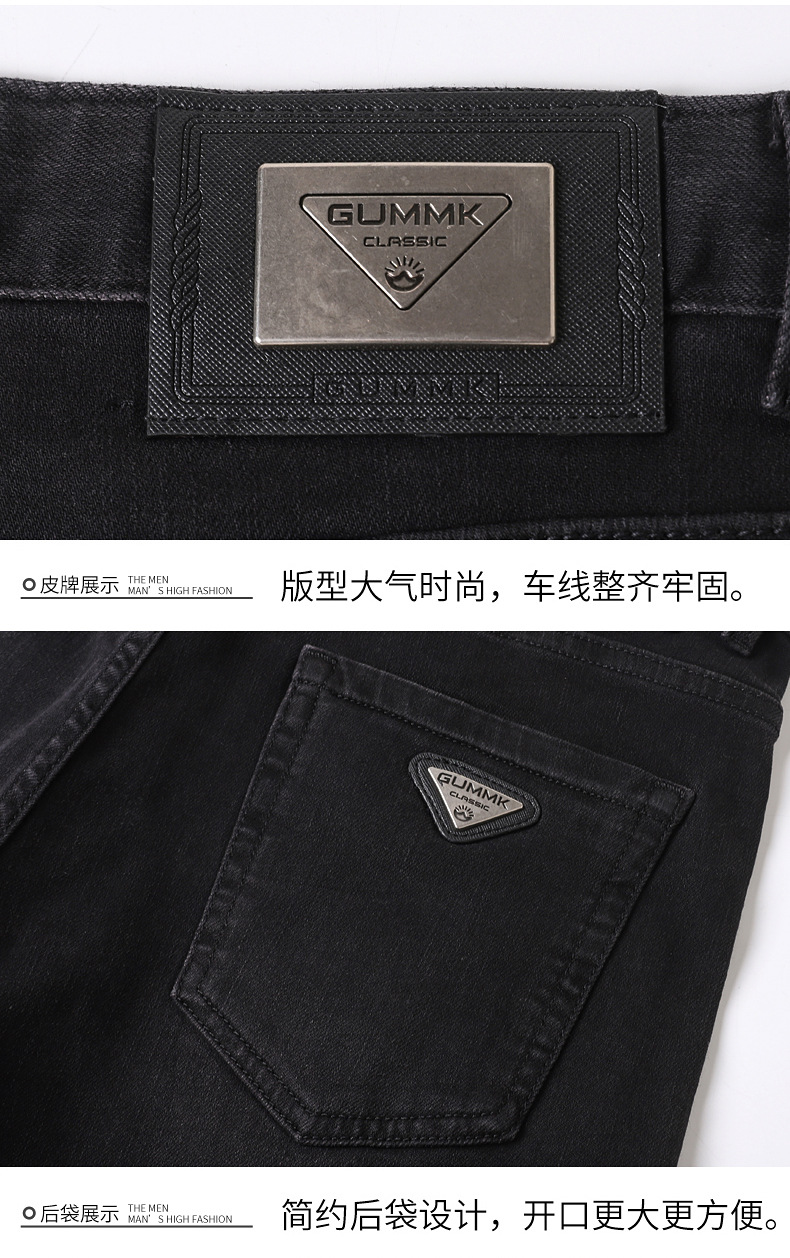무료 배송 2025 새로운 스타일 클래식 퓨어 블랙 남성 데님 롱 팬츠