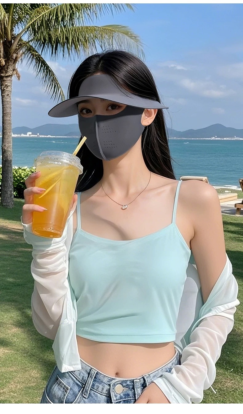 얼굴 지니 여자의 태양 모자 얼음 실크 전체 얼굴 선 스크린 UV 마스크 여름 모자 통합 큰 브림스토어 가기