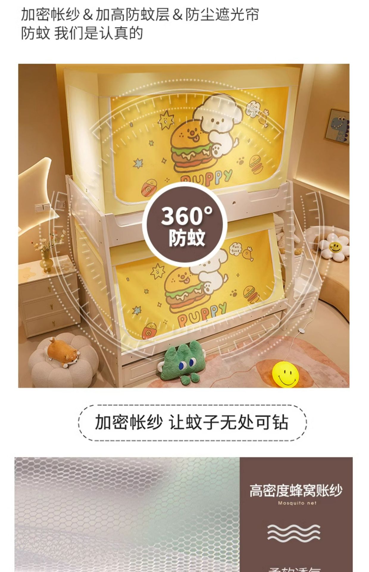 이층침대 모기장 침실용 가정용 2025년형 신제품 유아 어린이 낙상방지 침대커튼 일체형 거즈망
